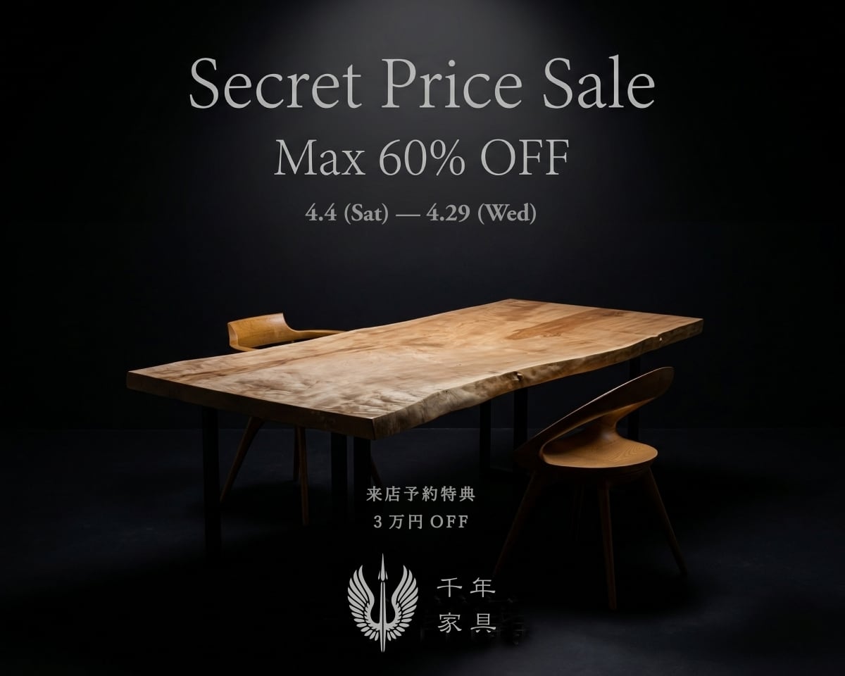 心材と辺材のコントラストが特徴的で、カントリー調のお部屋に相性抜群です。カラーがツートンなのでチェアの色味も暗いものから明るいものまで幅広くマッチします。