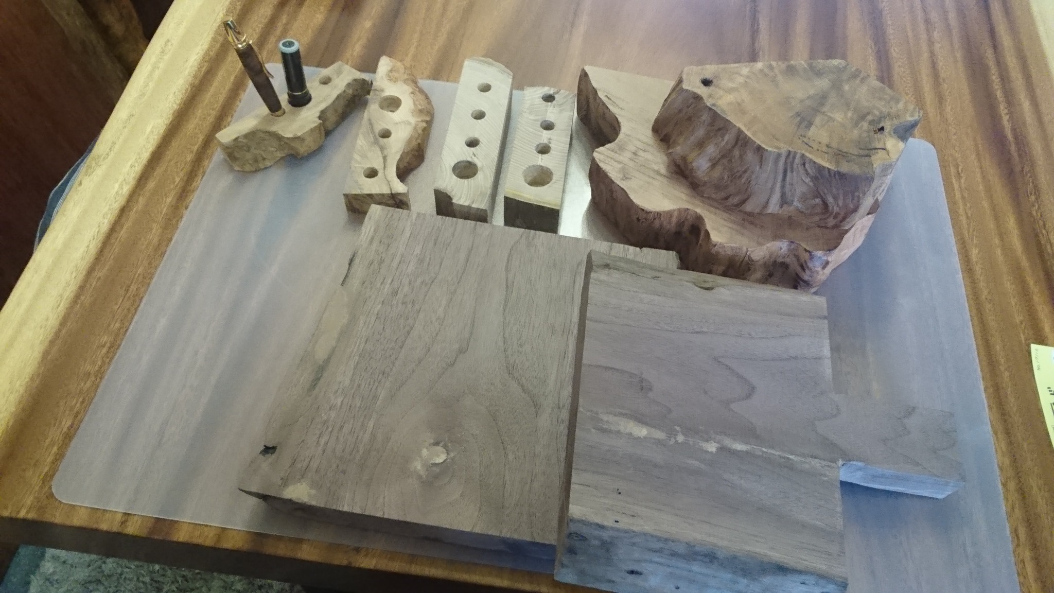 木の一枚板からペン立て、まな板、花台を製作して頂きます。