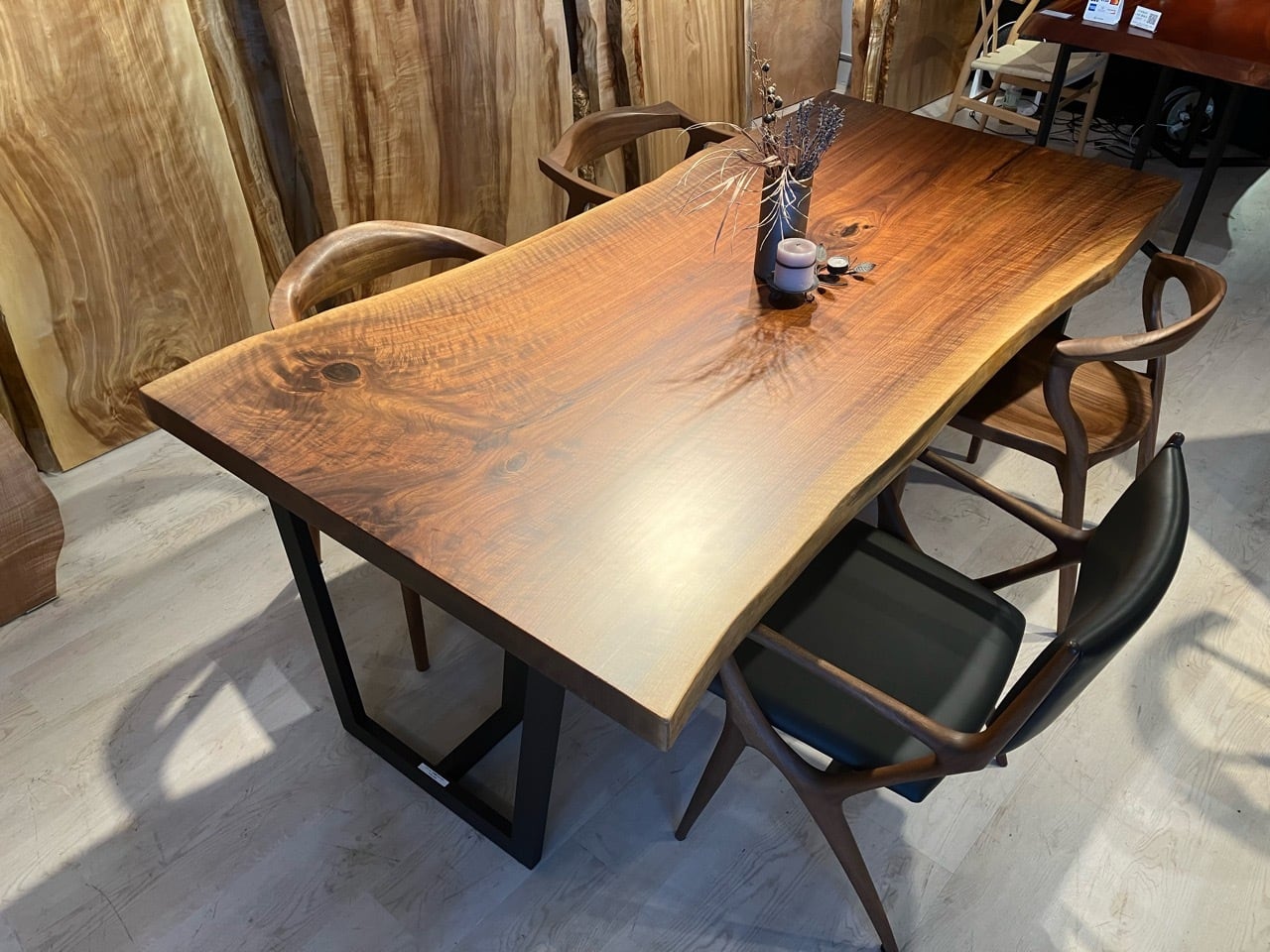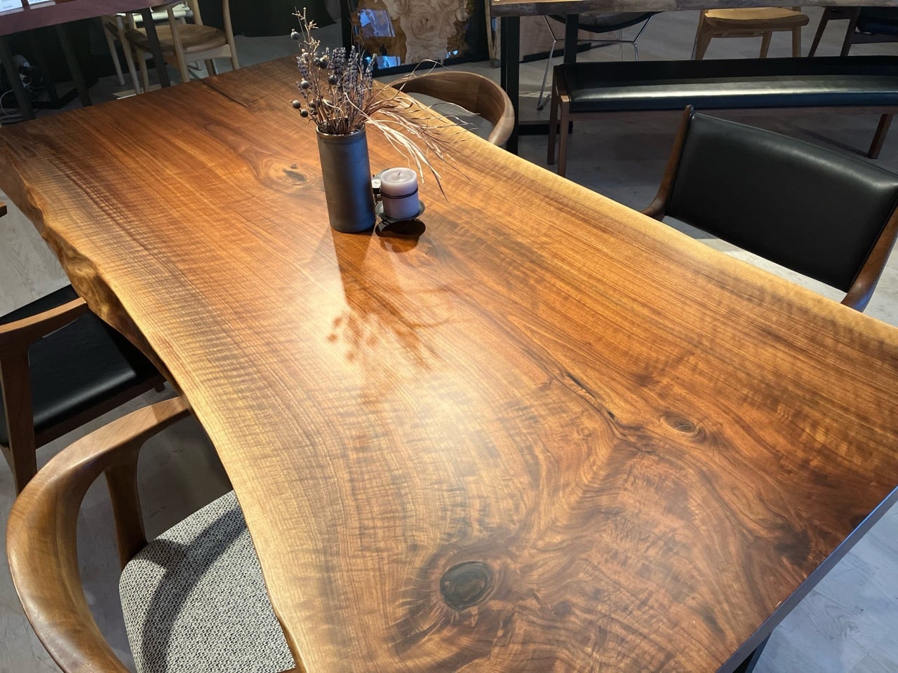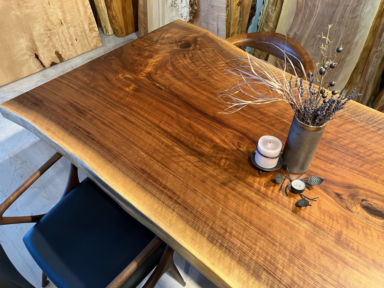 ウォールナットの一枚板は、厳重な乾燥管理が必要ですが、その後の狂いは非常に少なく、高級木材として世界中で愛されています。