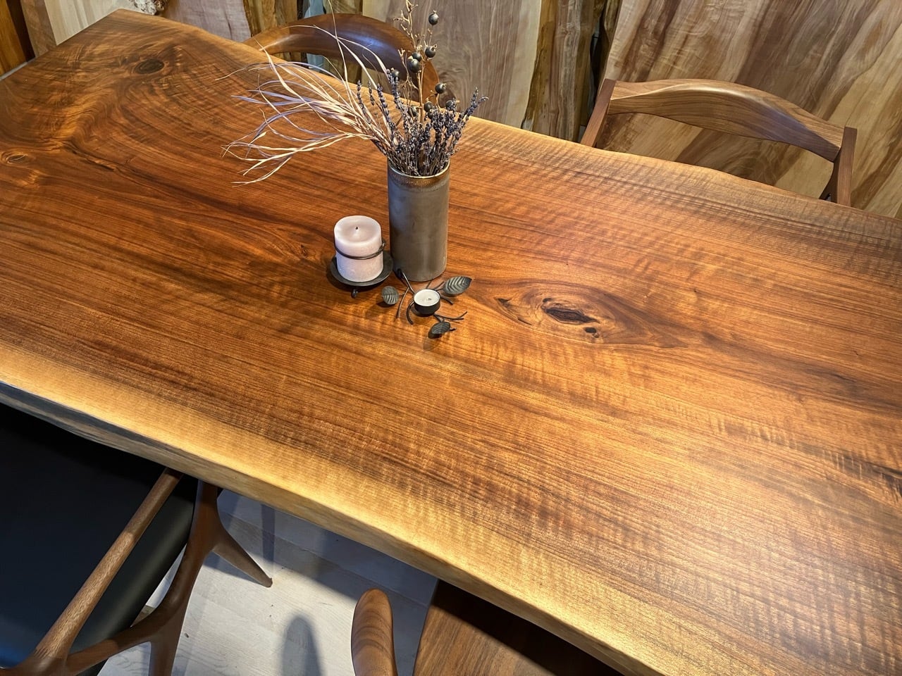 他の樹木の一枚板にも当てはまることですが、やはり丸太から直接切り出した天然無垢の一枚板は、木に表情があります。人と同様、木の表情は「やさしさ」や「ぬくもり」といった要素になります。家の中に「やさしさ」や「ぬくもり」をプラスしたいと思ったら、無垢の一枚板は最高のチョイスとなるでしょう。