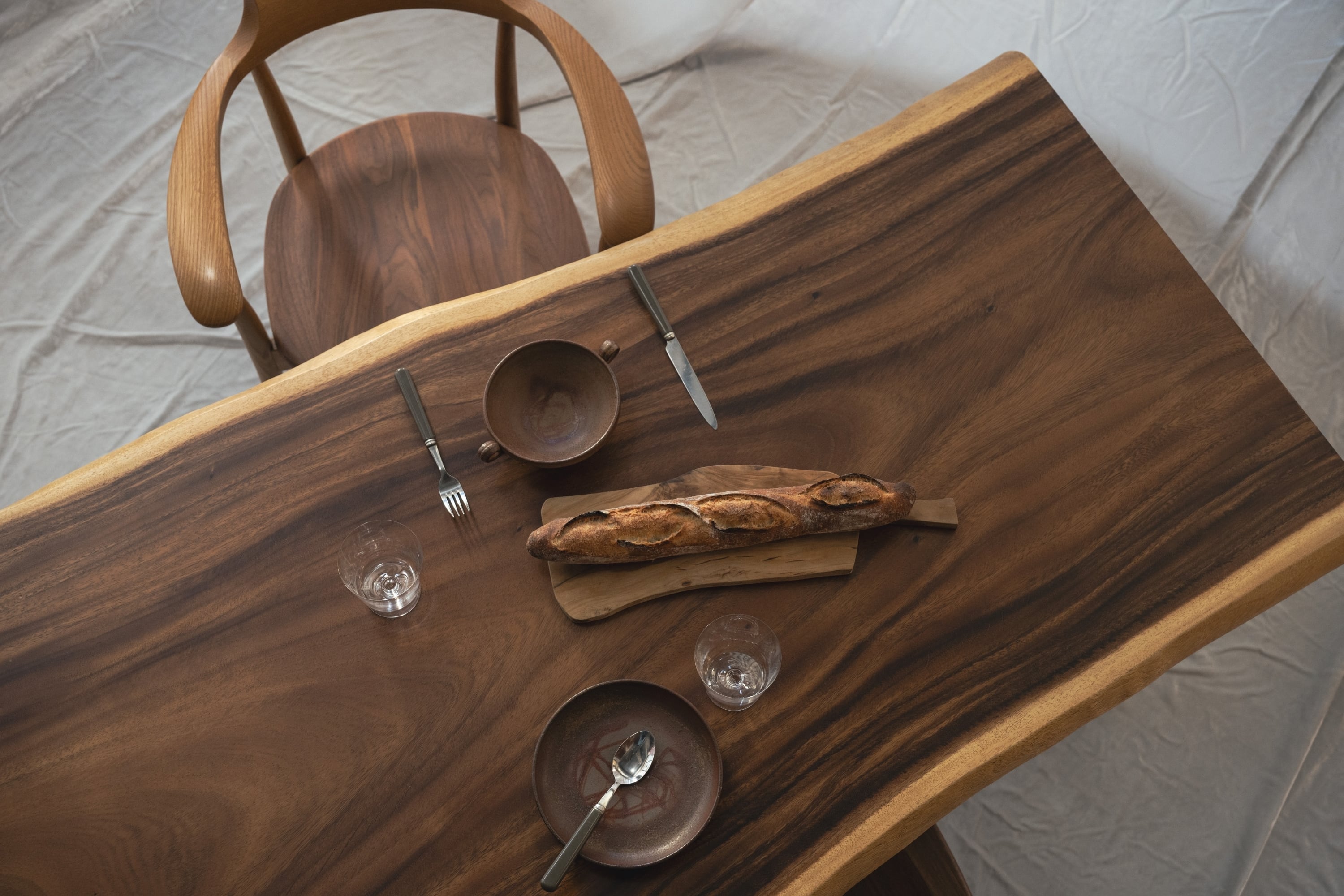 淡い色味と濃い色味のグラデーションがはっきりしており、樹形だけでなく色調も強い個性を楽しむ事ができます。また、白太が残っていると赤太とのコントラストが美しく、白木と黒木の両方を兼ね備えているので、どんな空間にもマッチします。