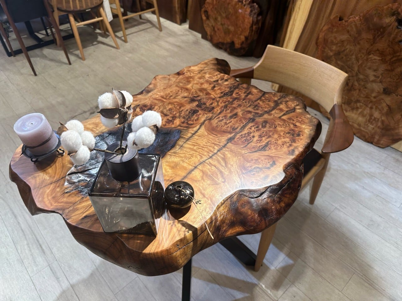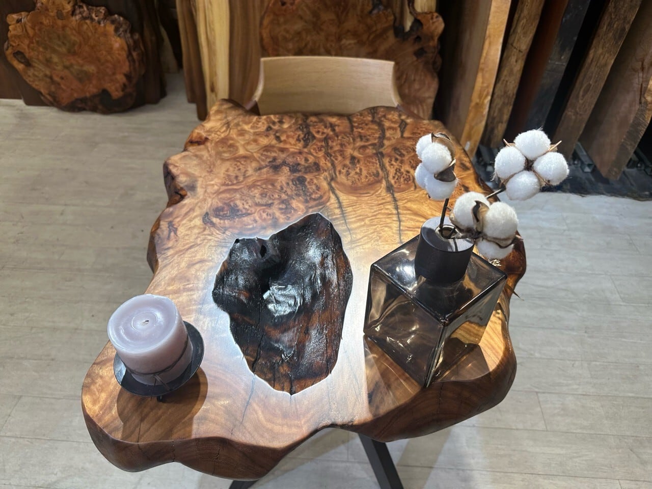 グラデーションの色味が魅力で様々なスタイルに合わせやすく、高級感のある飽きのこない一枚板です。