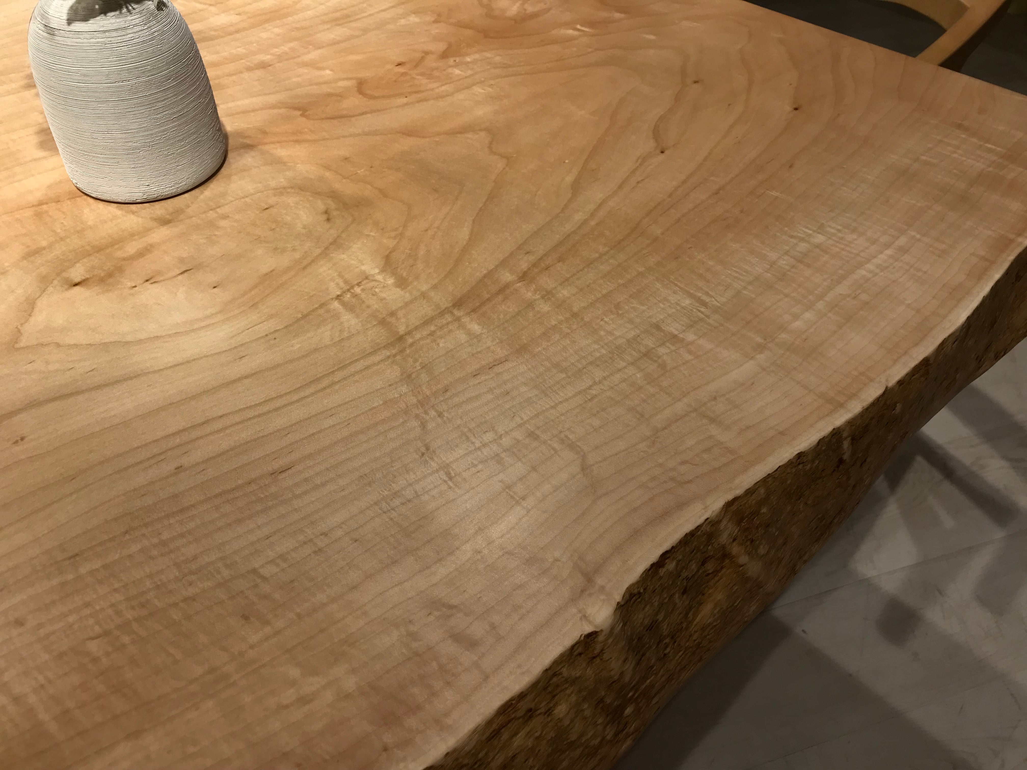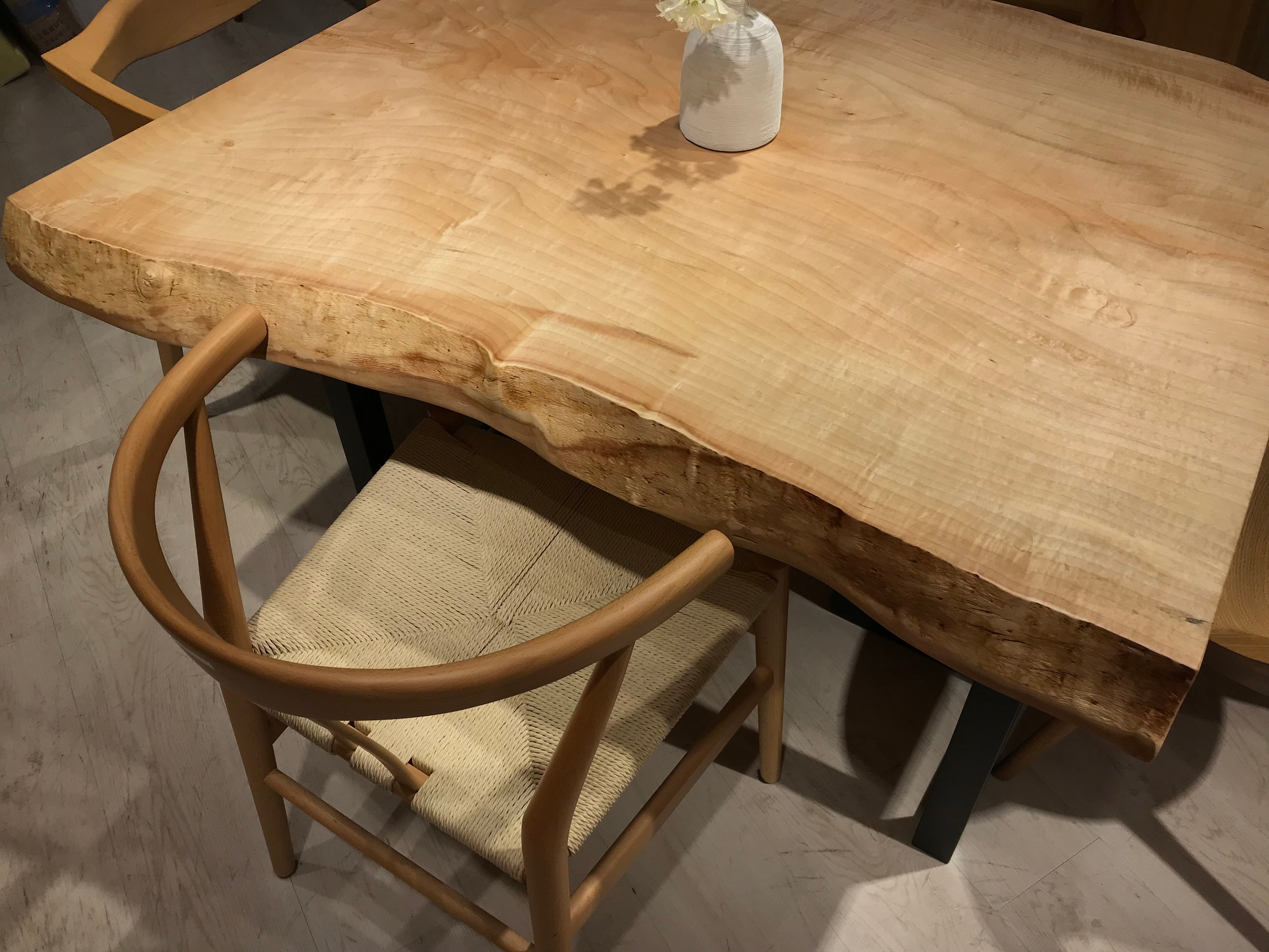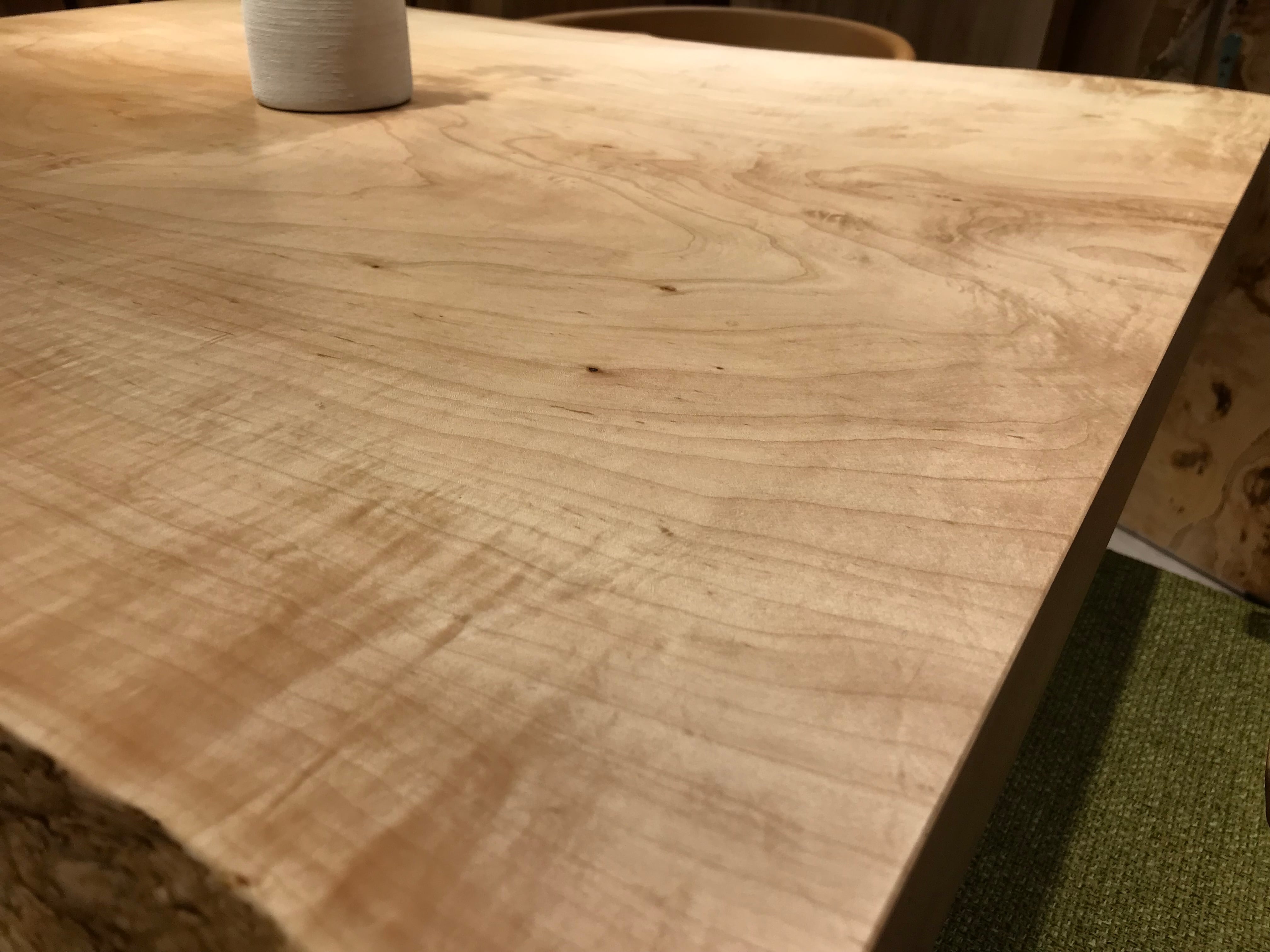 木目が美しいメープルの一枚板。その自然な風合いは、どんなインテリアにもマッチします。