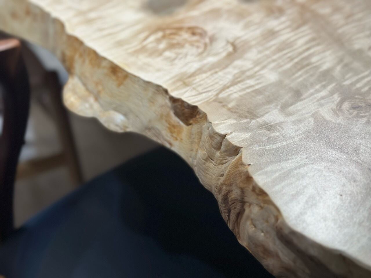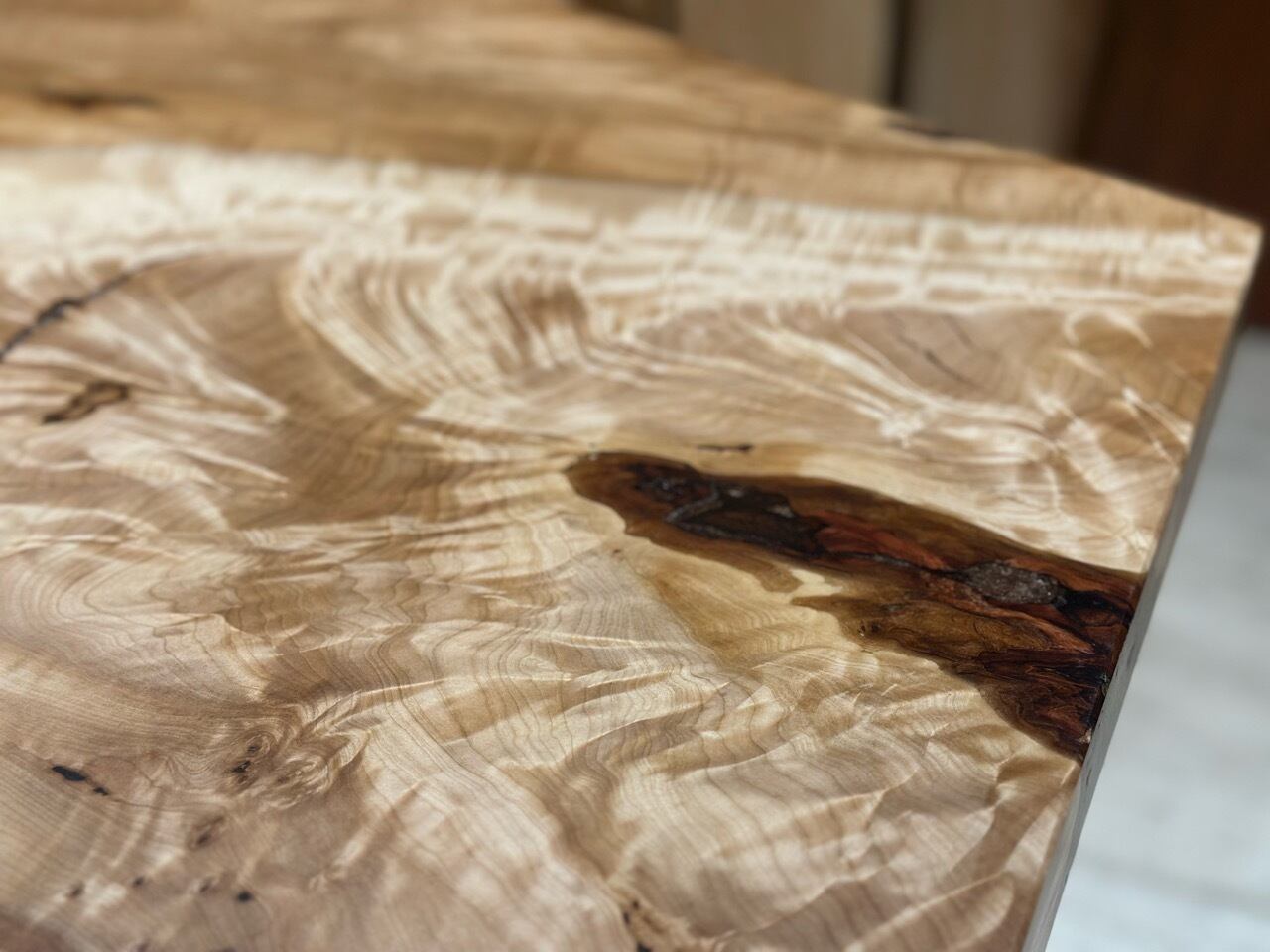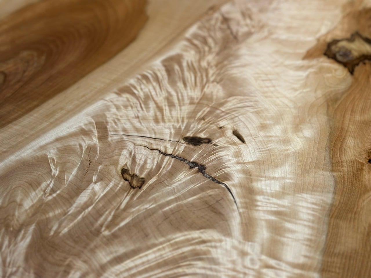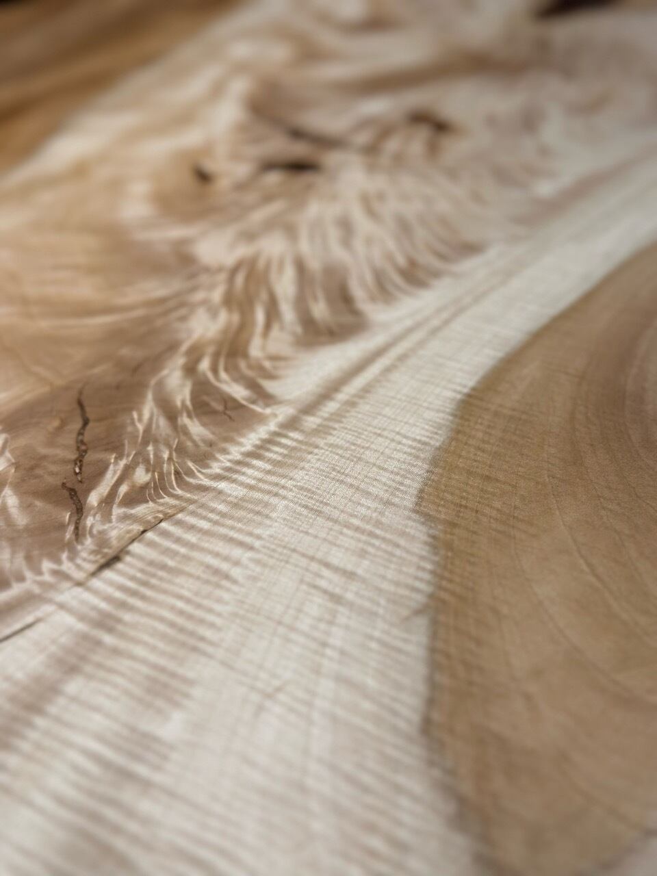 昼光の入射角の変化に伴い杢のトチは豊かに有機的な表情を見せてくれます。