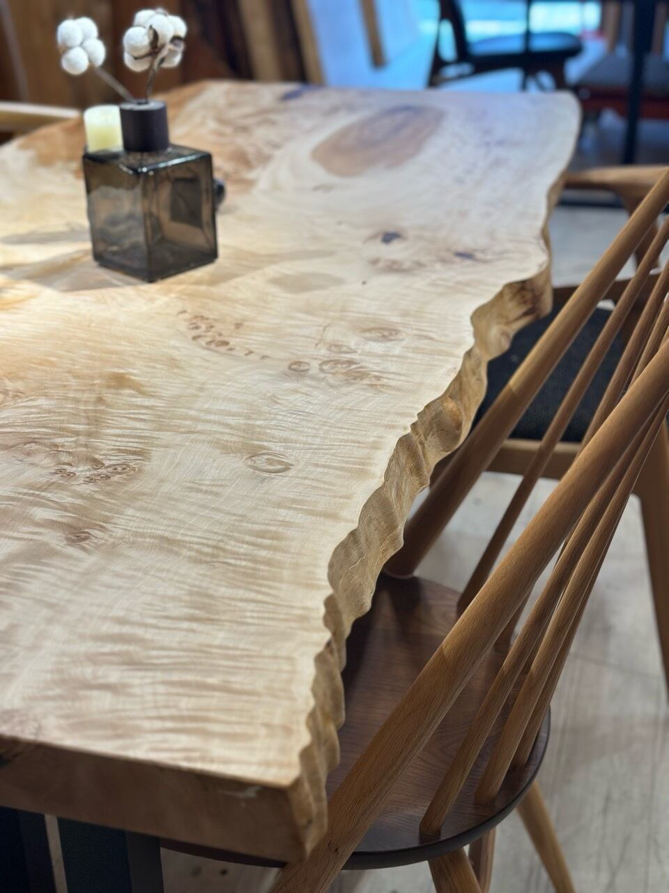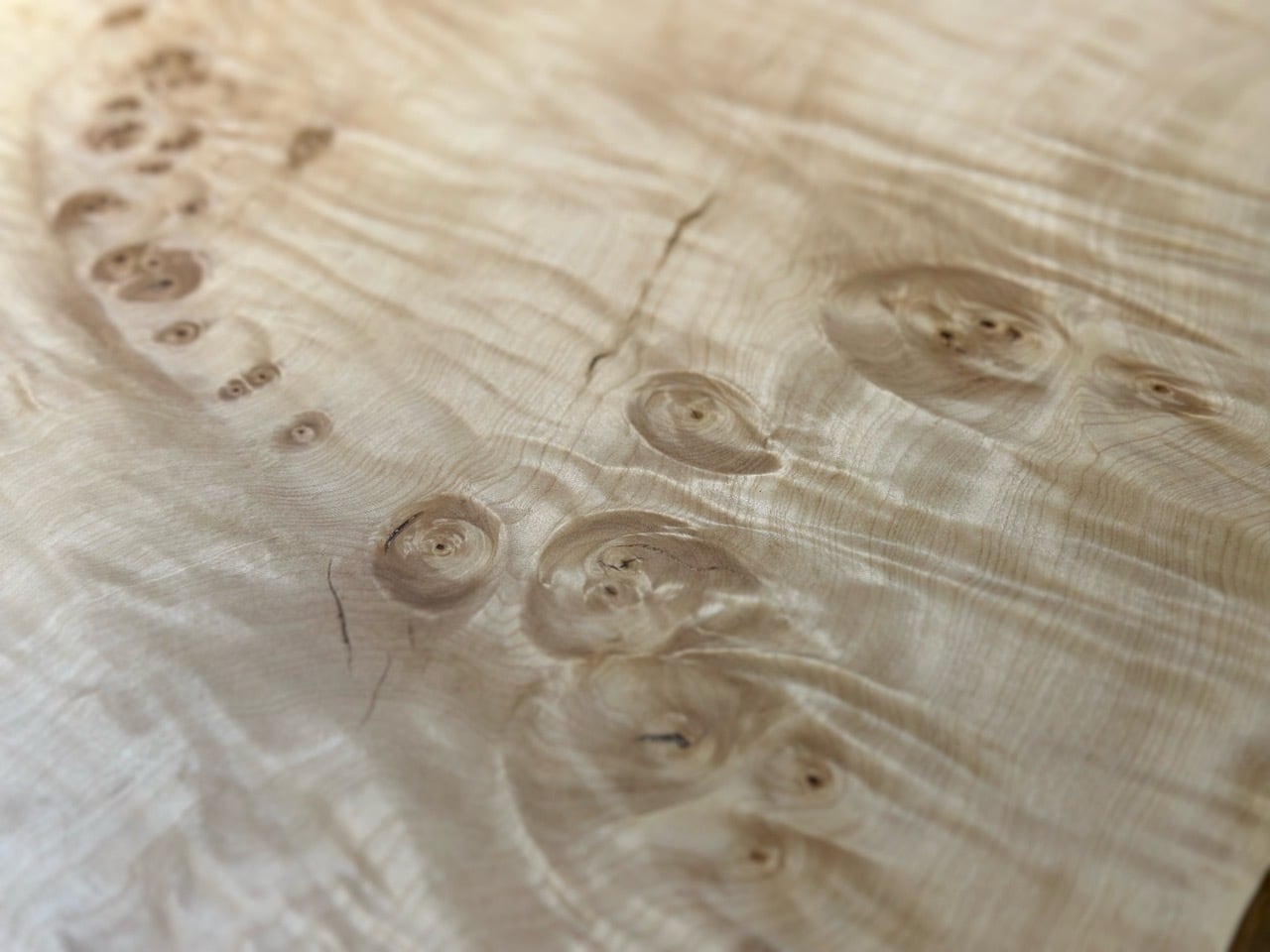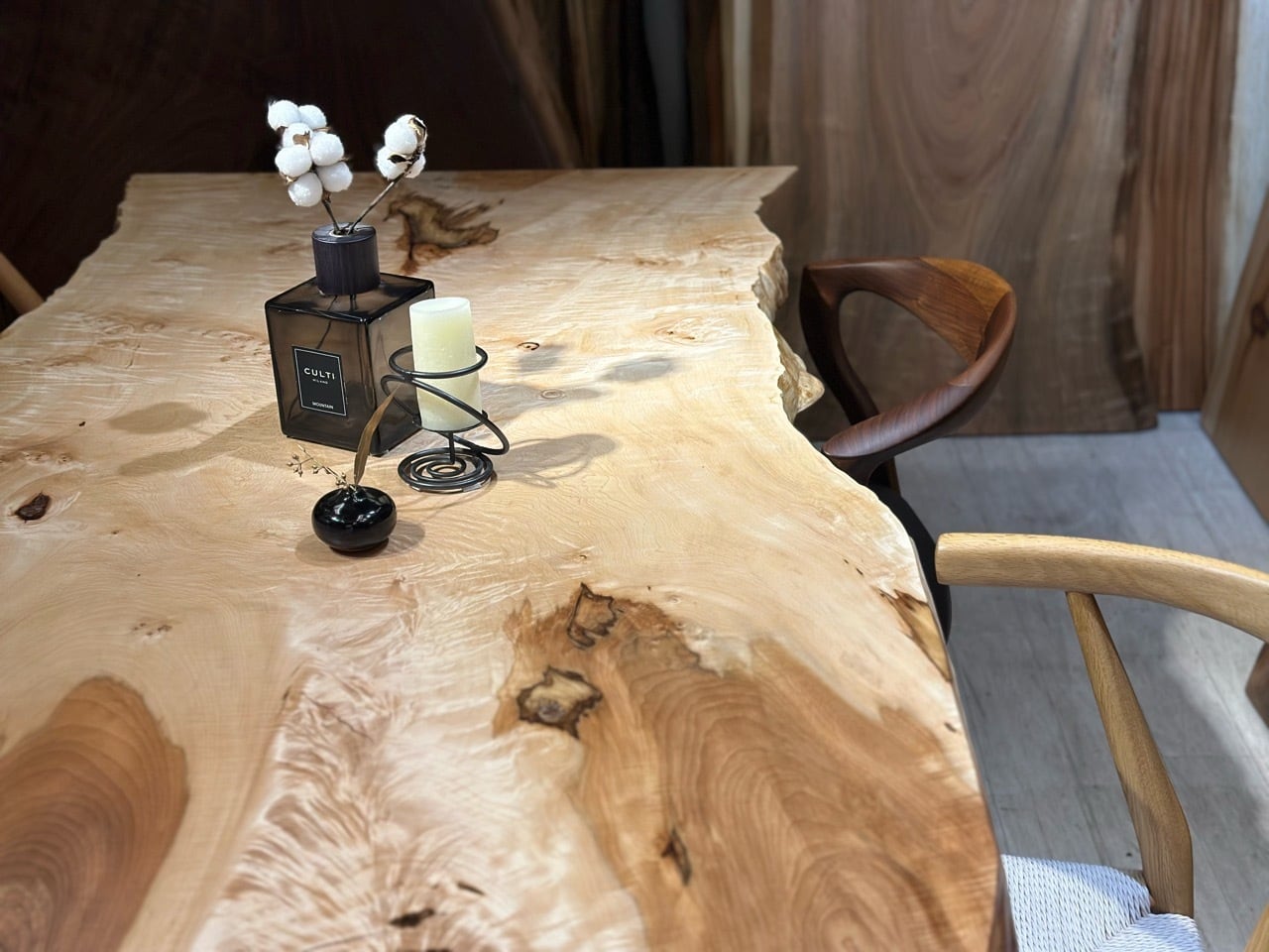 昼光の入射角の変化に伴い杢のトチは豊かに有機的な表情を見せてくれます。