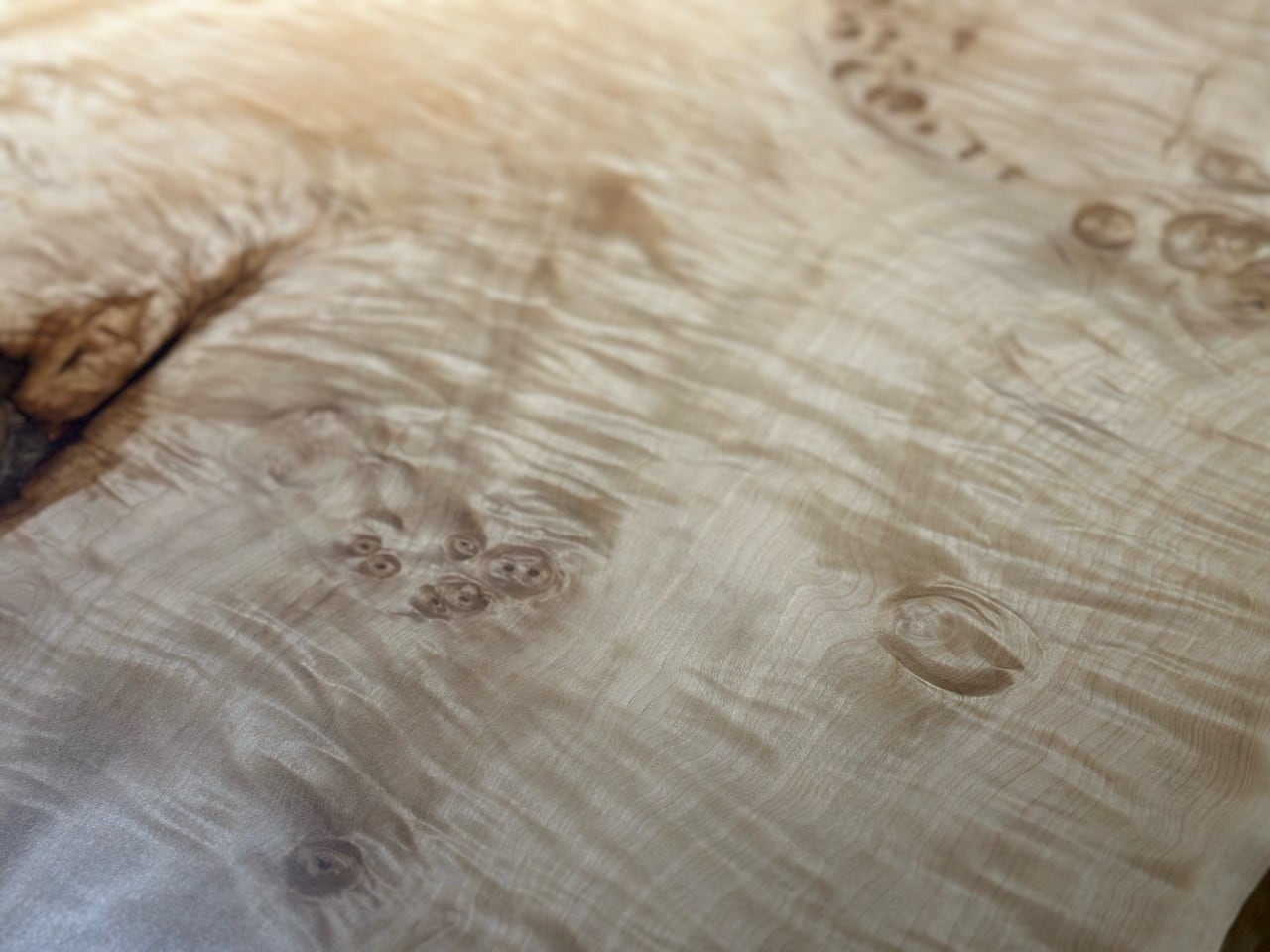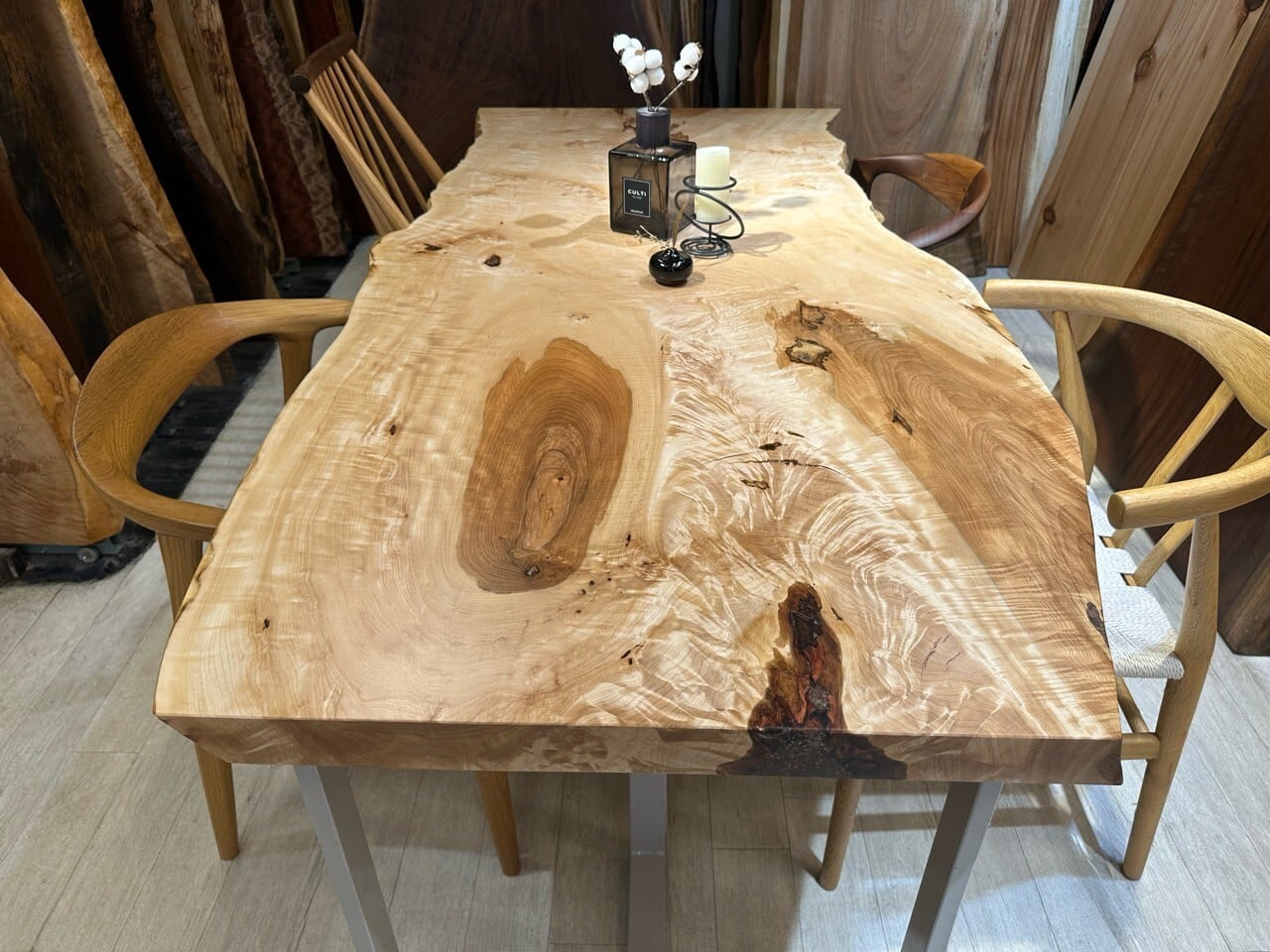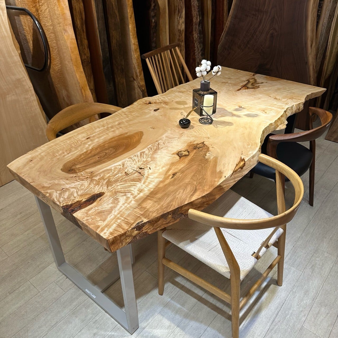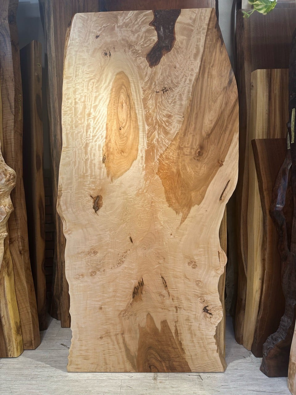 昼光の入射角の変化に伴い杢のトチは豊かに有機的な表情を見せてくれます。