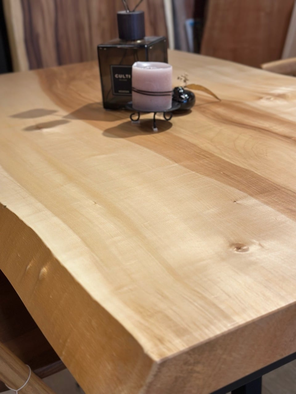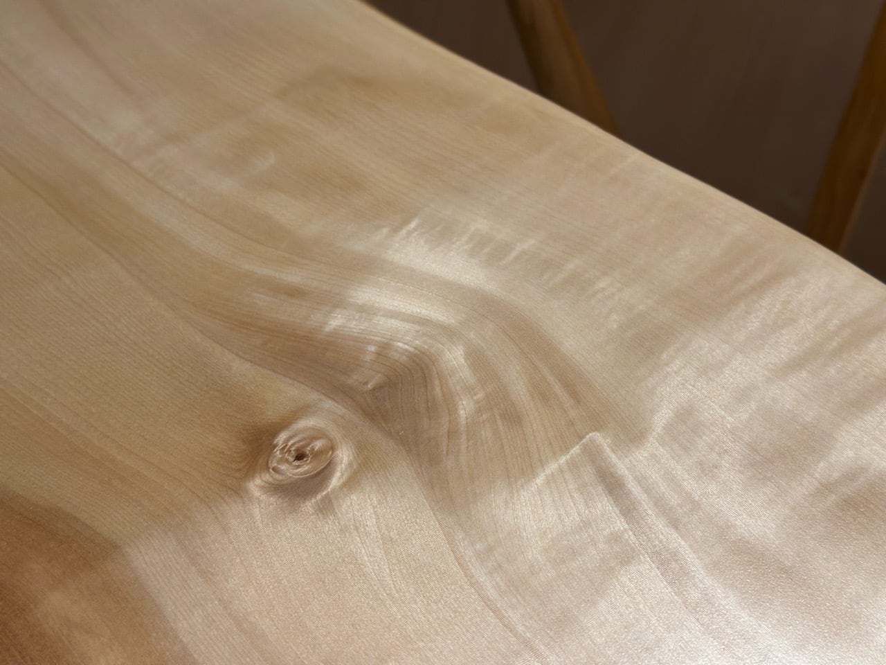 昼光の入射角の変化に伴い杢のトチは豊かに有機的な表情を見せてくれます。