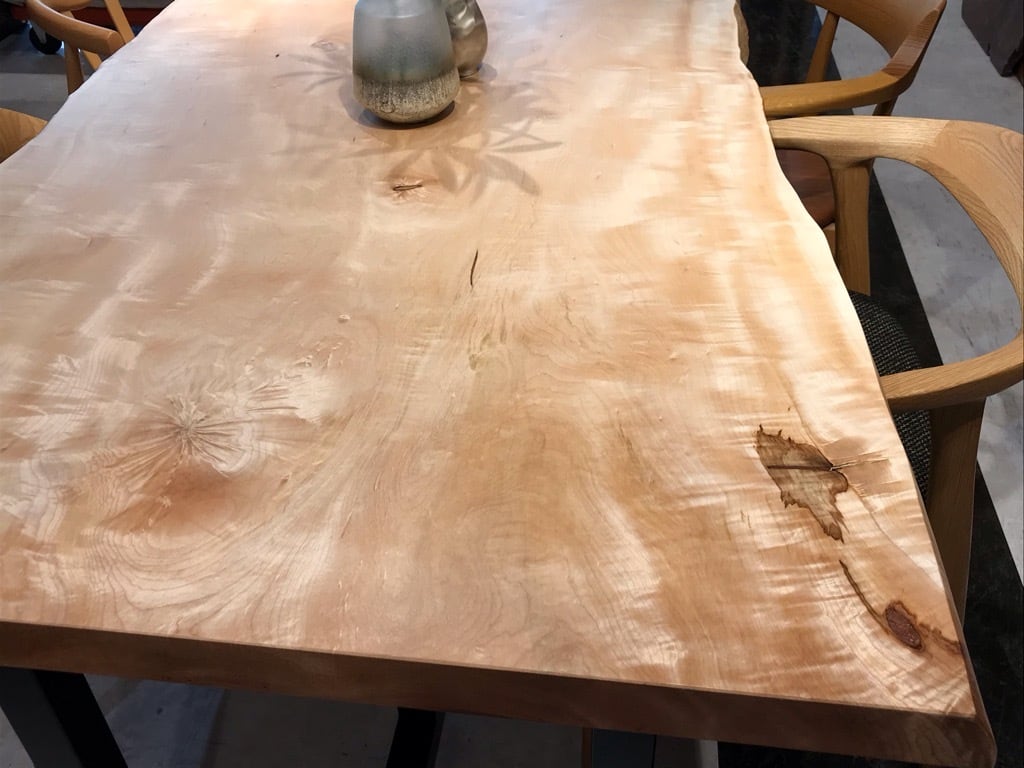 昼光の入射角の変化に伴い杢のトチは豊かに有機的な表情を見せてくれます。