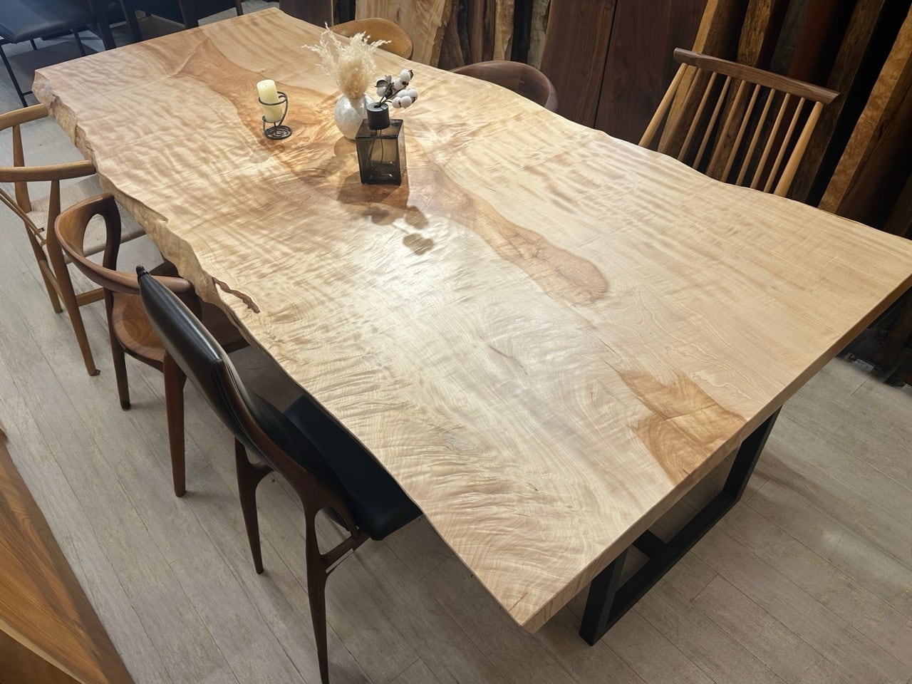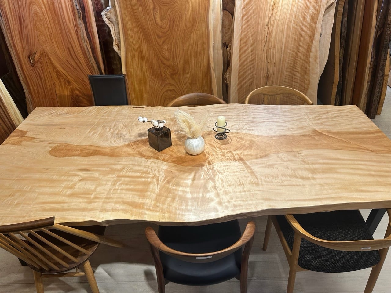 昼光の入射角の変化に伴い杢のトチは豊かに有機的な表情を見せてくれます。