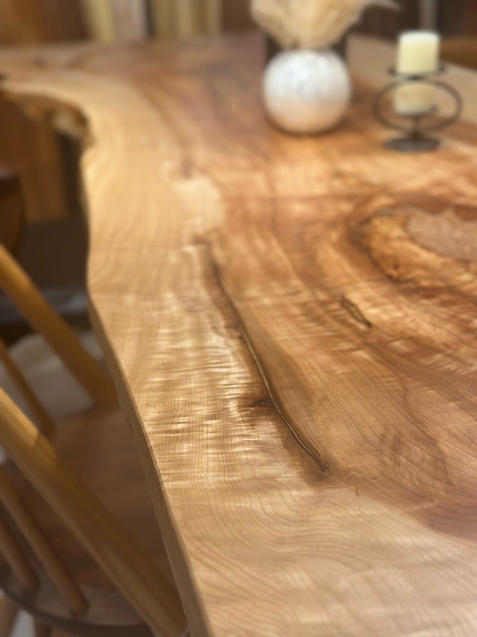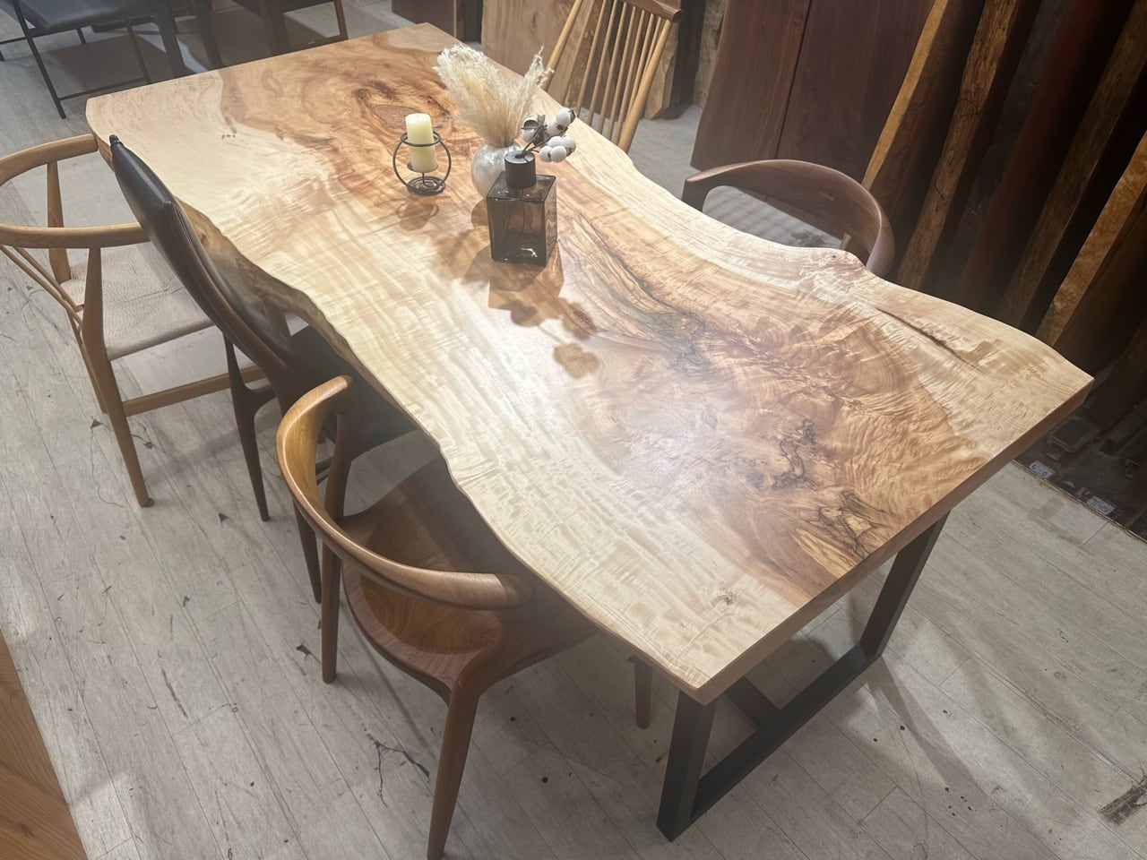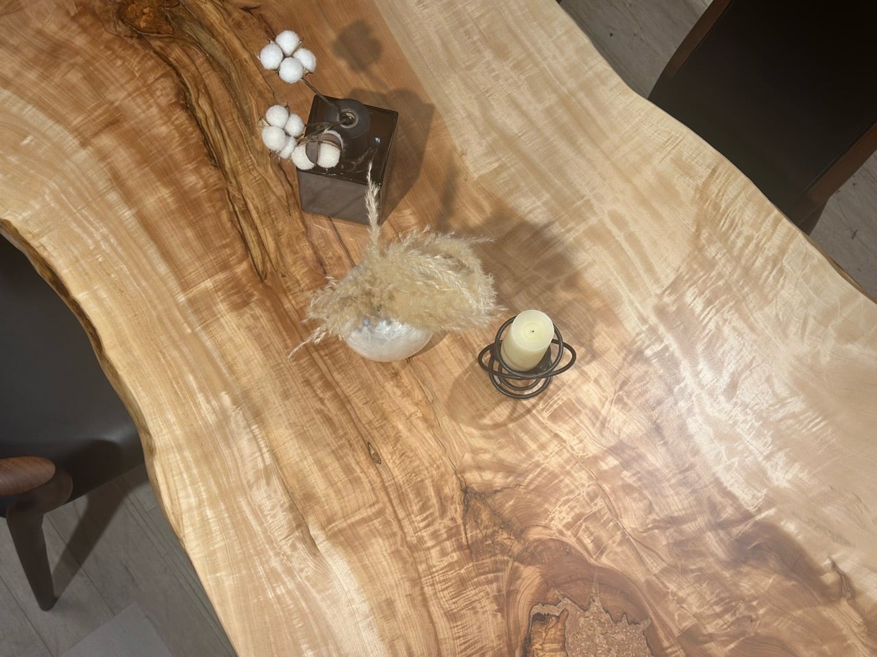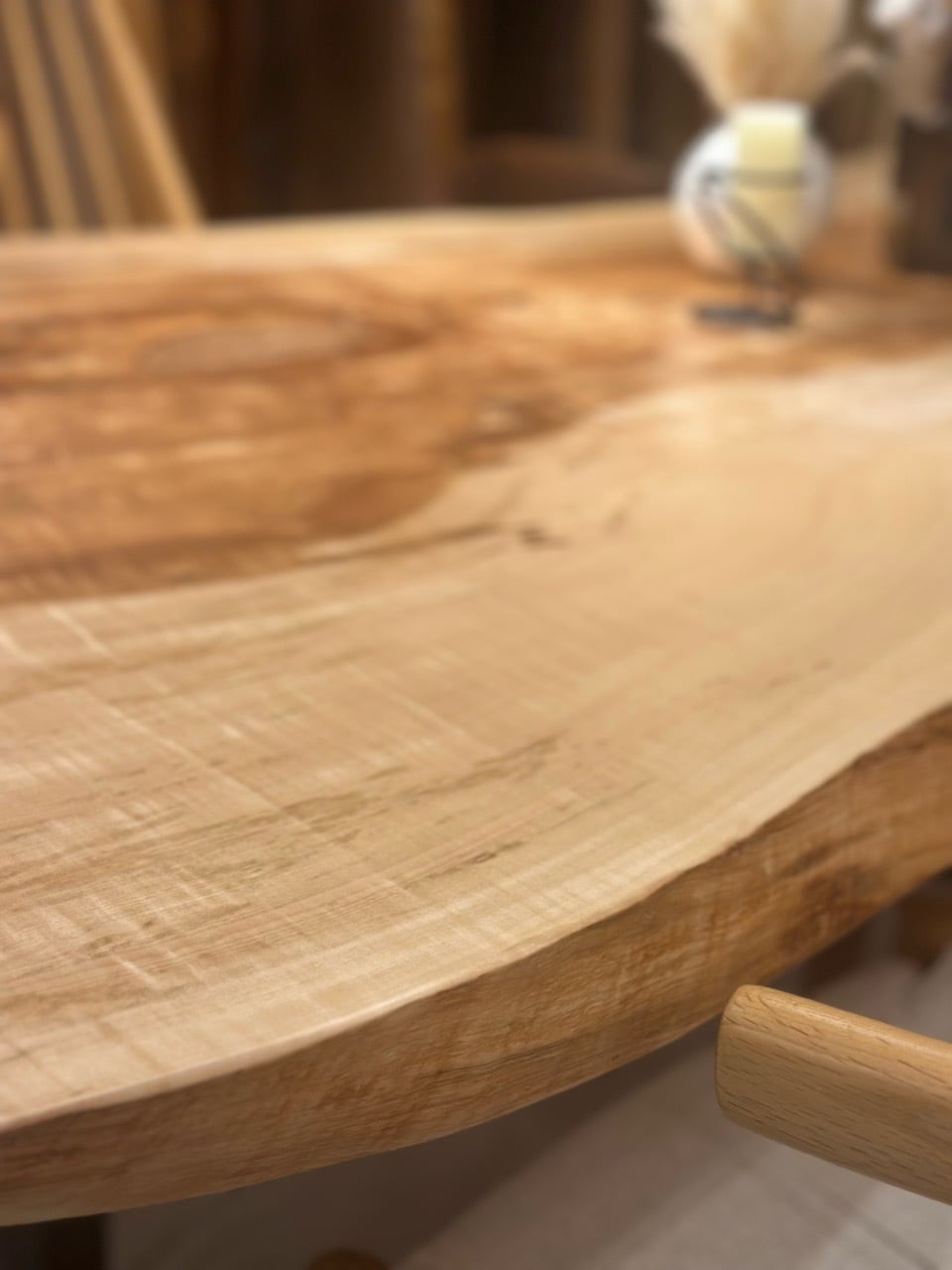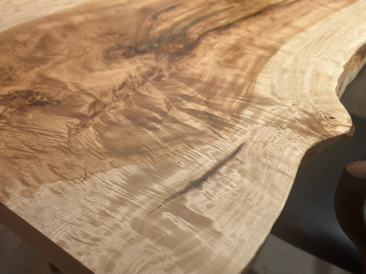 昼光の入射角の変化に伴い杢のトチは豊かに有機的な表情を見せてくれます。
