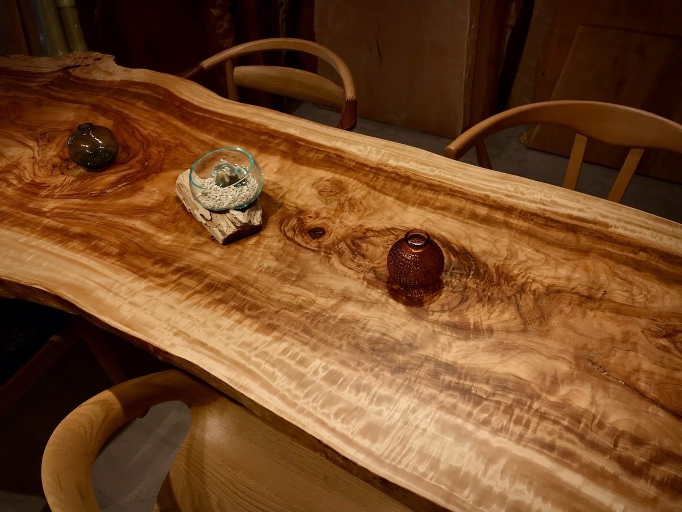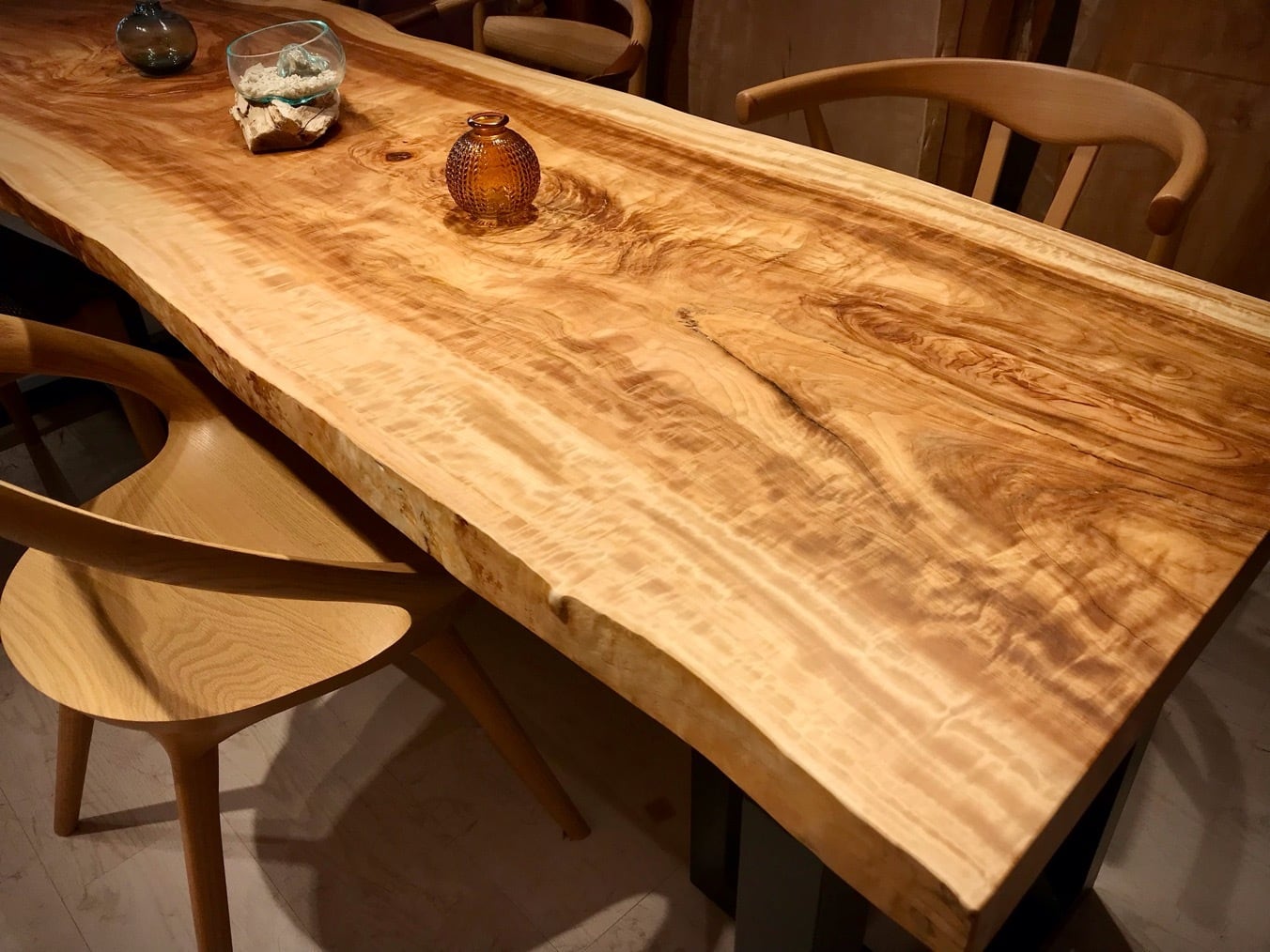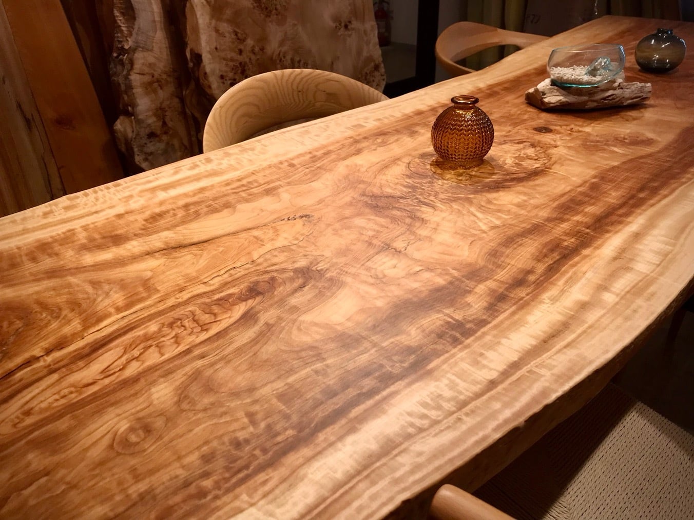 夜は照明との相性でしっとりと杢が美しく瞬きます。