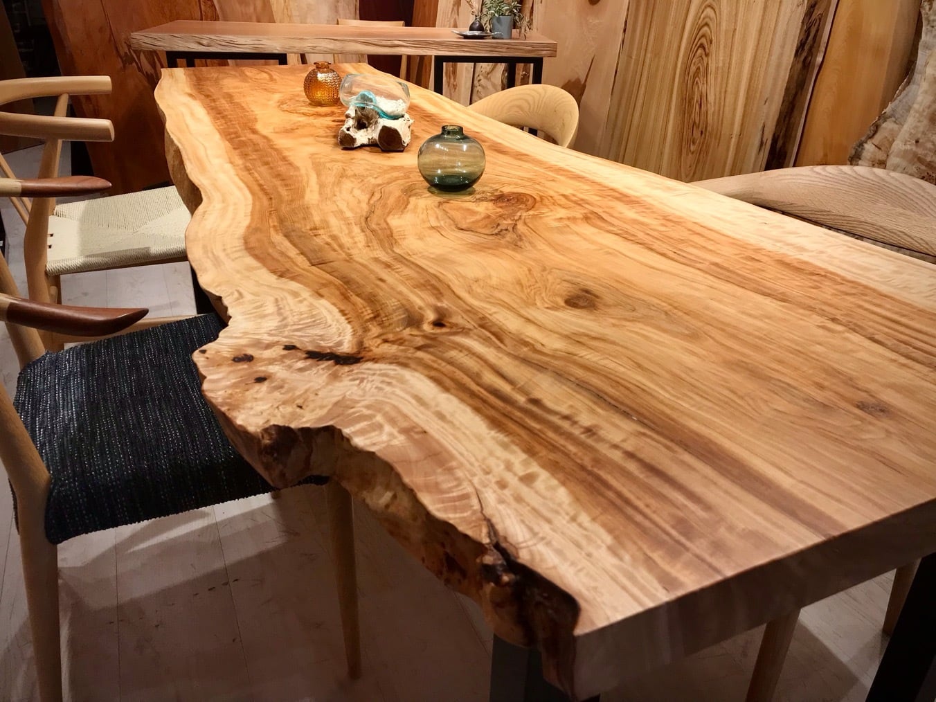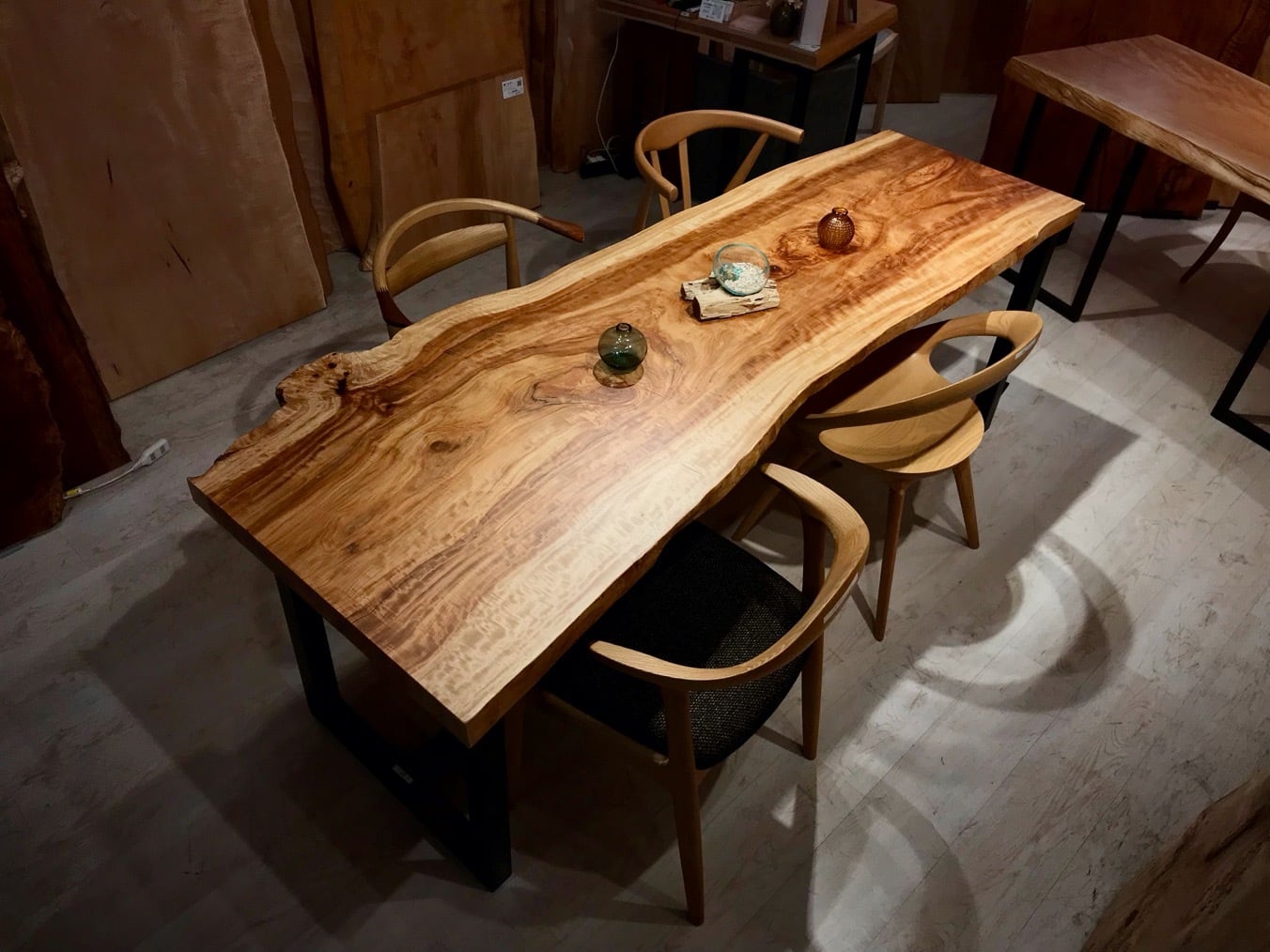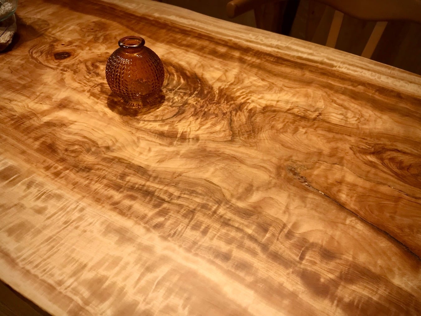 夜は照明との相性でしっとりと杢が美しく瞬きます。