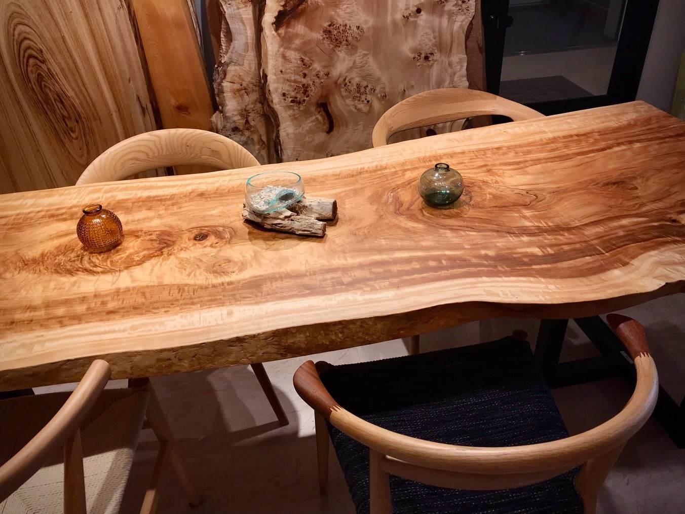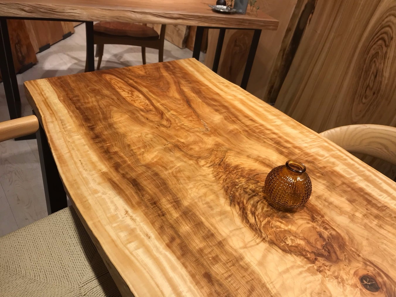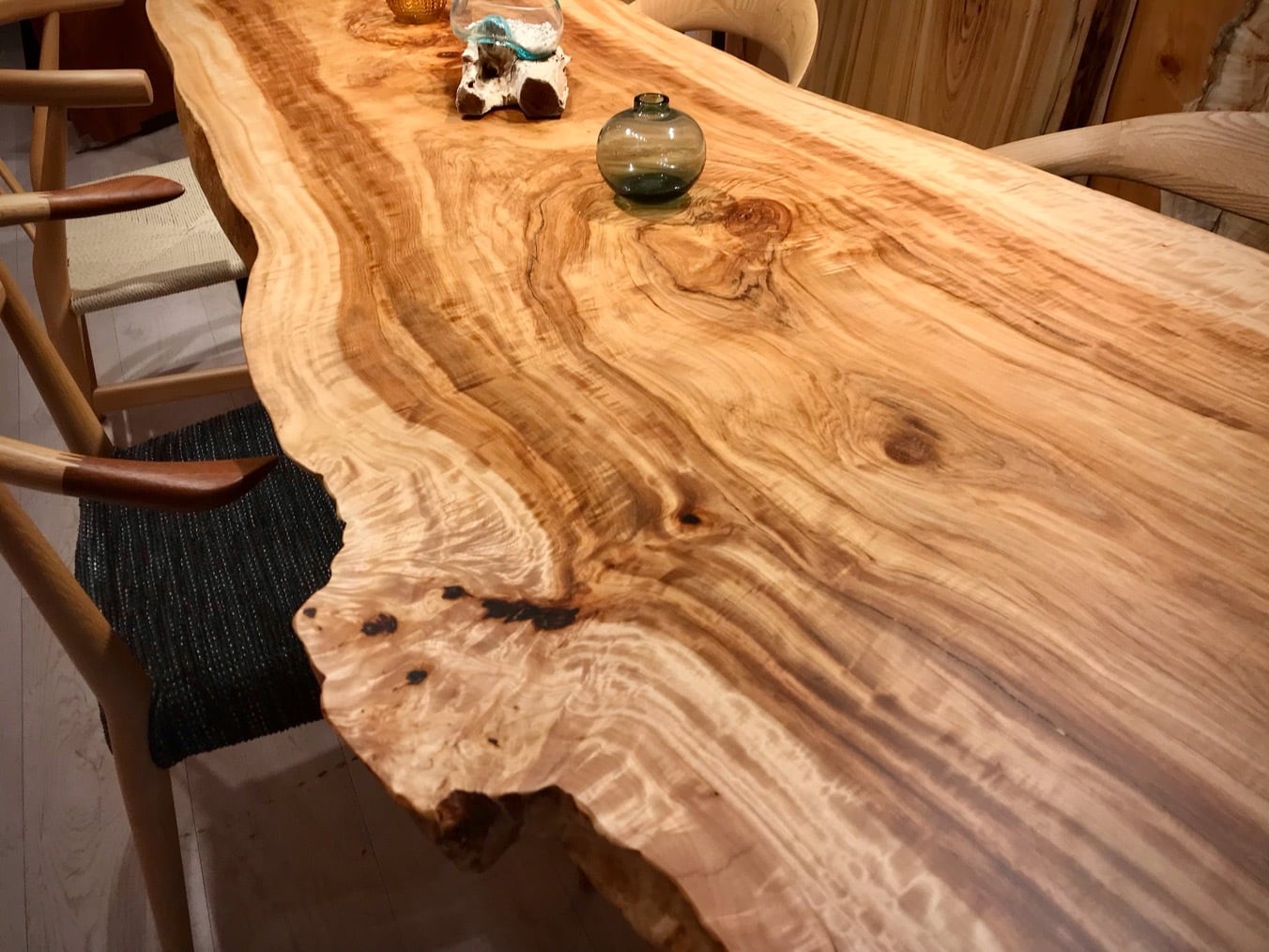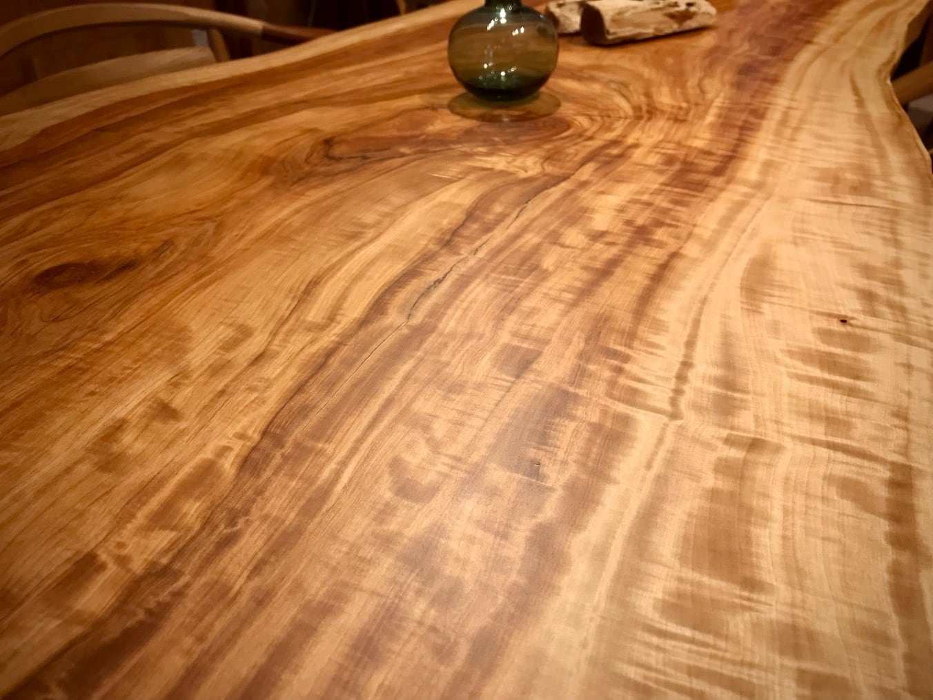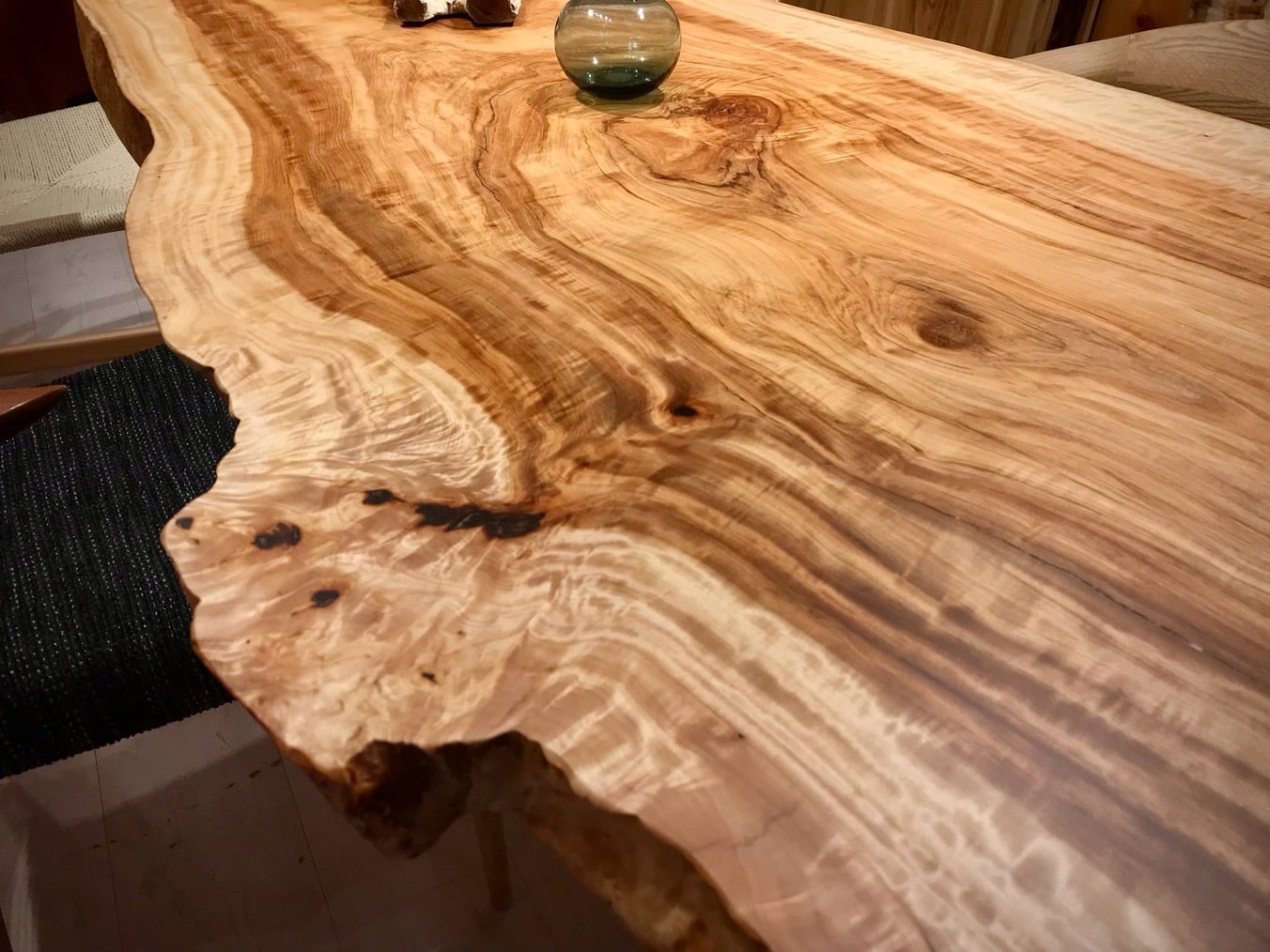 昼光の入射角の変化に伴い杢のトチは豊かに有機的な表情を見せてくれます。