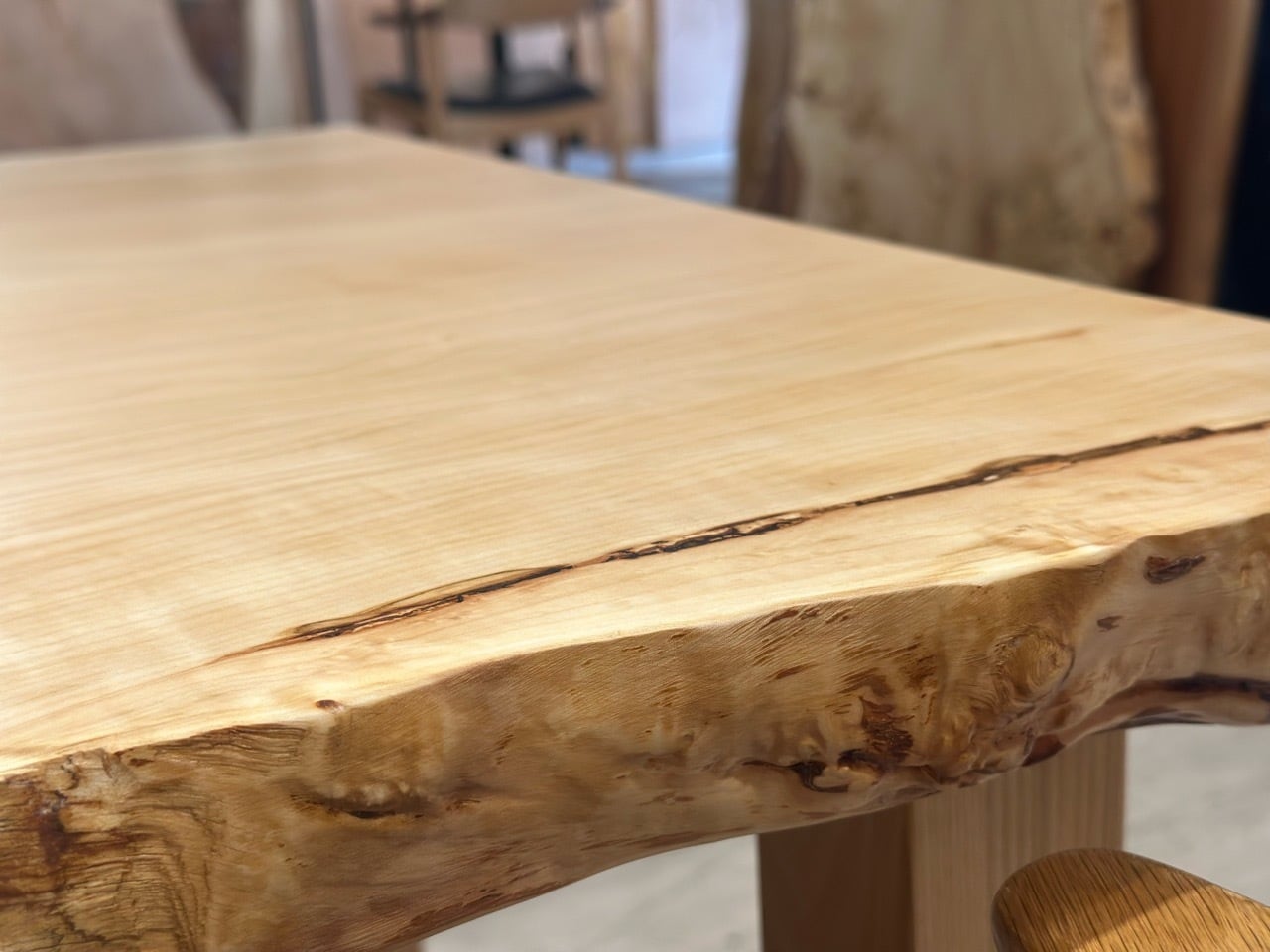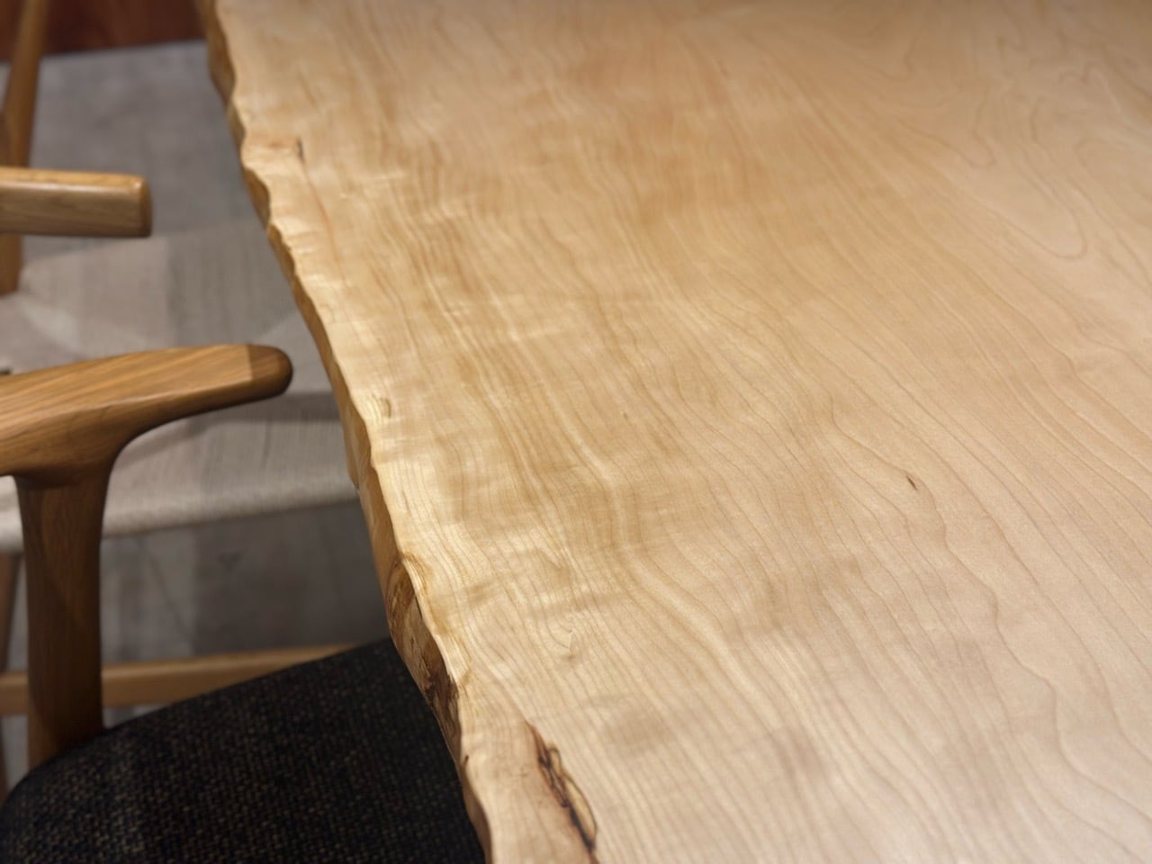 昼光の入射角の変化に伴い杢のトチは豊かに有機的な表情を見せてくれます。