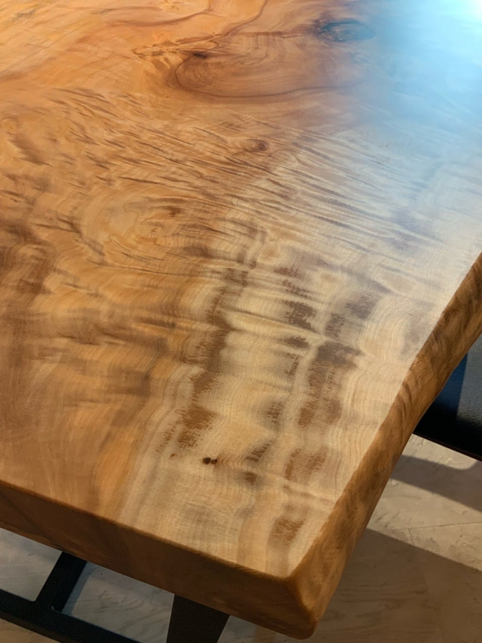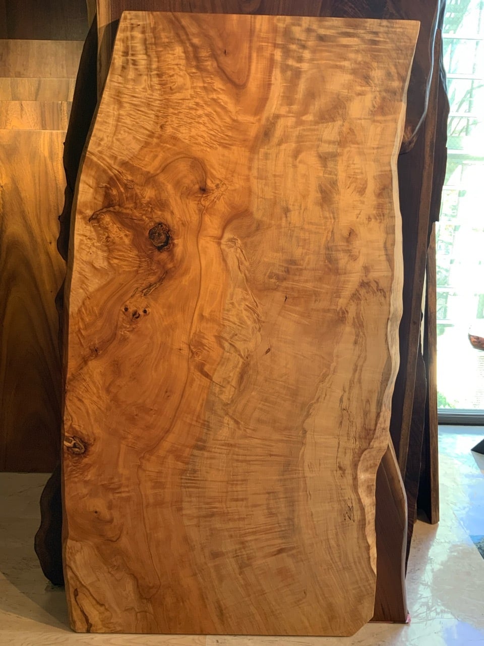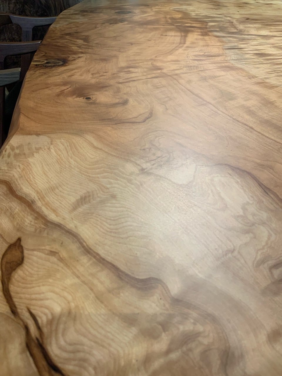 昼光の入射角の変化に伴い杢のトチは豊かに有機的な表情を見せてくれます。