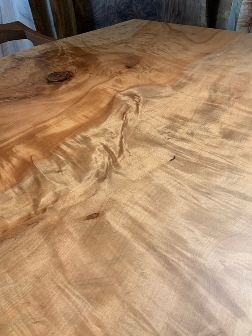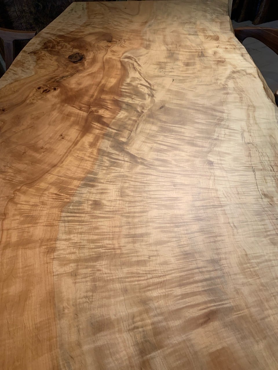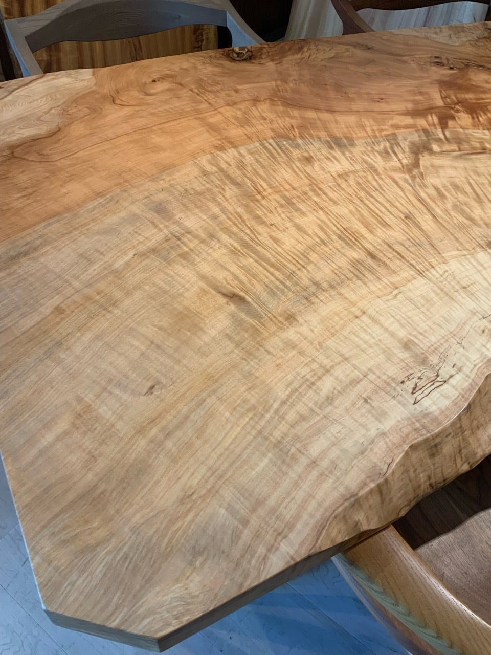 昼光の入射角の変化に伴い杢のトチは豊かに有機的な表情を見せてくれます。