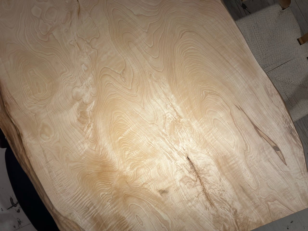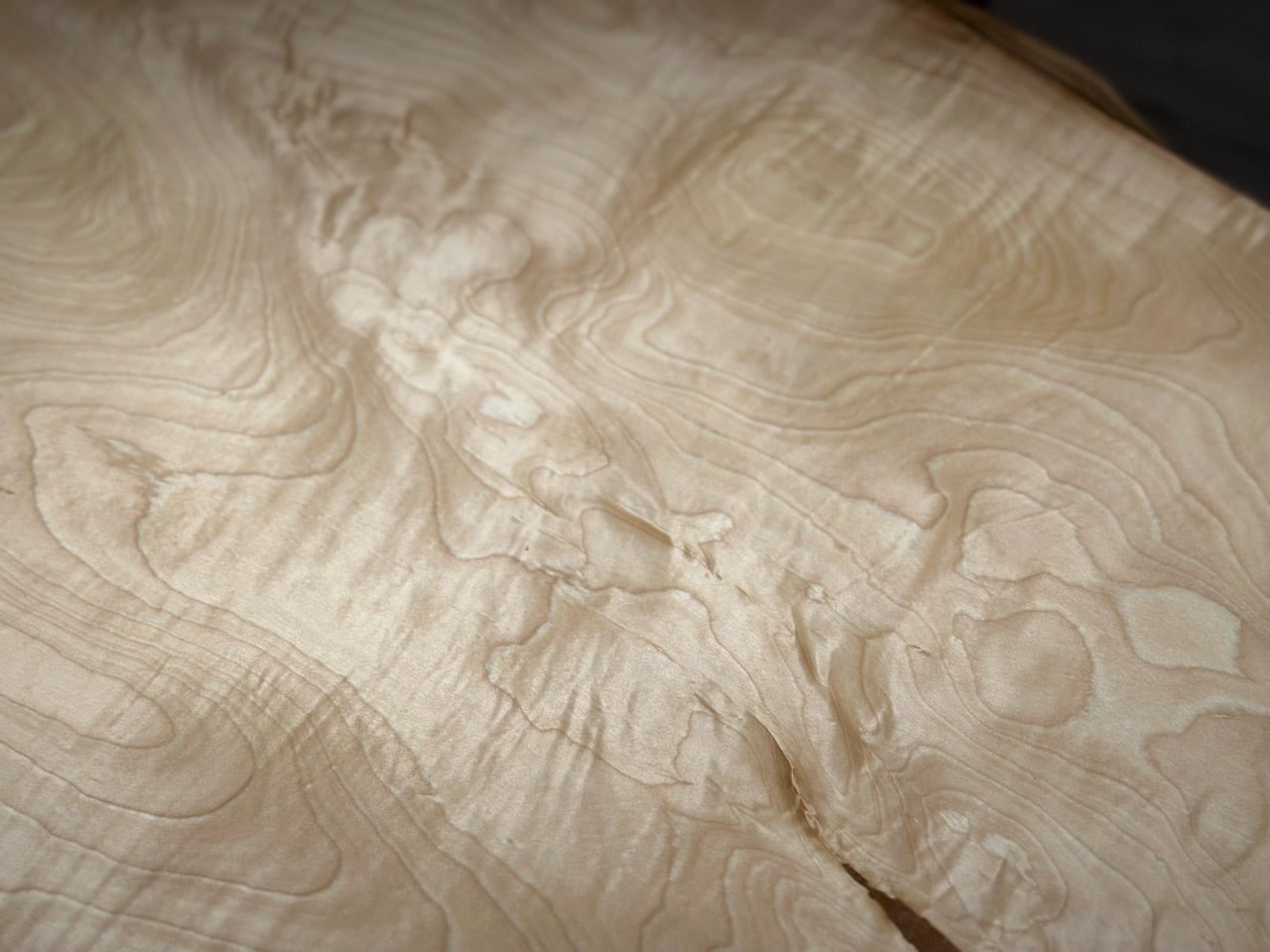 淡い乳白色の木肌が美しい白栃の一枚板。