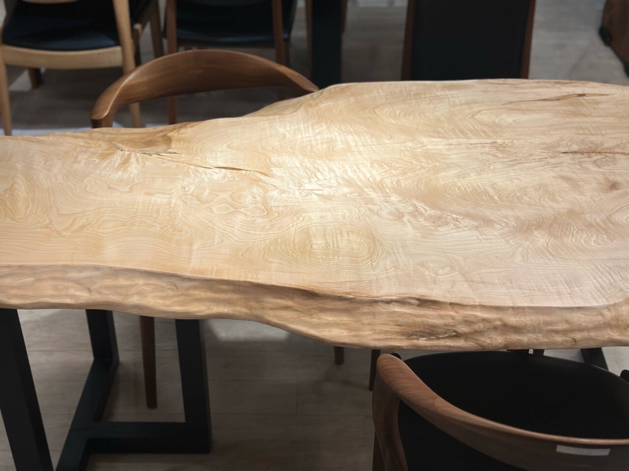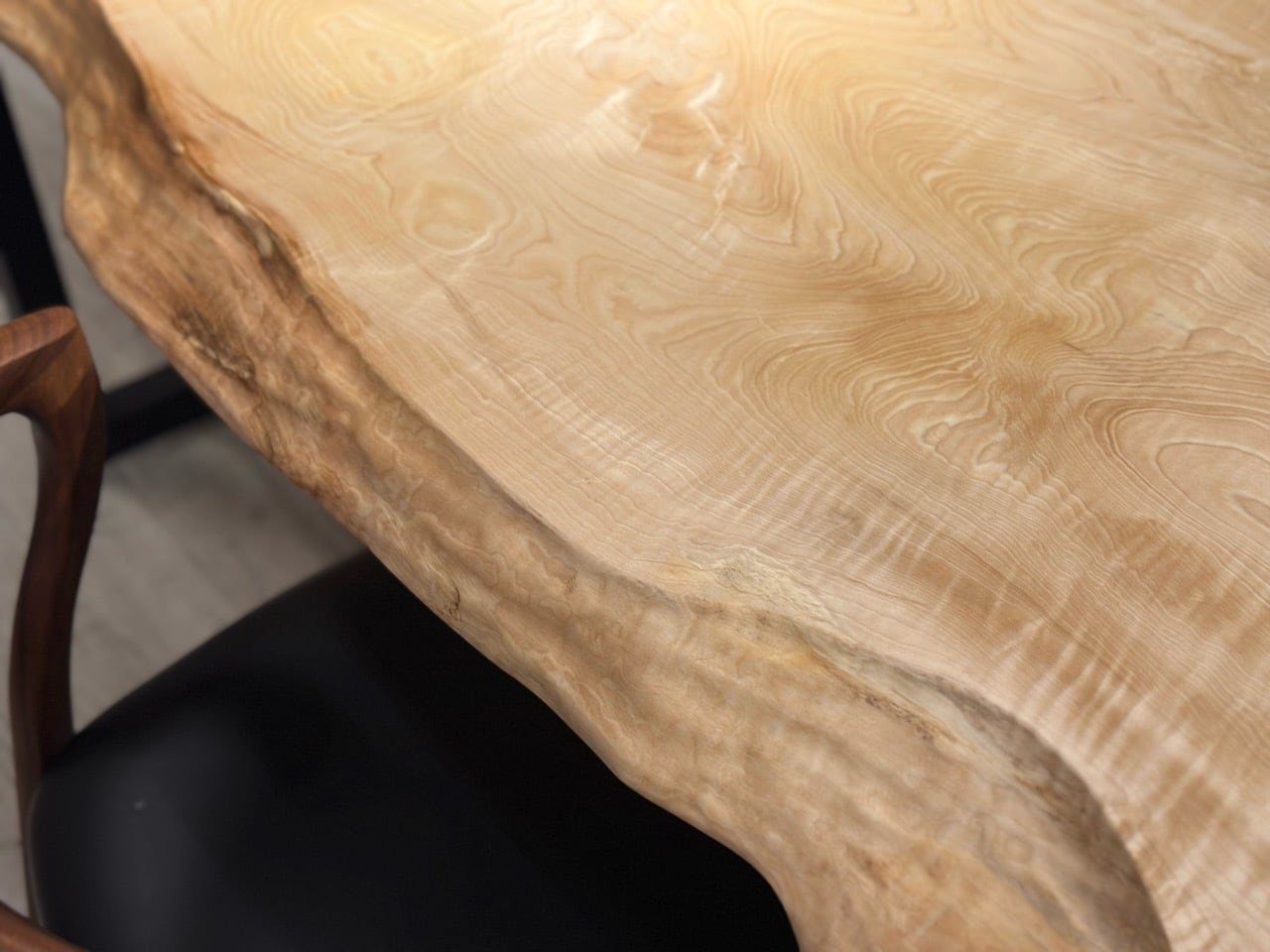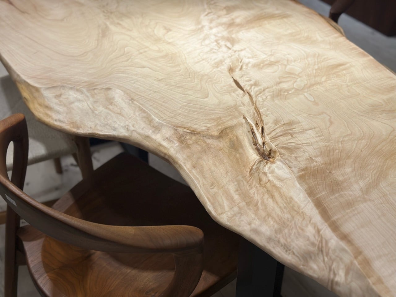木目は非常にきめ細かく、触れるとしっとりとした滑らかさがあり、ナチュラルながらどこか品のある佇まいが魅力。