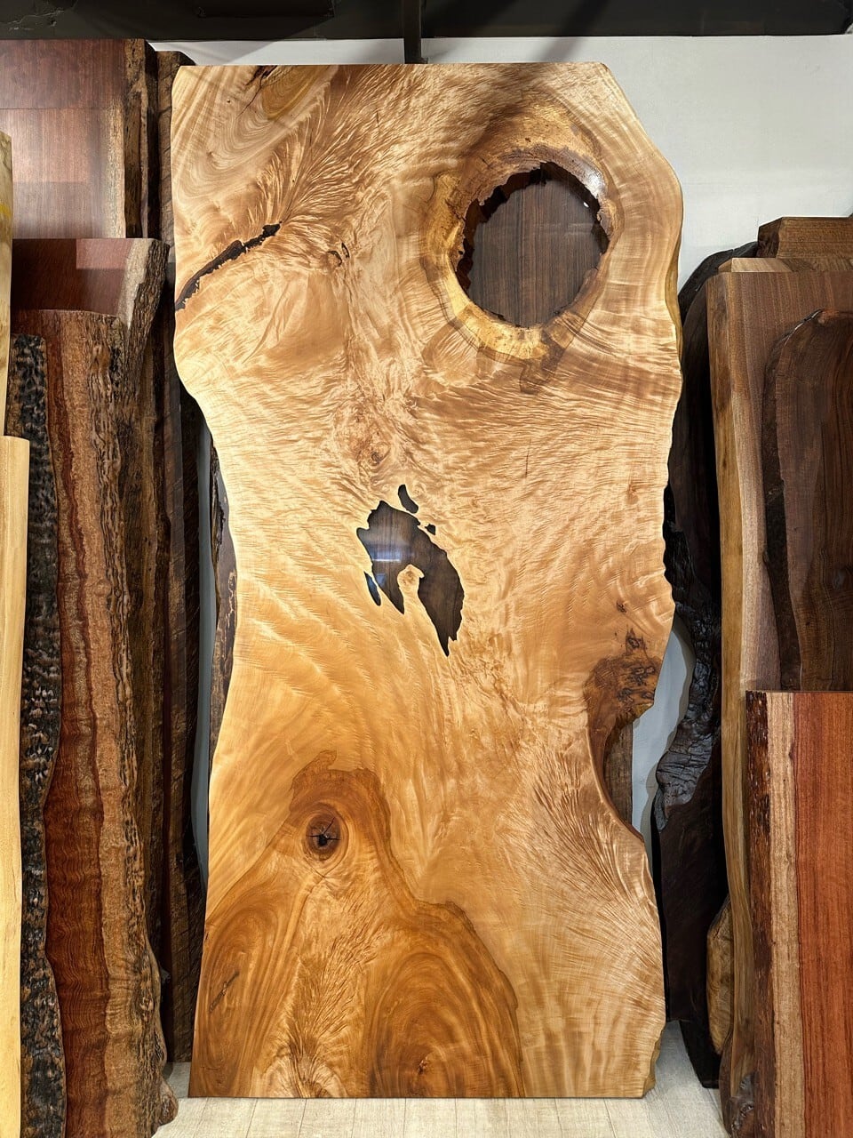 一枚板の実際の大きさ、形をお試し頂けます。