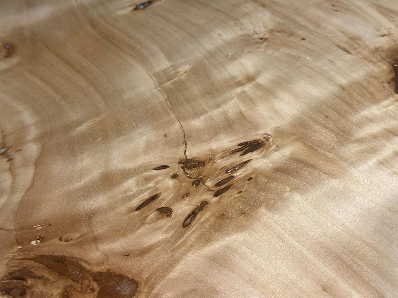 一般的な木は導管一本一本が幹の流れに従って現れますが、瘤がある場合導管に食い込むような形になるのでマーブル模様のように見える部分もあり、その不規則さに情緒が感じられます。