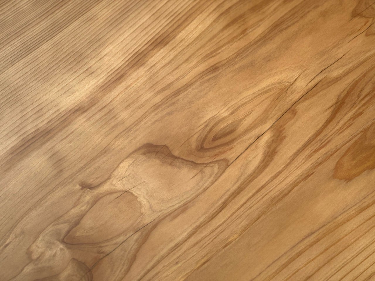 ハードウッド仕上げでは、木材の風合いを生かしたコーティングの薄塗りにより木材をを強化し、広葉樹の代表格であるナラに匹敵するほどの硬さが得られます。
