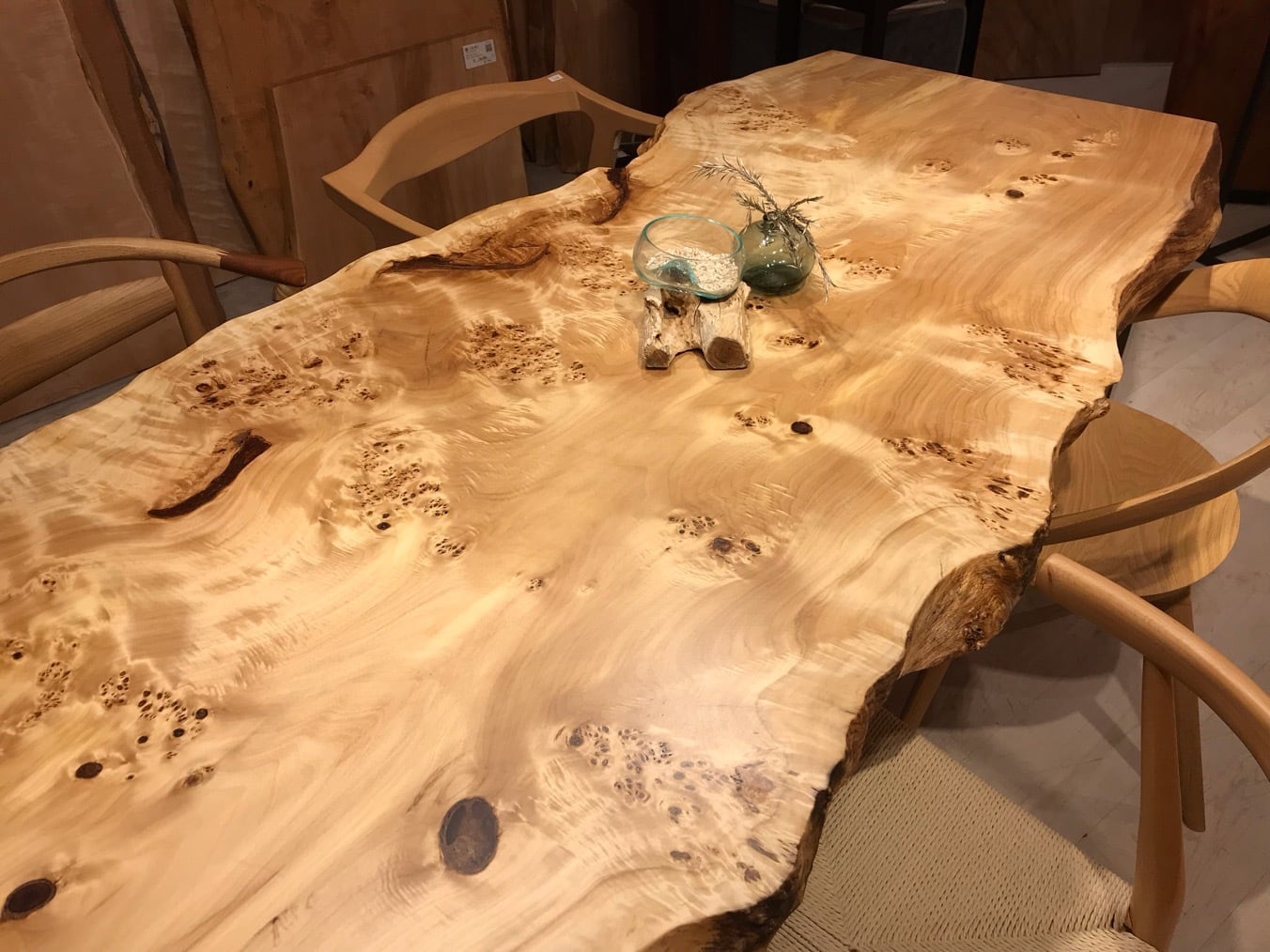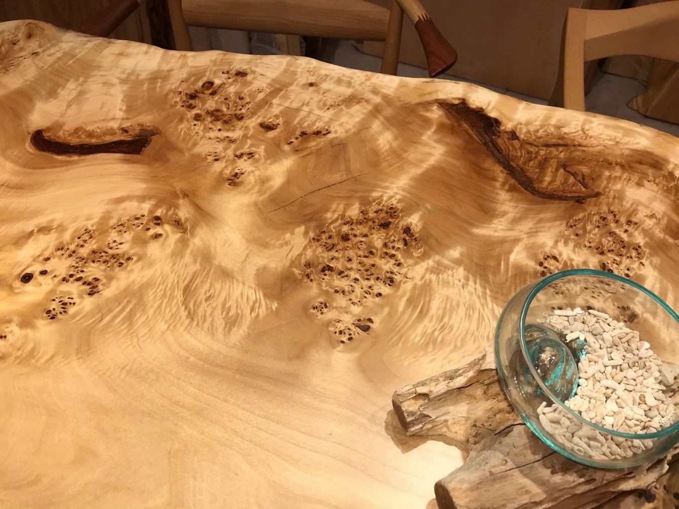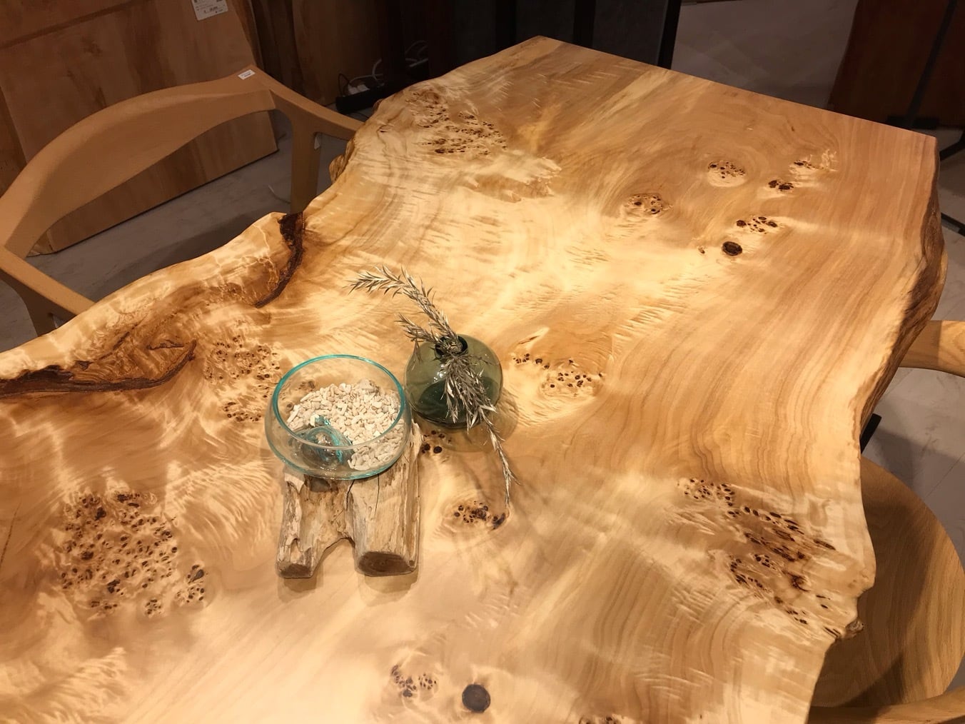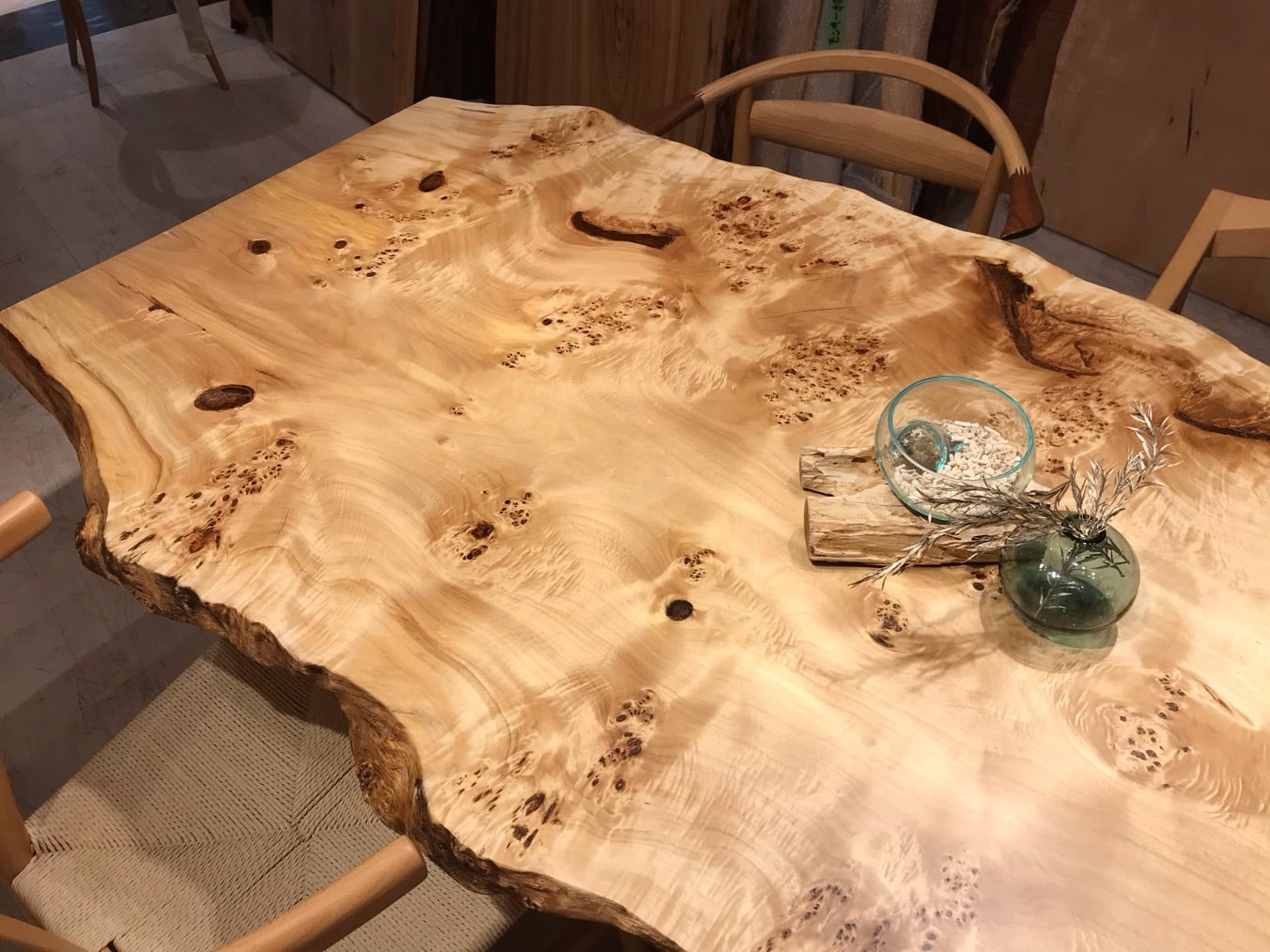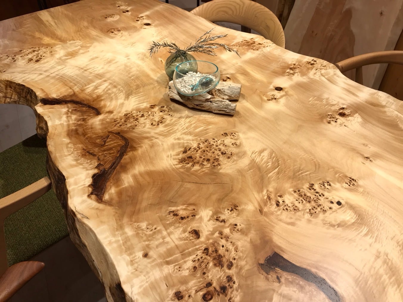 色味は栃のような白さもありながら淡褐色も含まれており、そこに瘤が現れるので心を引きつけられるお客様も多いです。