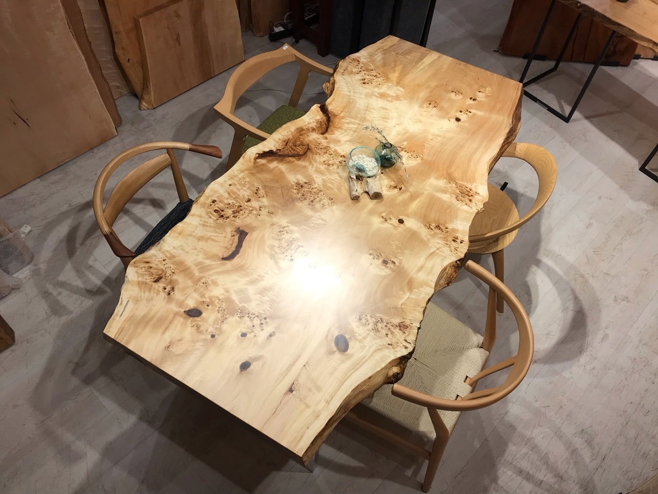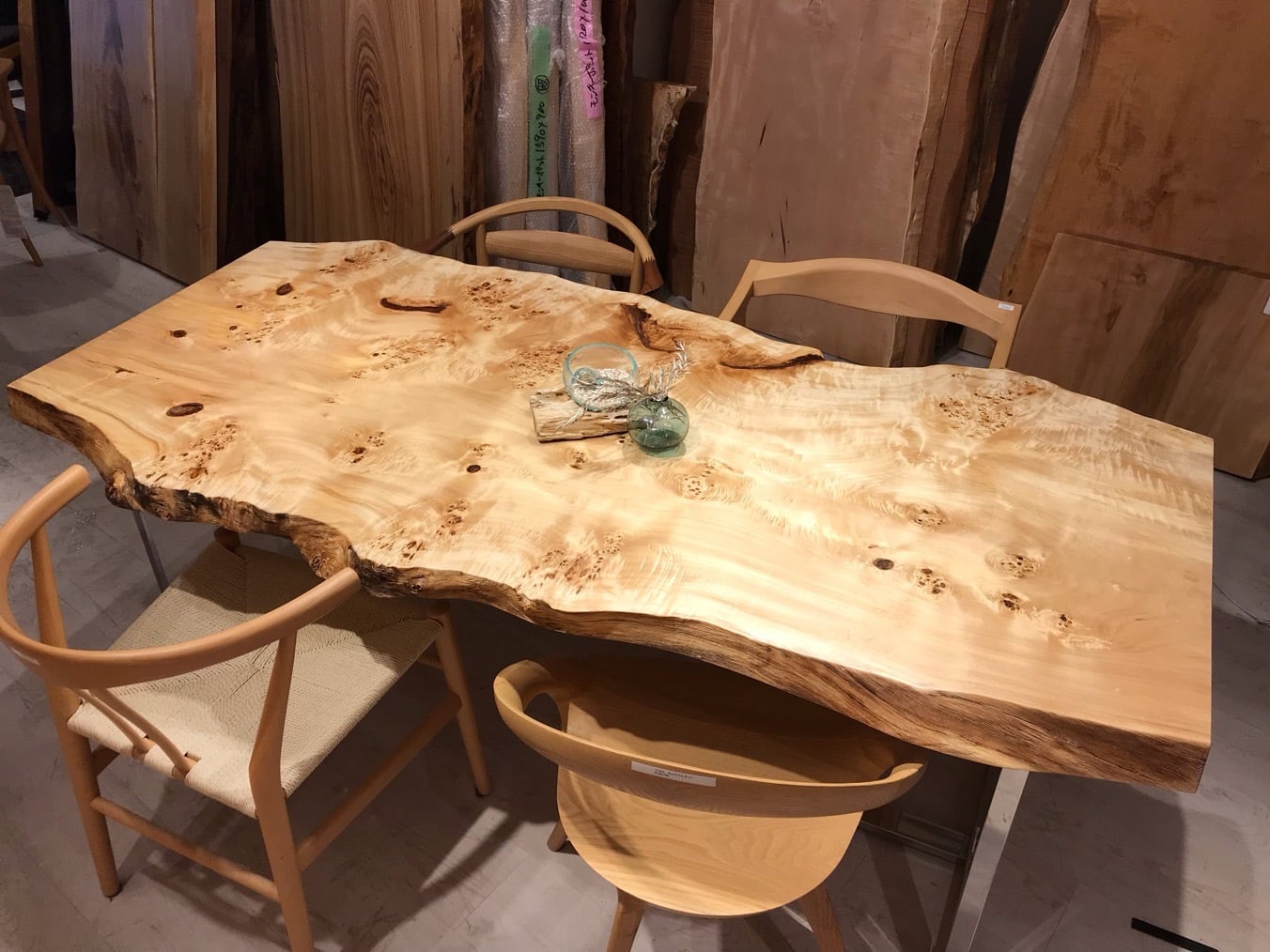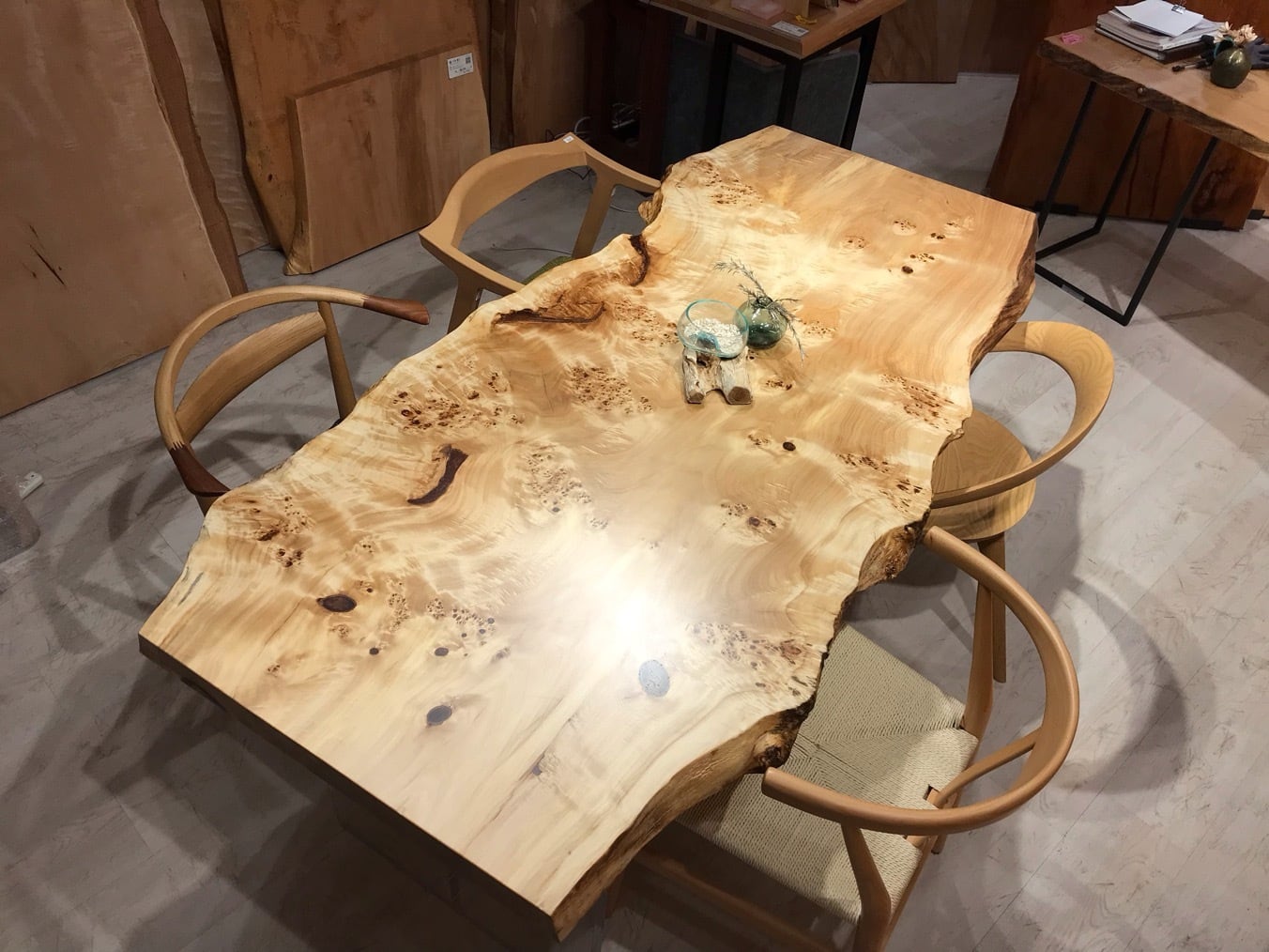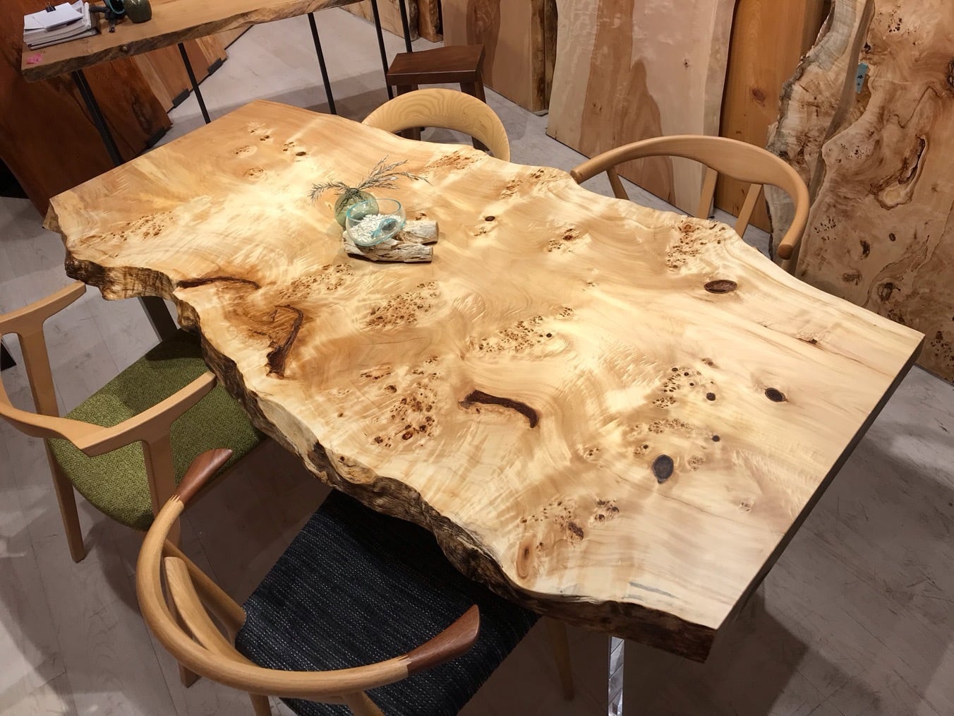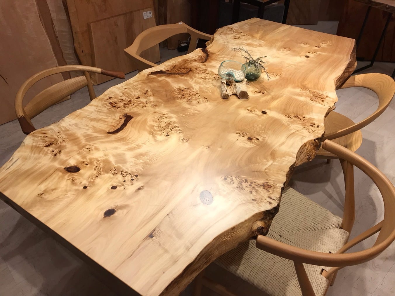 色味は栃のような白さもありながら淡褐色も含まれており、そこに瘤が現れるので心を引きつけられるお客様も多いです。