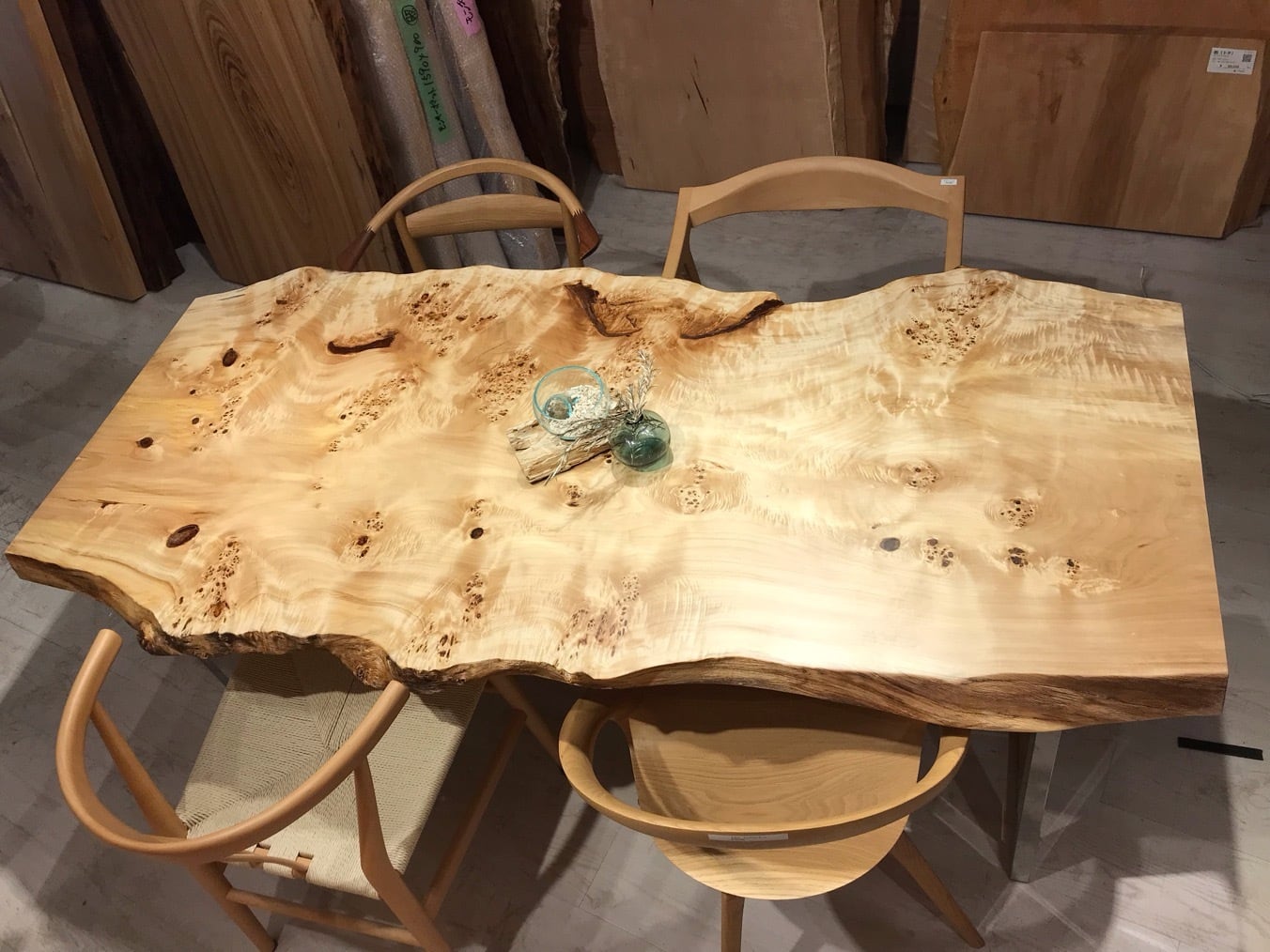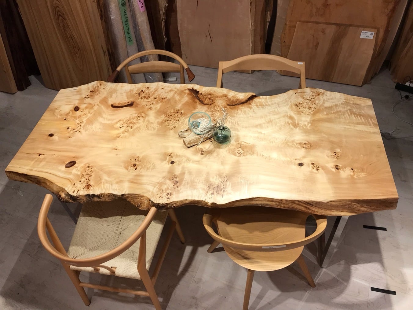 一枚板の実際の大きさ、形をお試し頂けます。