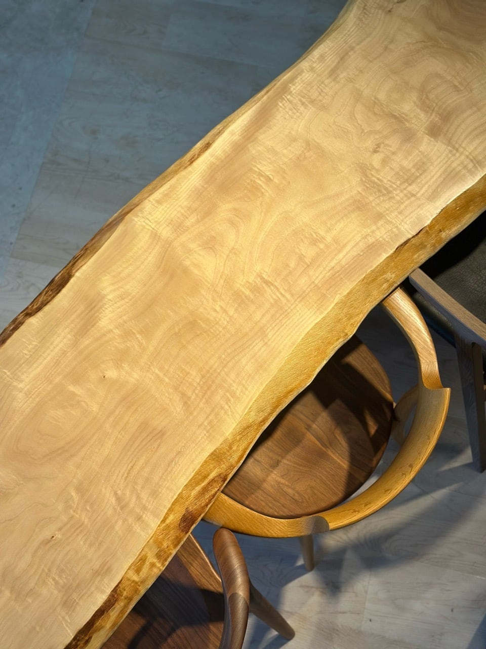 木目は非常にきめ細かく、触れるとしっとりとした滑らかさがあり、ナチュラルながらどこか品のある佇まいが魅力。