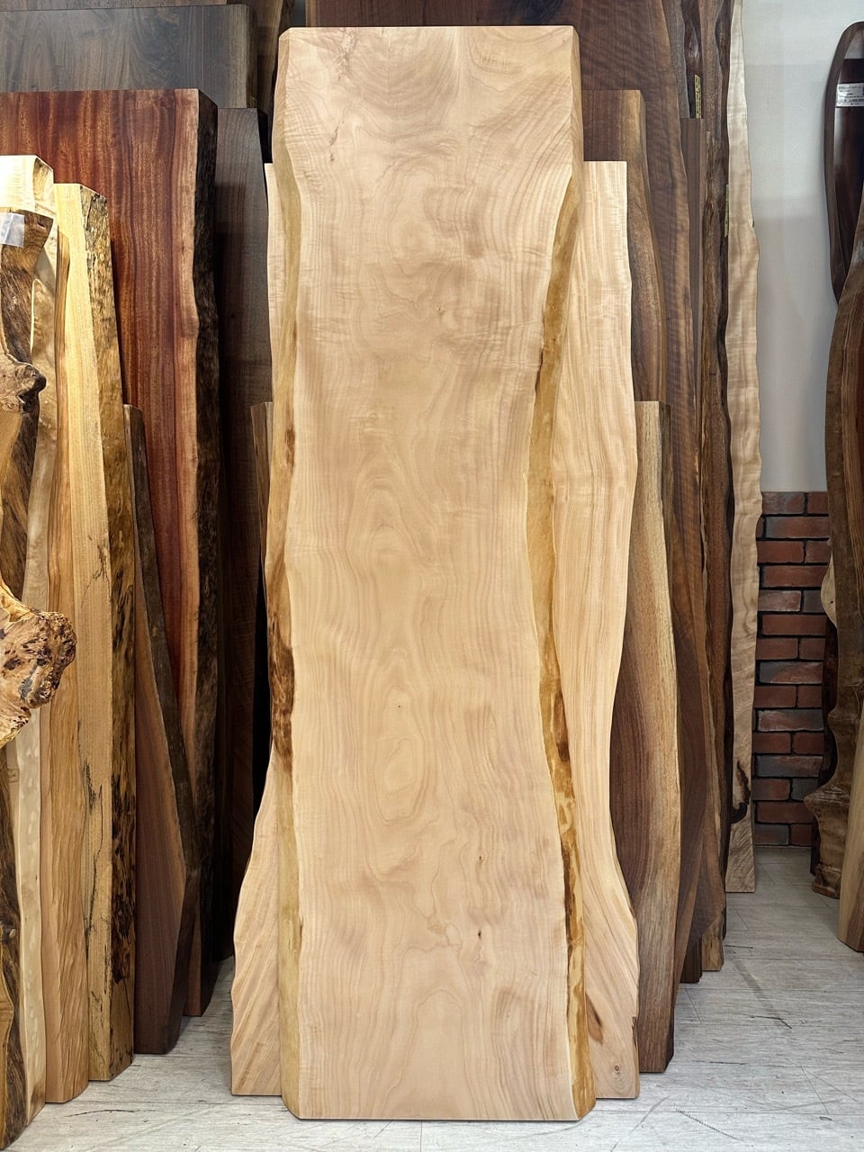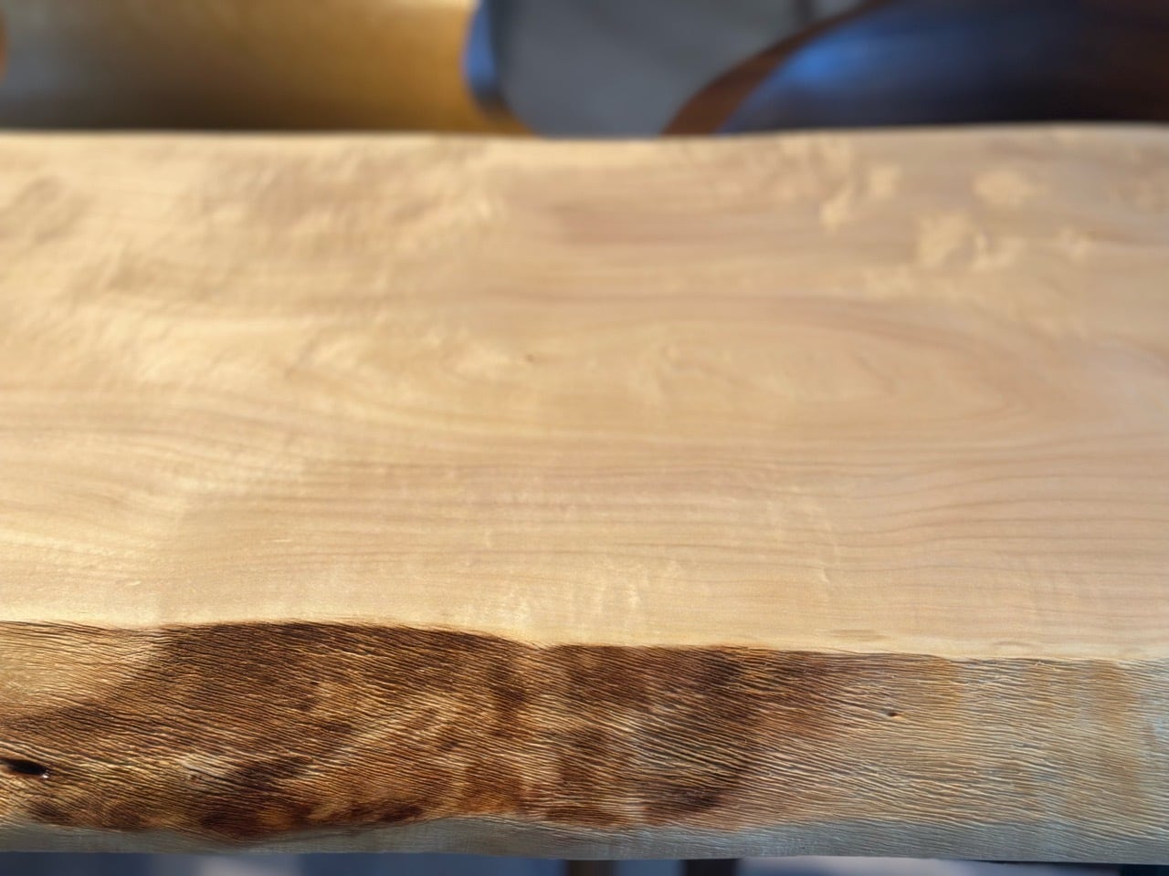 淡い乳白色の木肌が美しい白栃の一枚板。
