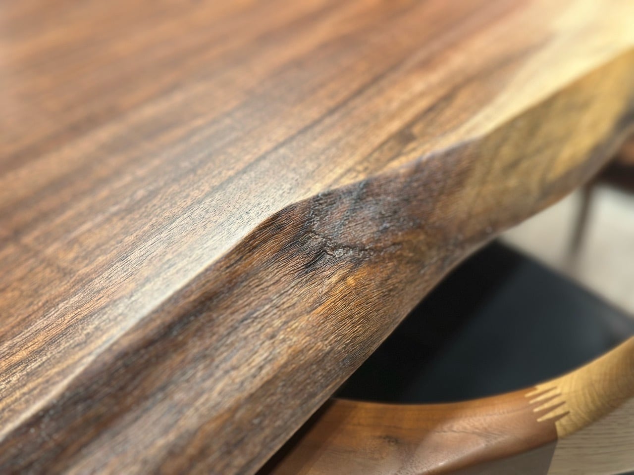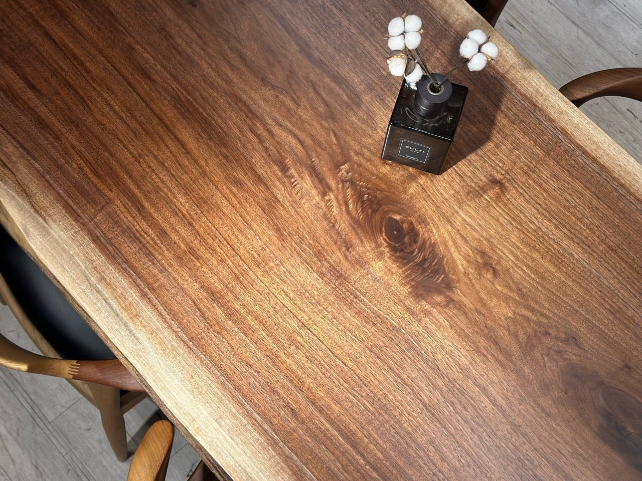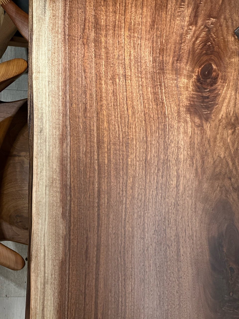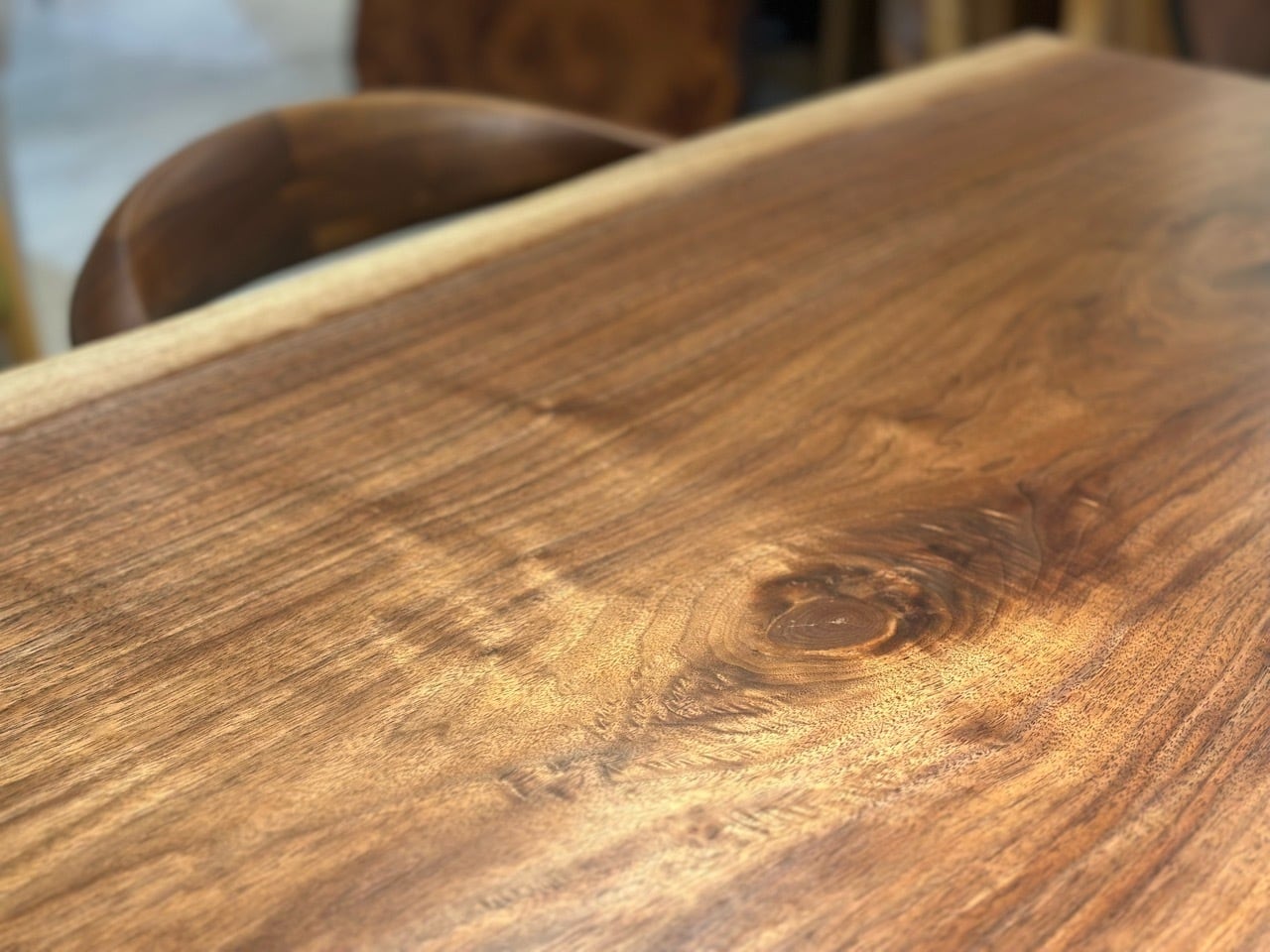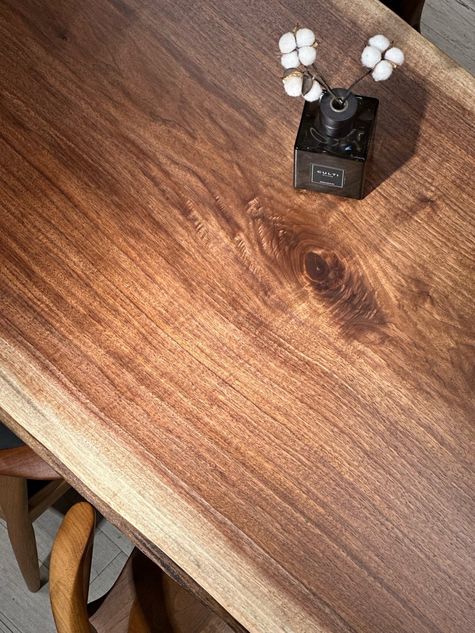 ウォールナットの一枚板は、厳重な乾燥管理が必要ですが、その後の狂いは非常に少なく、高級木材として世界中で愛されています。