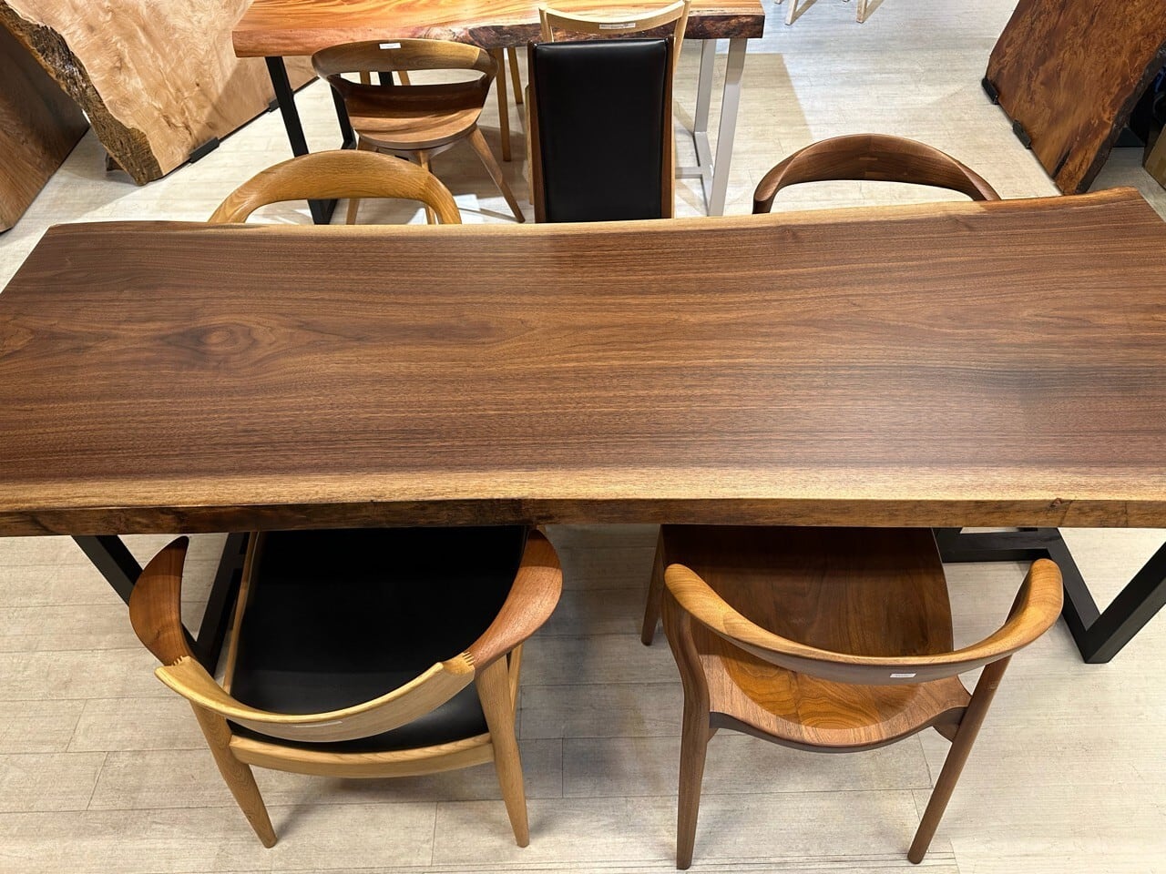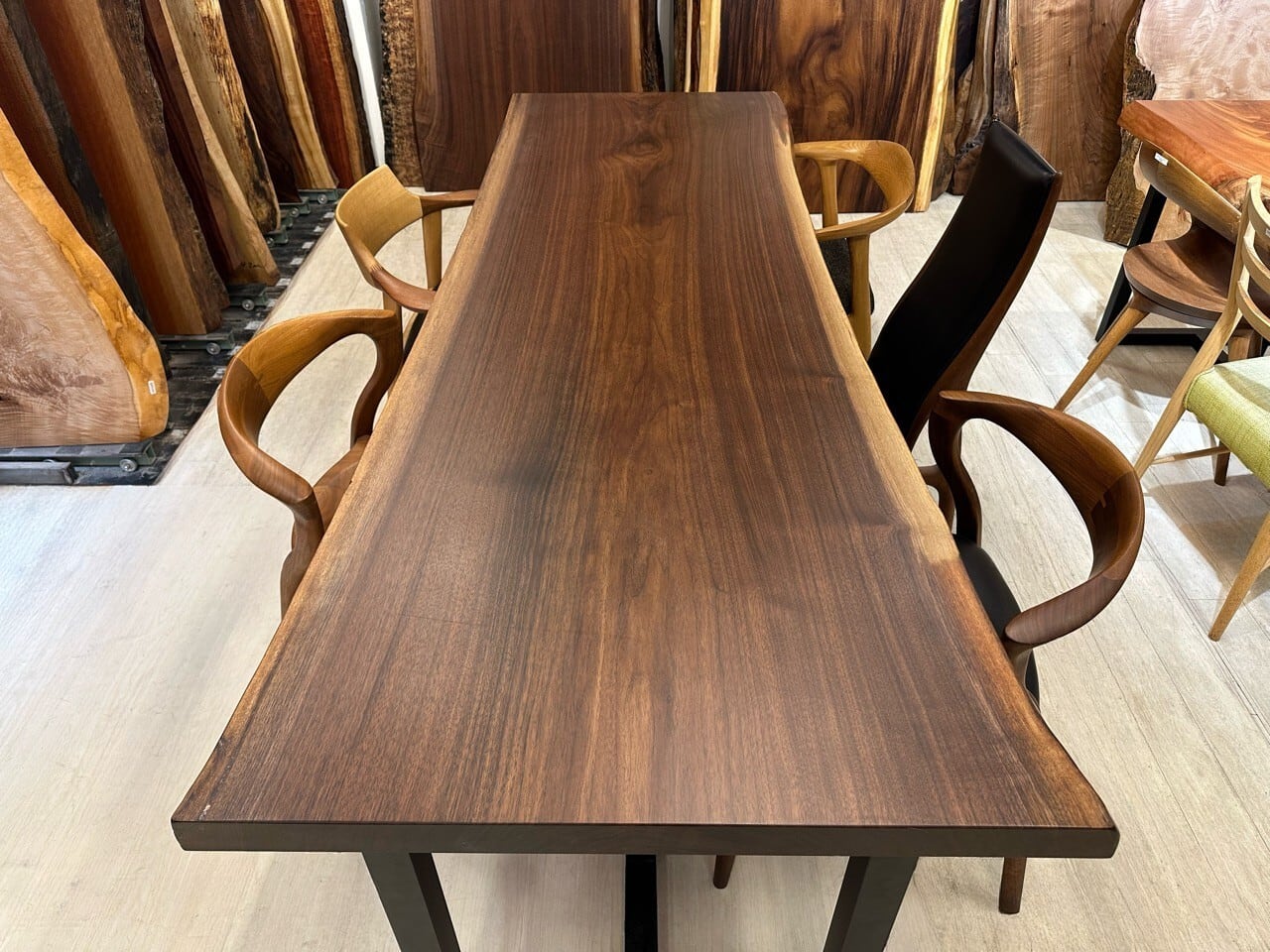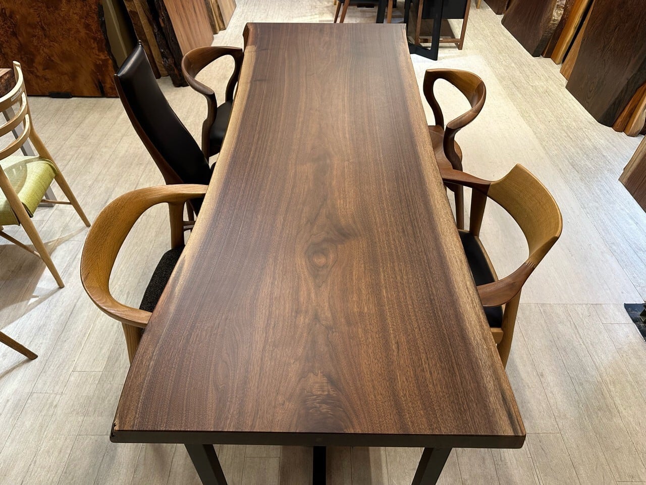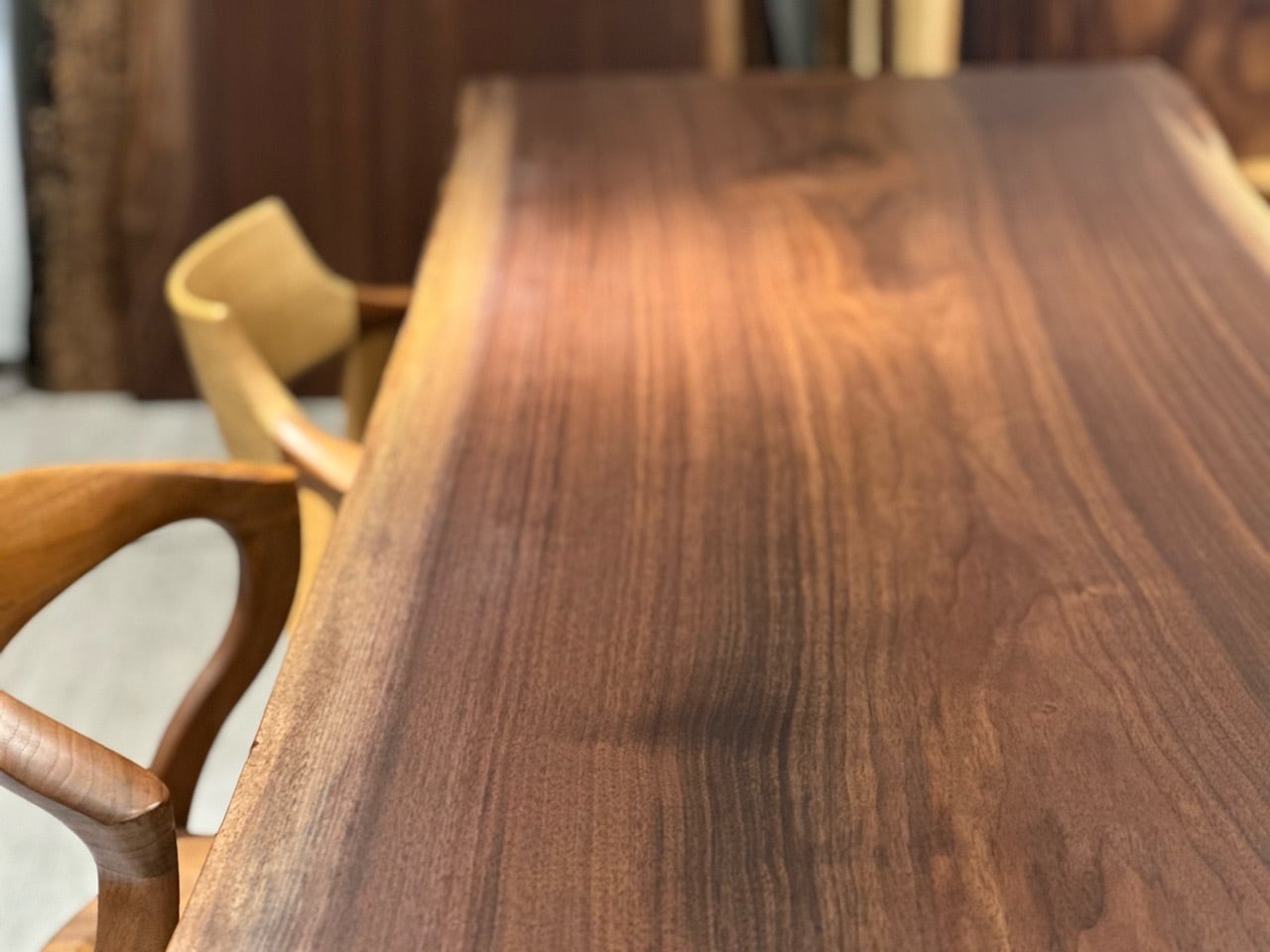 ウォールナットの一枚板は、厳重な乾燥管理が必要ですが、その後の狂いは非常に少なく、高級木材として世界中で愛されています。