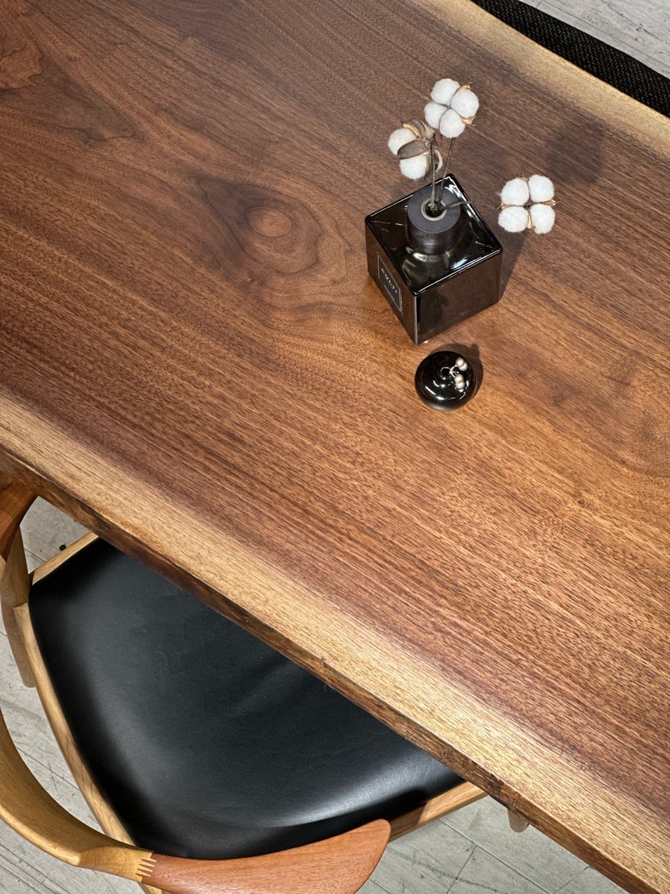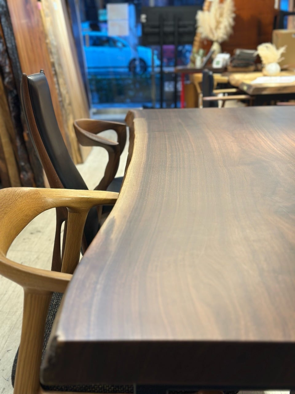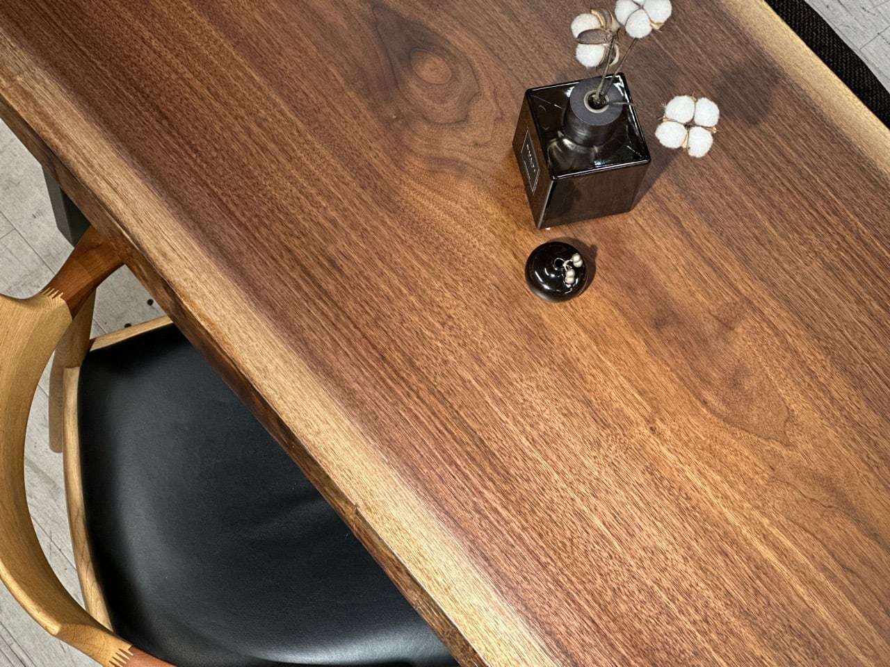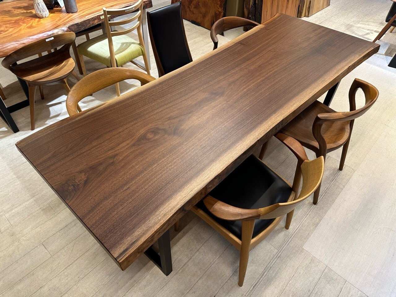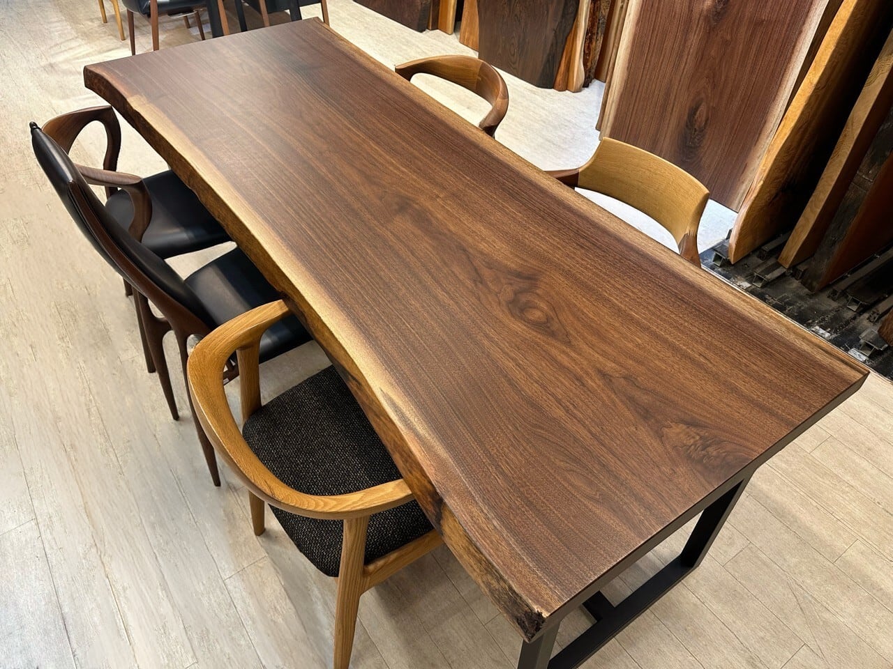 ウォールナットの一枚板は、厳重な乾燥管理が必要ですが、その後の狂いは非常に少なく、高級木材として世界中で愛されています。