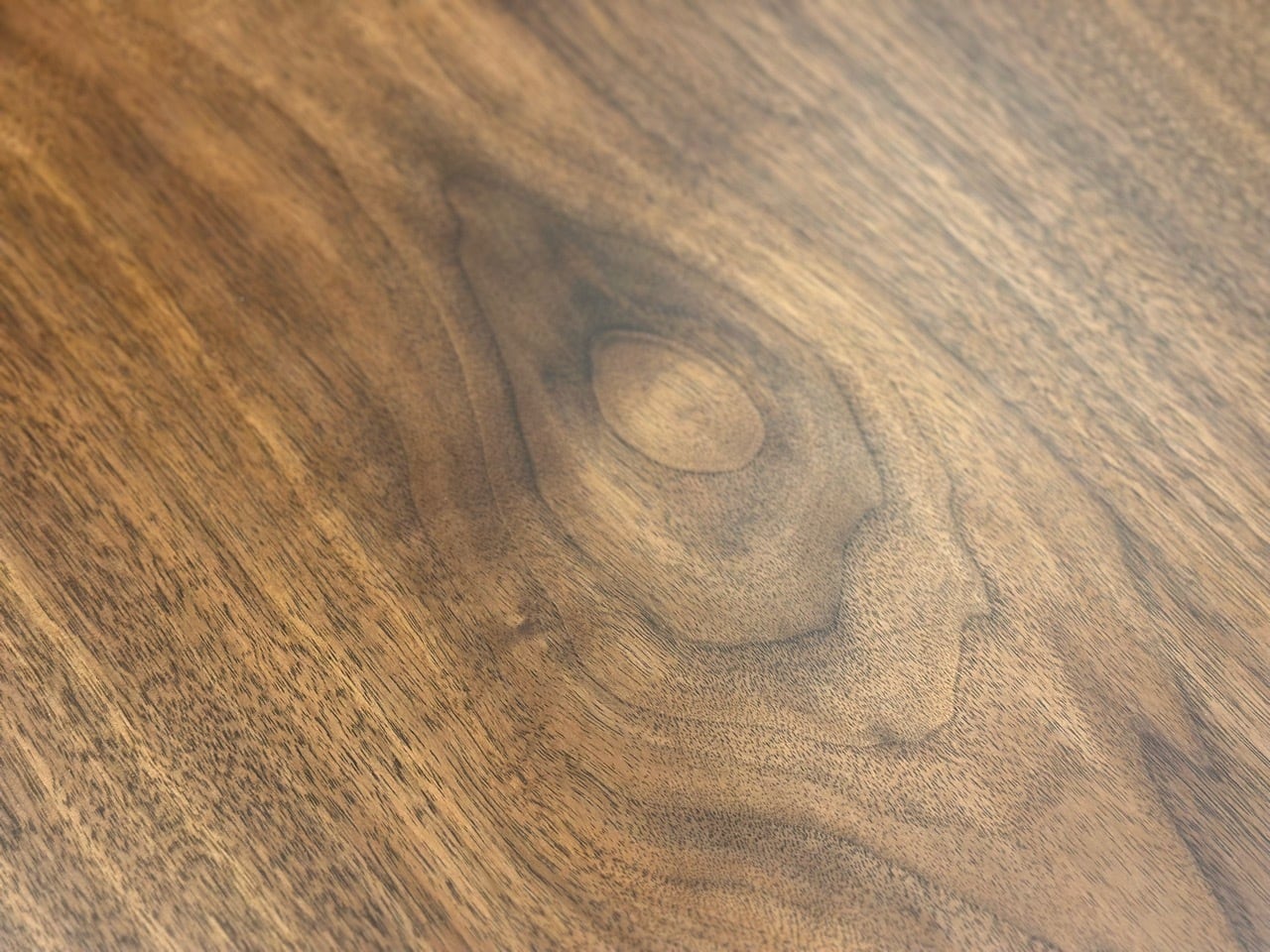 天然無垢の一枚板ウォールナットは、黒みがかった木目が美しく、時を経るにつれてにじみ出てくる味わいが魅力です。ウォールナットは伐採の際にはそれほど黒みがかっていません。味わいのあるウォールナットの褐色は、時を経て強まっていきます。この塗装無しでも美しい褐色は、木材や建材としてのウォールナットの人気を決定づけるものです。その上、つや出し剤もなじみやすいので扱いやすい木材です。