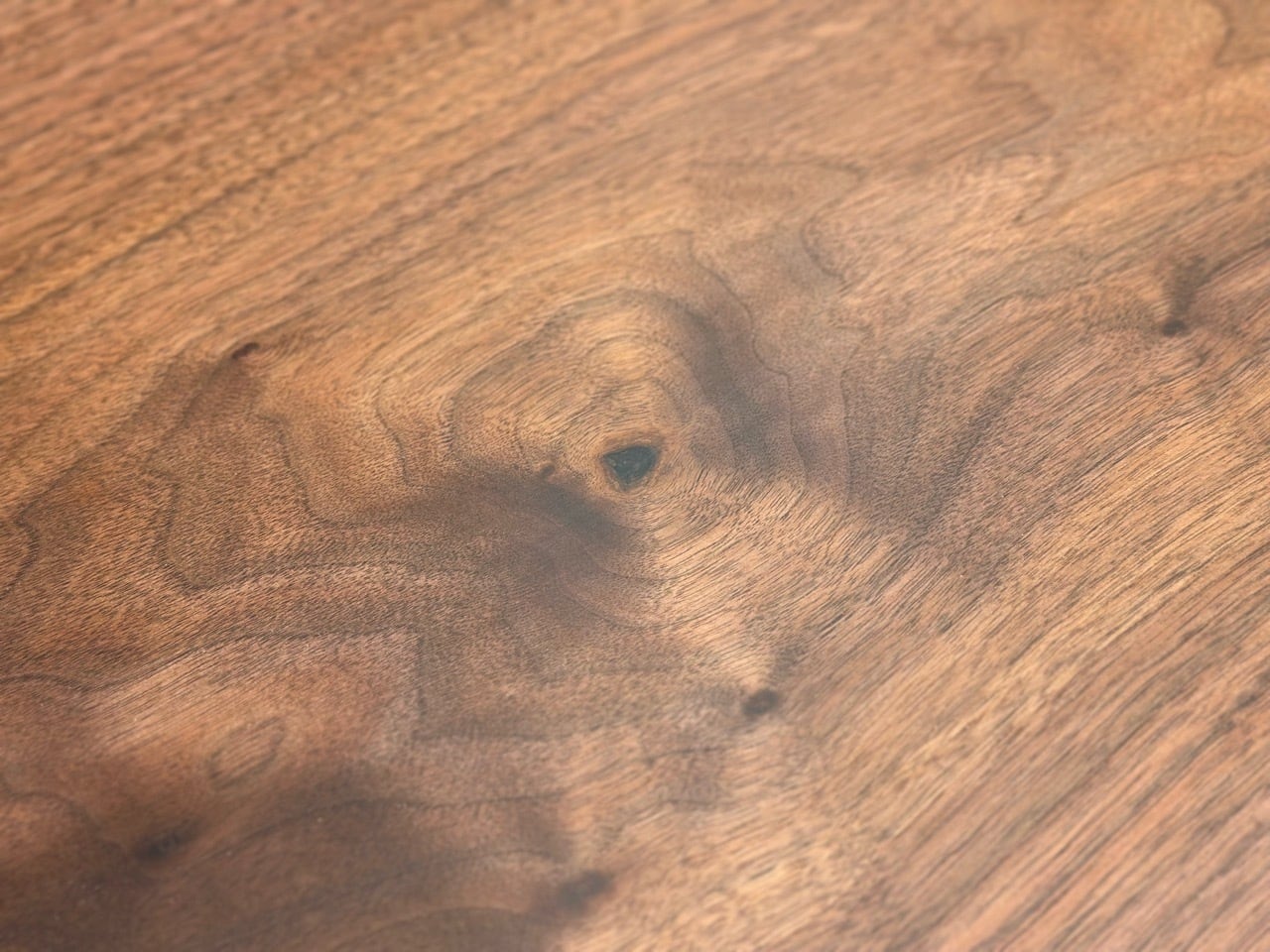 天然無垢の一枚板ウォールナットは、黒みがかった木目が美しく、時を経るにつれてにじみ出てくる味わいが魅力です。ウォールナットは伐採の際にはそれほど黒みがかっていません。味わいのあるウォールナットの褐色は、時を経て強まっていきます。この塗装無しでも美しい褐色は、木材や建材としてのウォールナットの人気を決定づけるものです。その上、つや出し剤もなじみやすいので扱いやすい木材です。