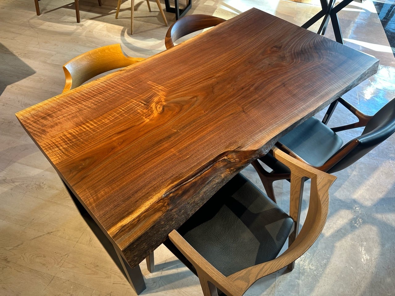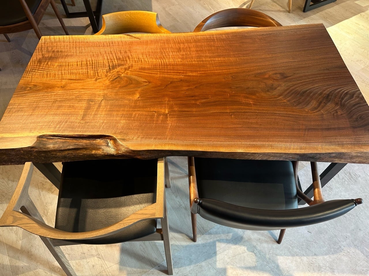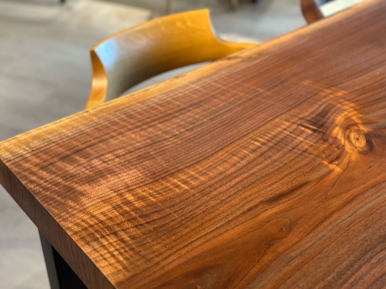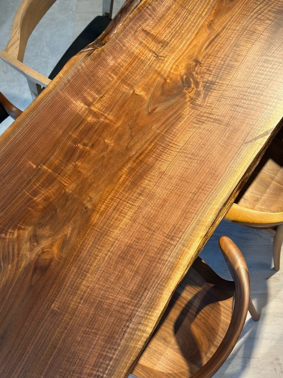 ウォールナットの一枚板は、厳重な乾燥管理が必要ですが、その後の狂いは非常に少なく、高級木材として世界中で愛されています。