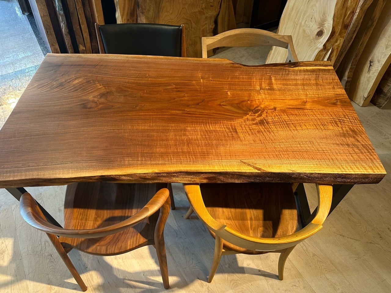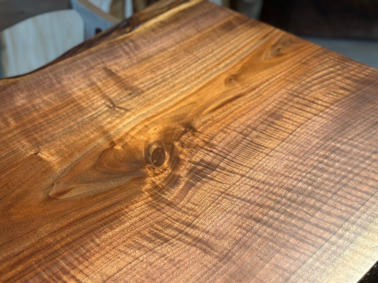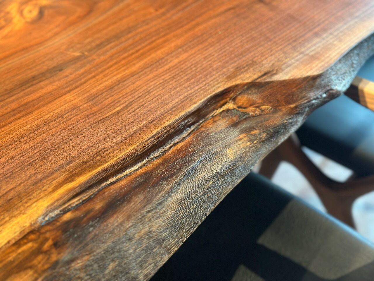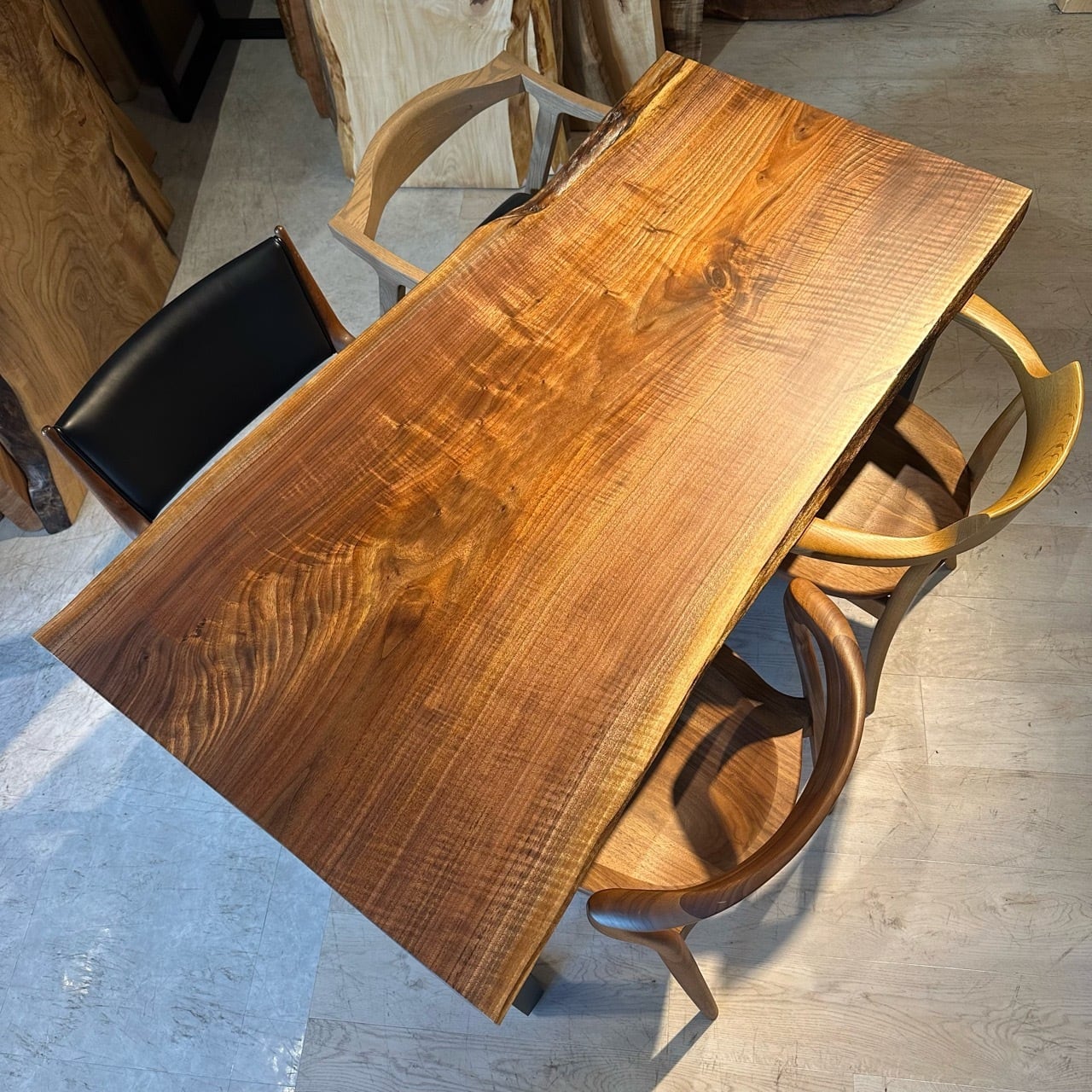 ウォールナットの一枚板は、厳重な乾燥管理が必要ですが、その後の狂いは非常に少なく、高級木材として世界中で愛されています。