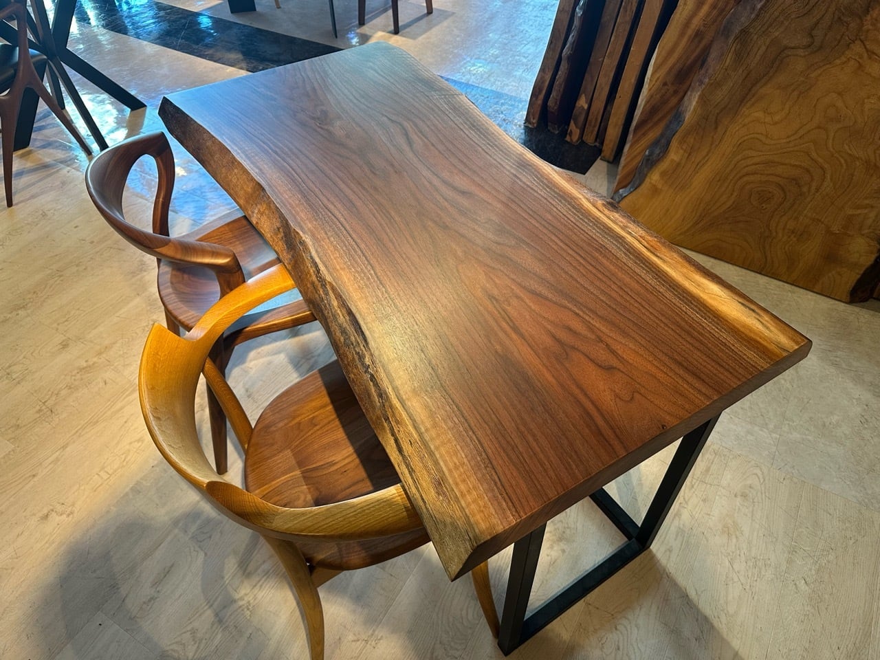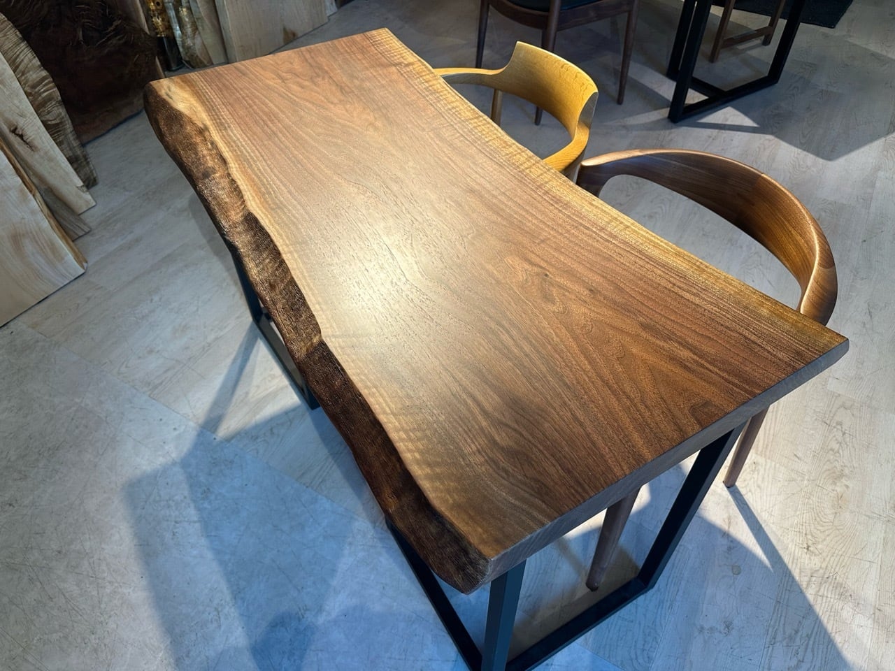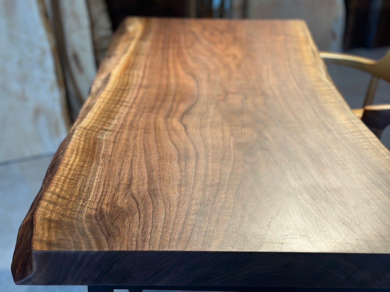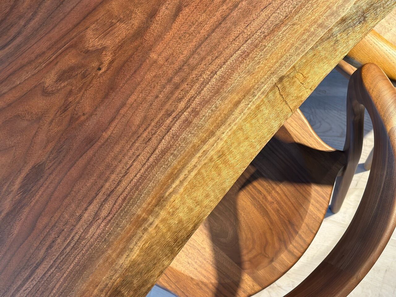 ウォールナットの一枚板は、厳重な乾燥管理が必要ですが、その後の狂いは非常に少なく、高級木材として世界中で愛されています。