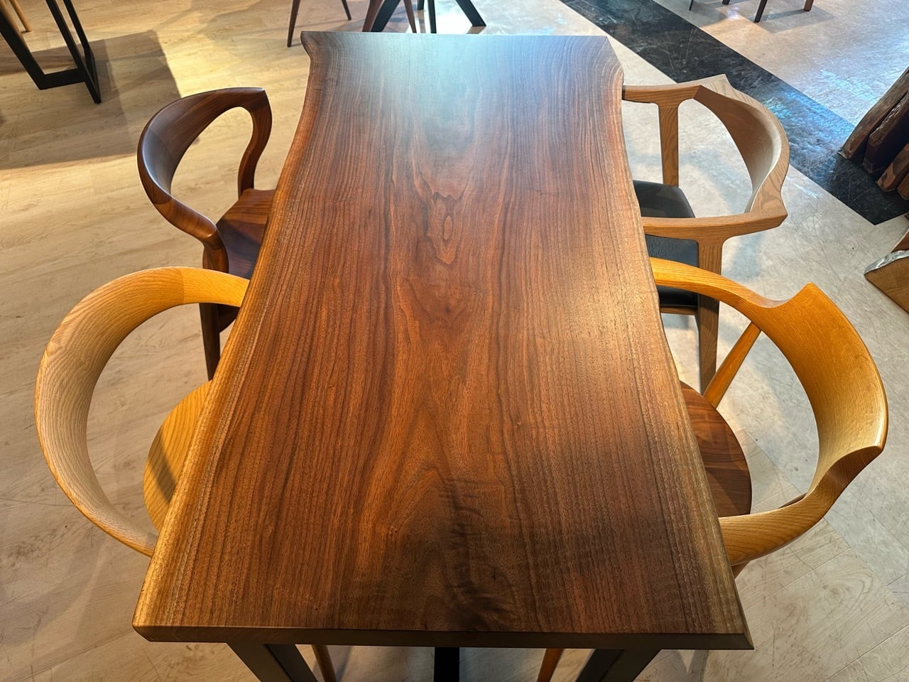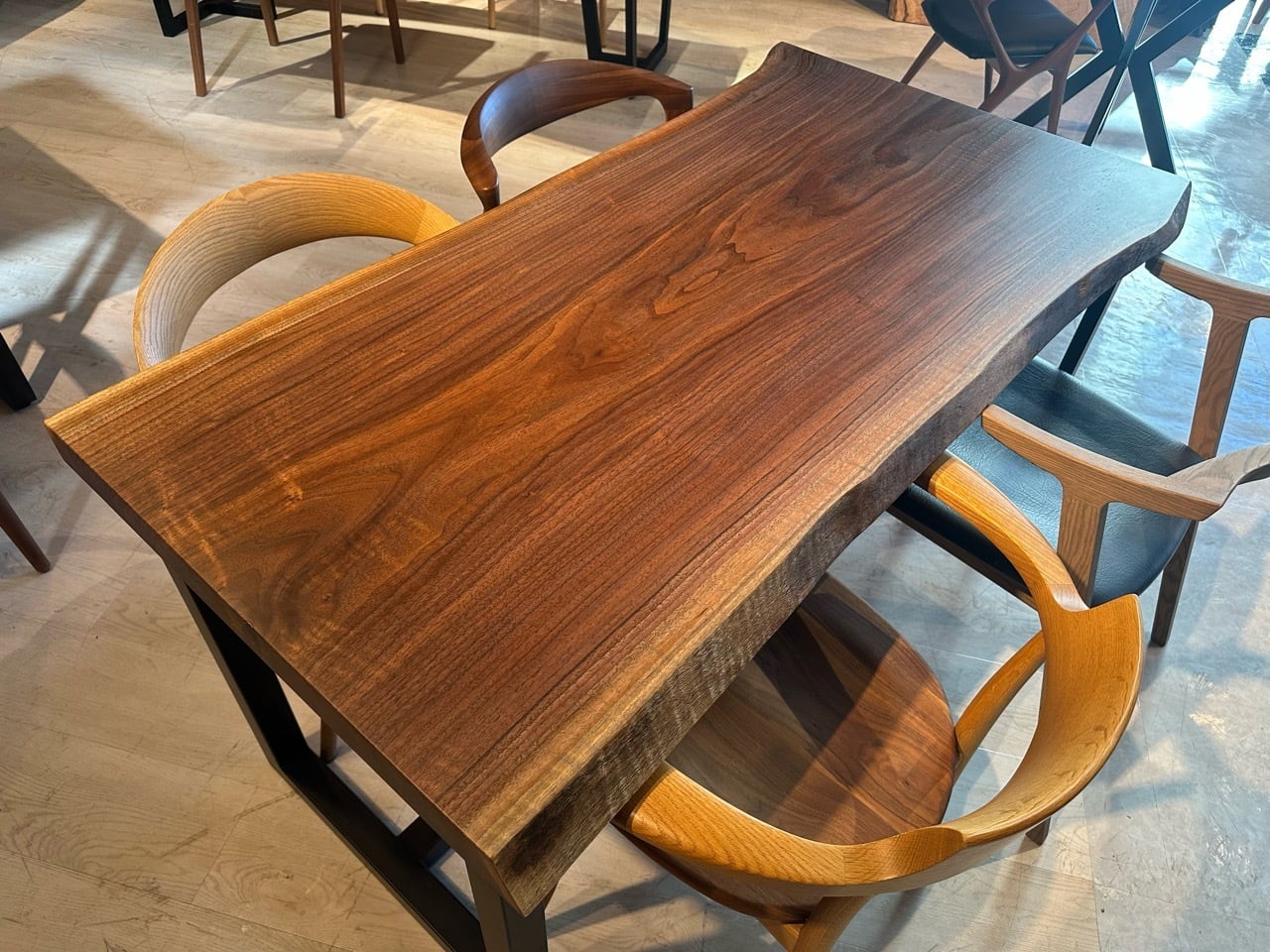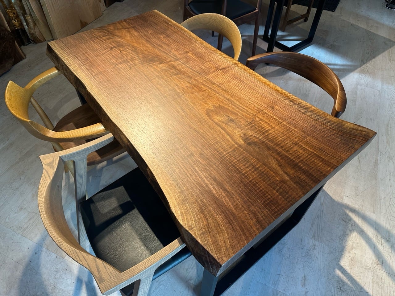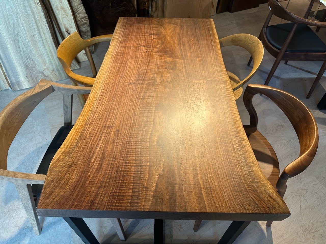 ウォールナットの一枚板は、厳重な乾燥管理が必要ですが、その後の狂いは非常に少なく、高級木材として世界中で愛されています。