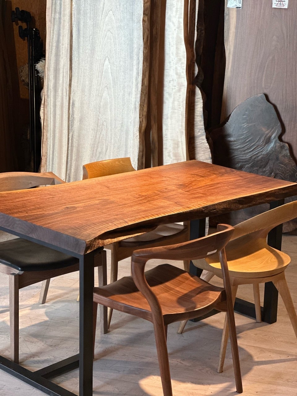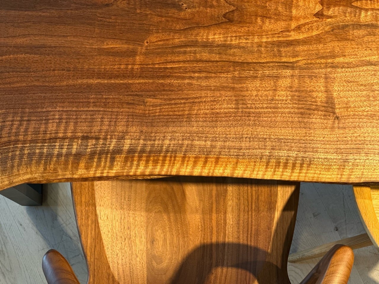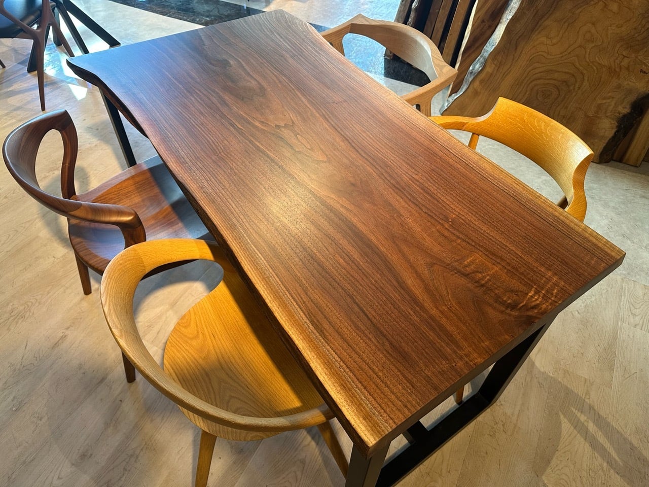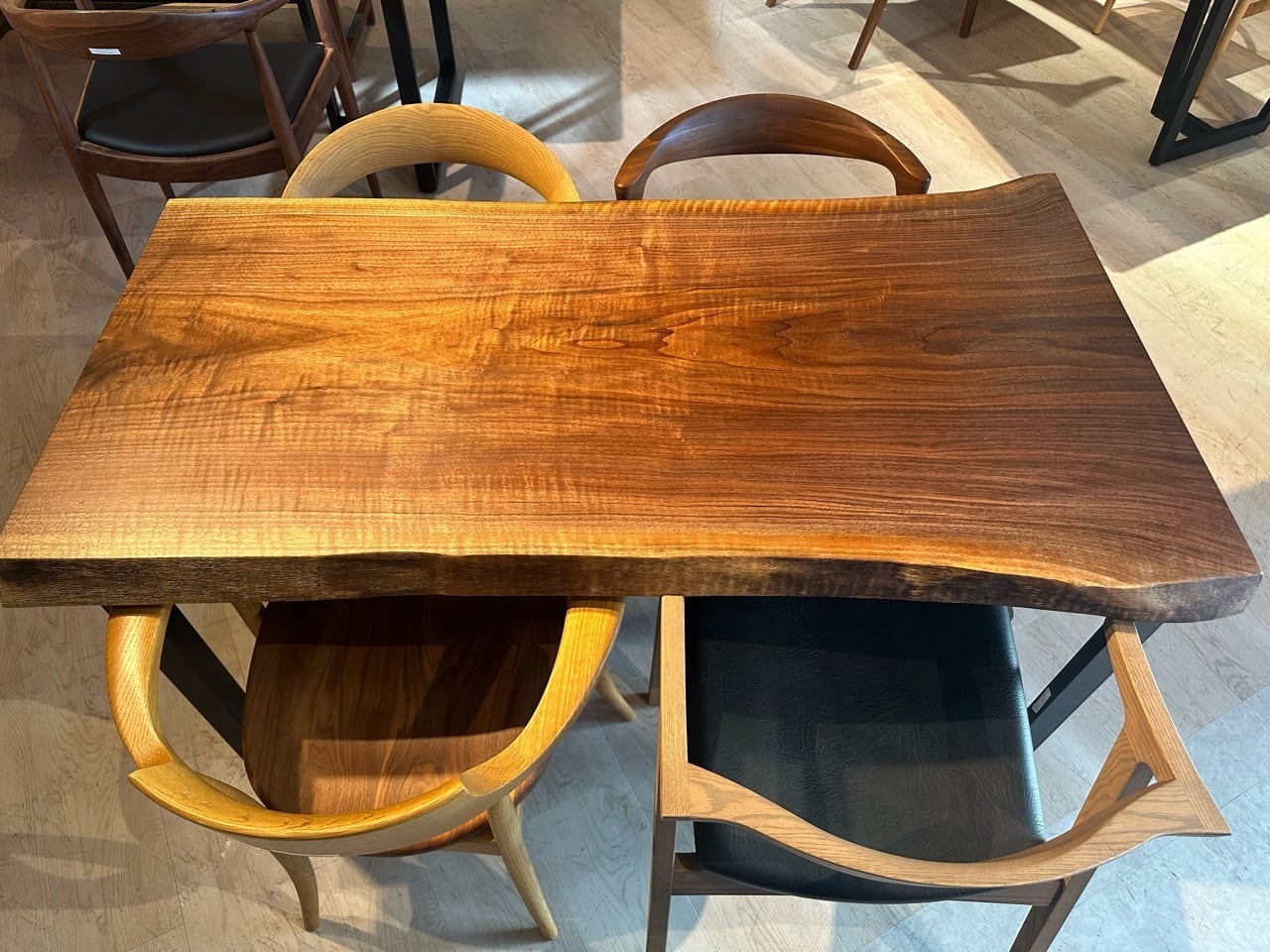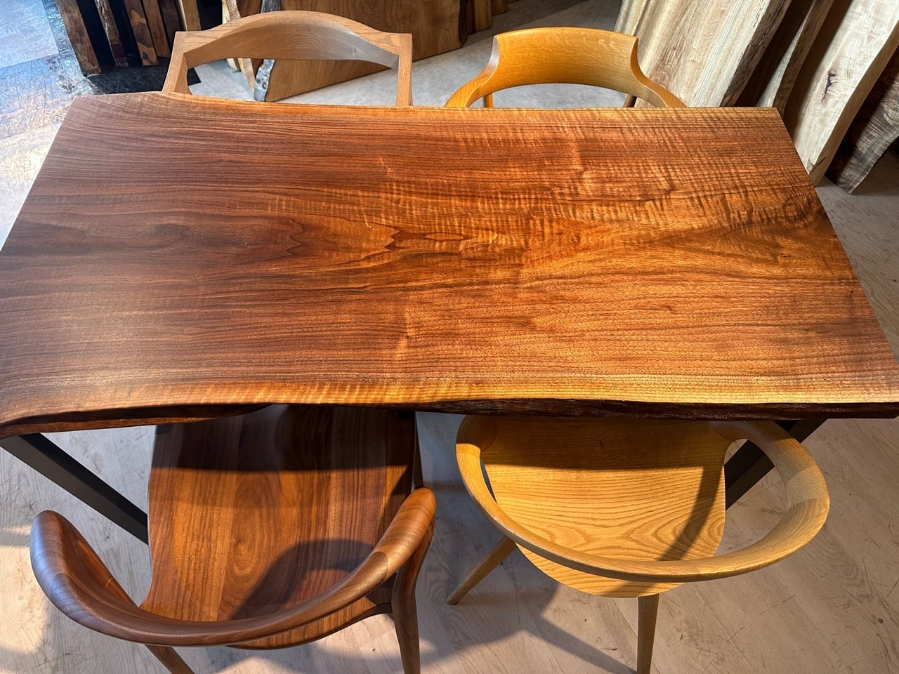 ウォールナットの一枚板は、厳重な乾燥管理が必要ですが、その後の狂いは非常に少なく、高級木材として世界中で愛されています。