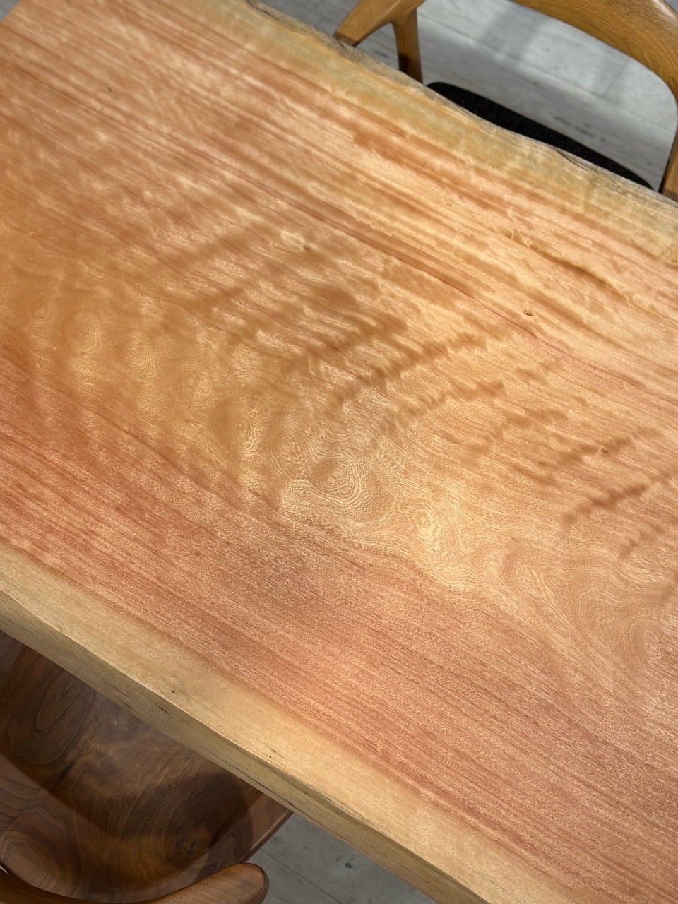 中間色で選び易いという理由と、杢が出やすい樹種で美しい材料が多い事から近年大変に人気の樹種です。