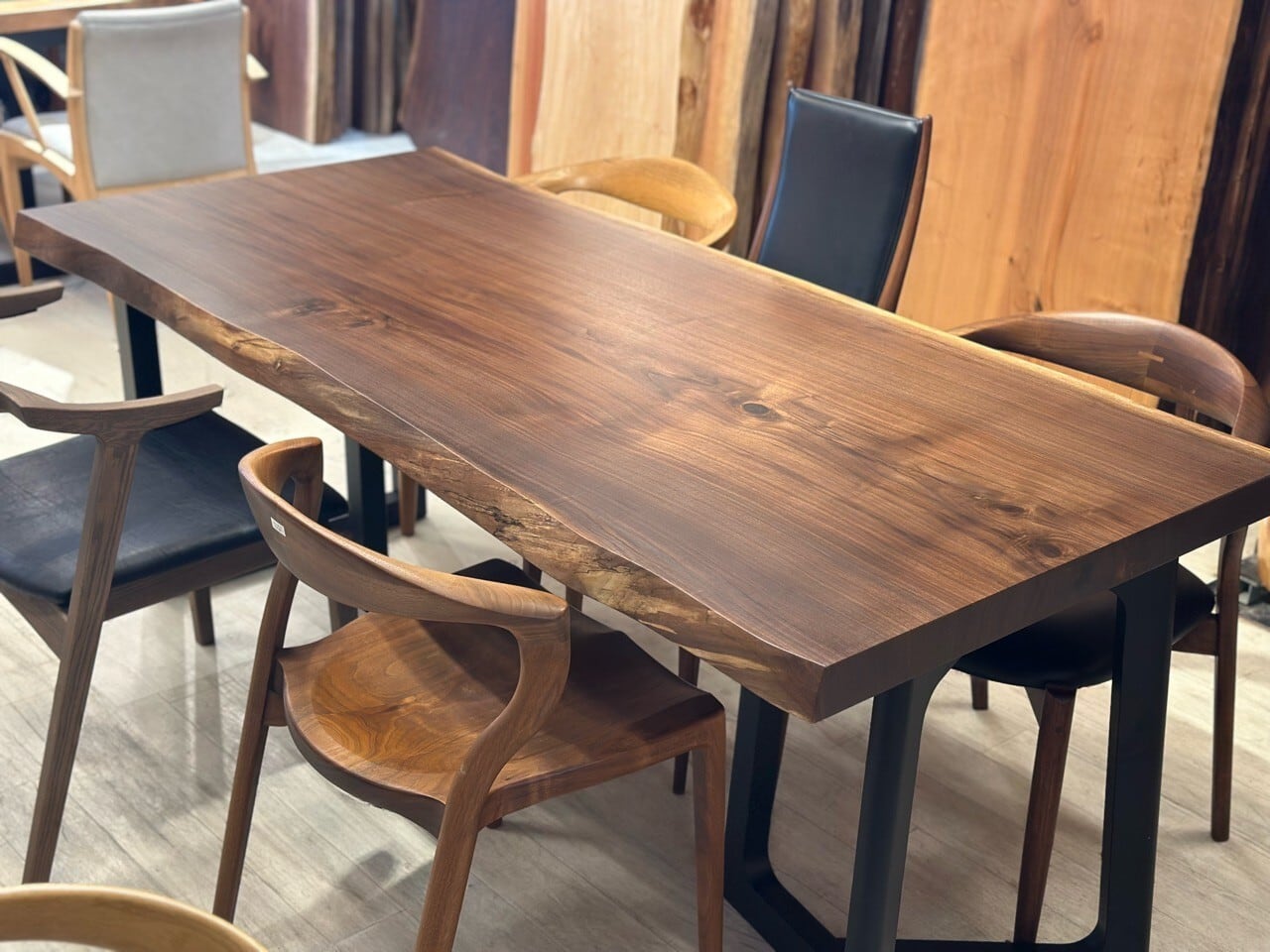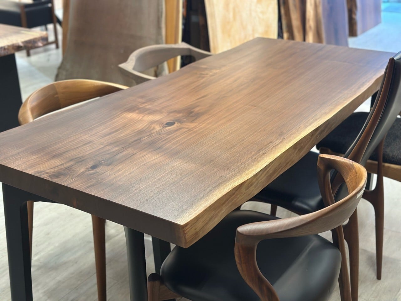 ウォールナットの一枚板は、厳重な乾燥管理が必要ですが、その後の狂いは非常に少なく、高級木材として世界中で愛されています。