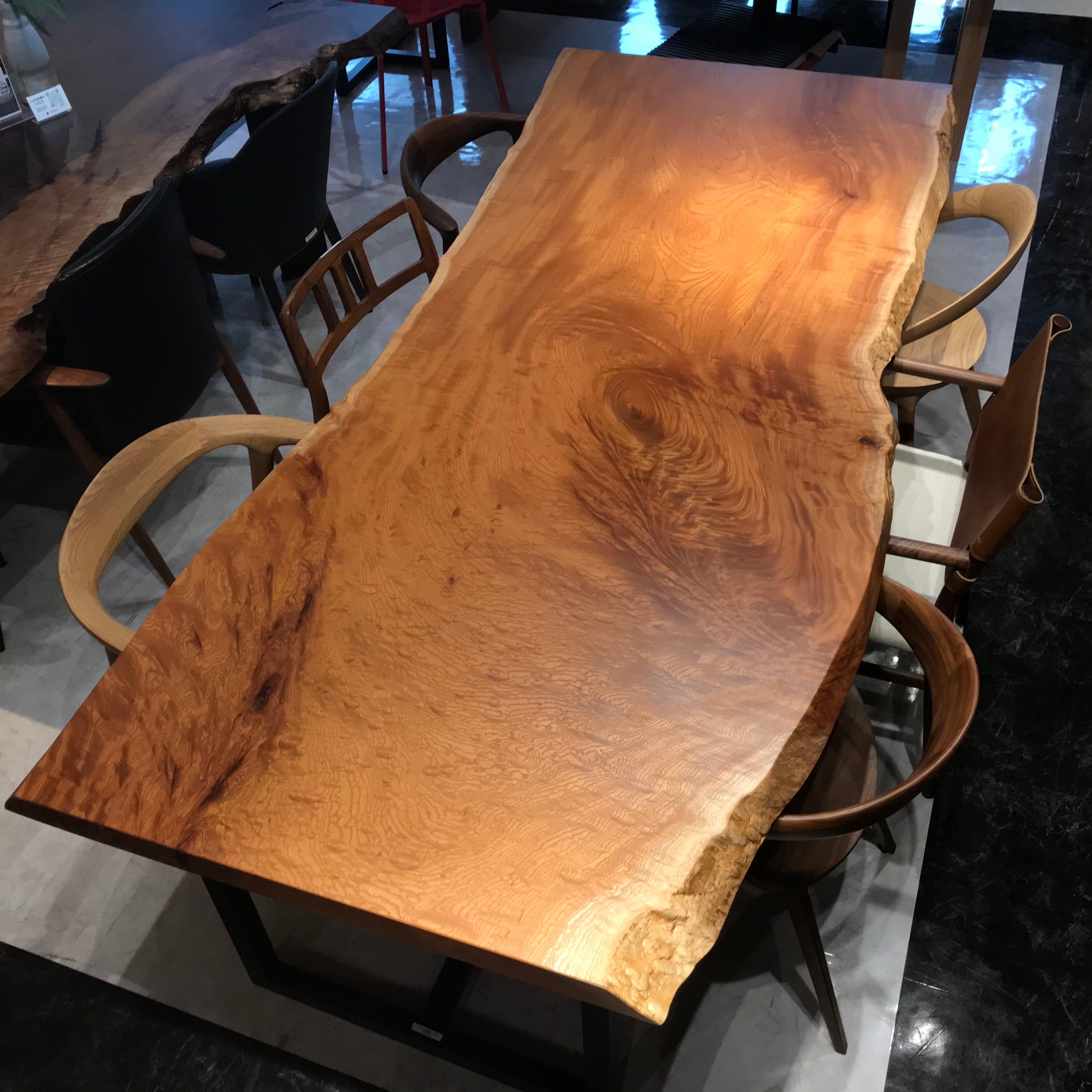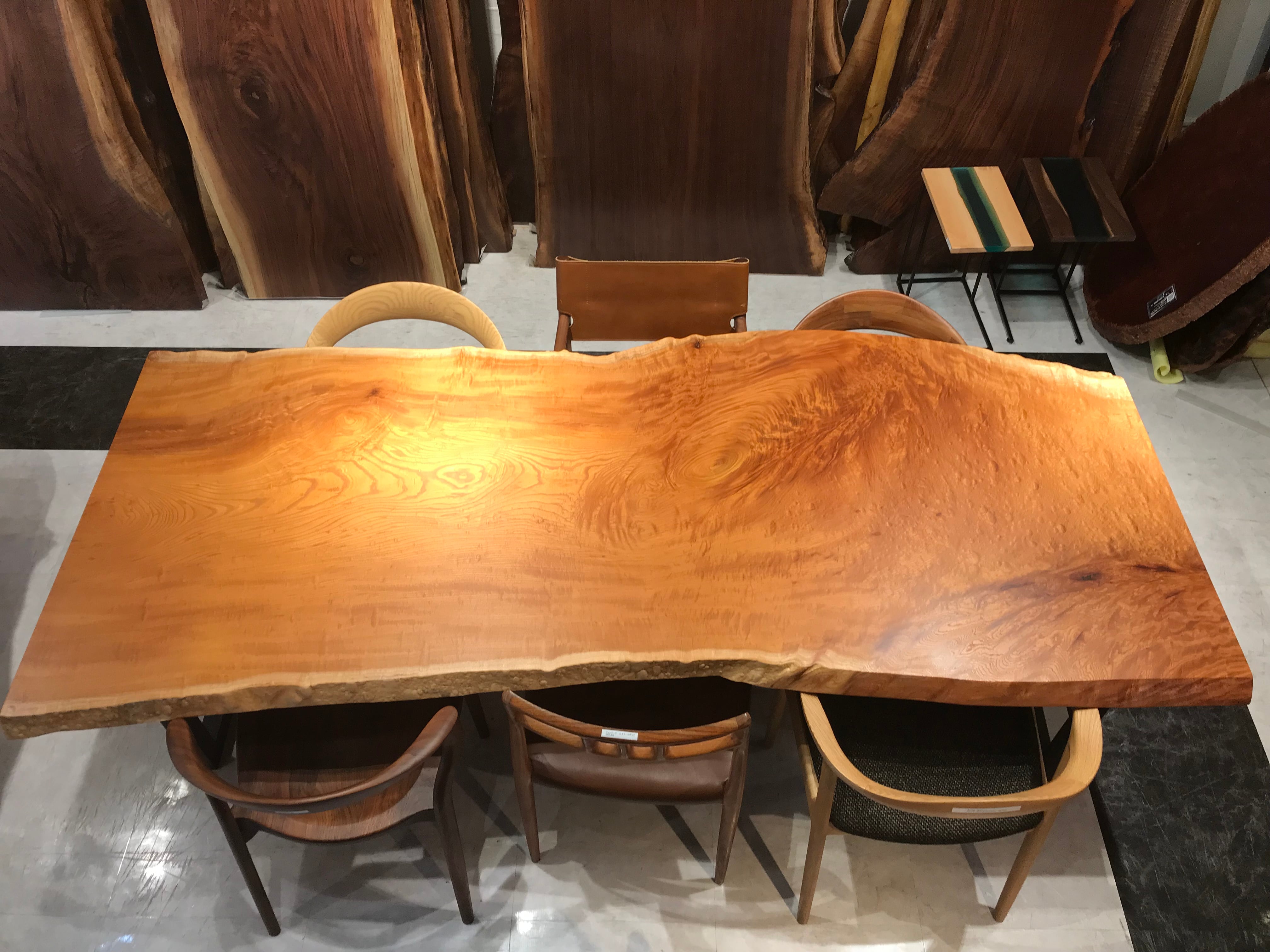【玉杢】欅(ケヤキ)_2300×850-890-990×53_横浜元町店_テーブル天板/一枚板 262713