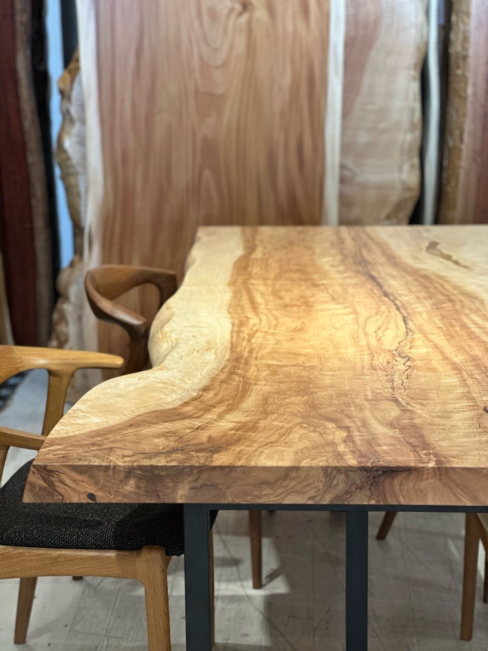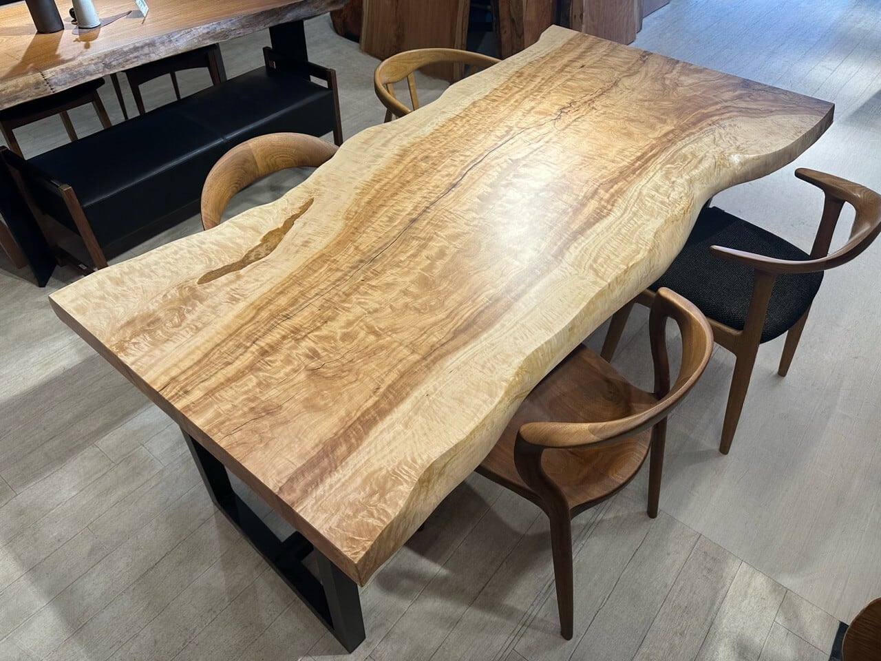 光を受けることで浮かび上がる立体的な杢が、この素材ならではの魅力を際立たせています。