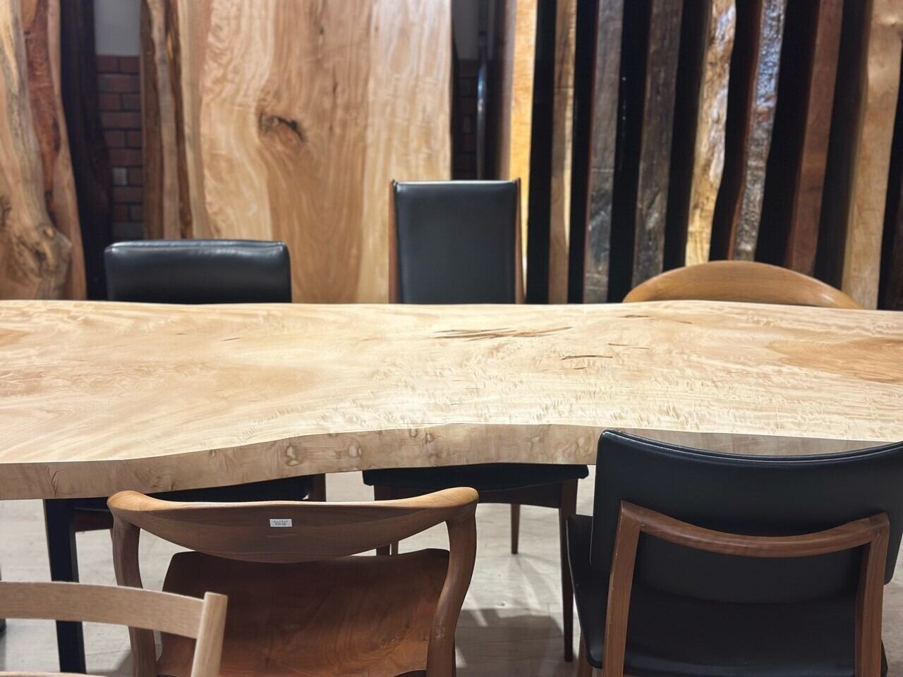 柔らかな乳白色をベースに、流れるような木目と豊かな杢が広がる栃の一枚板。