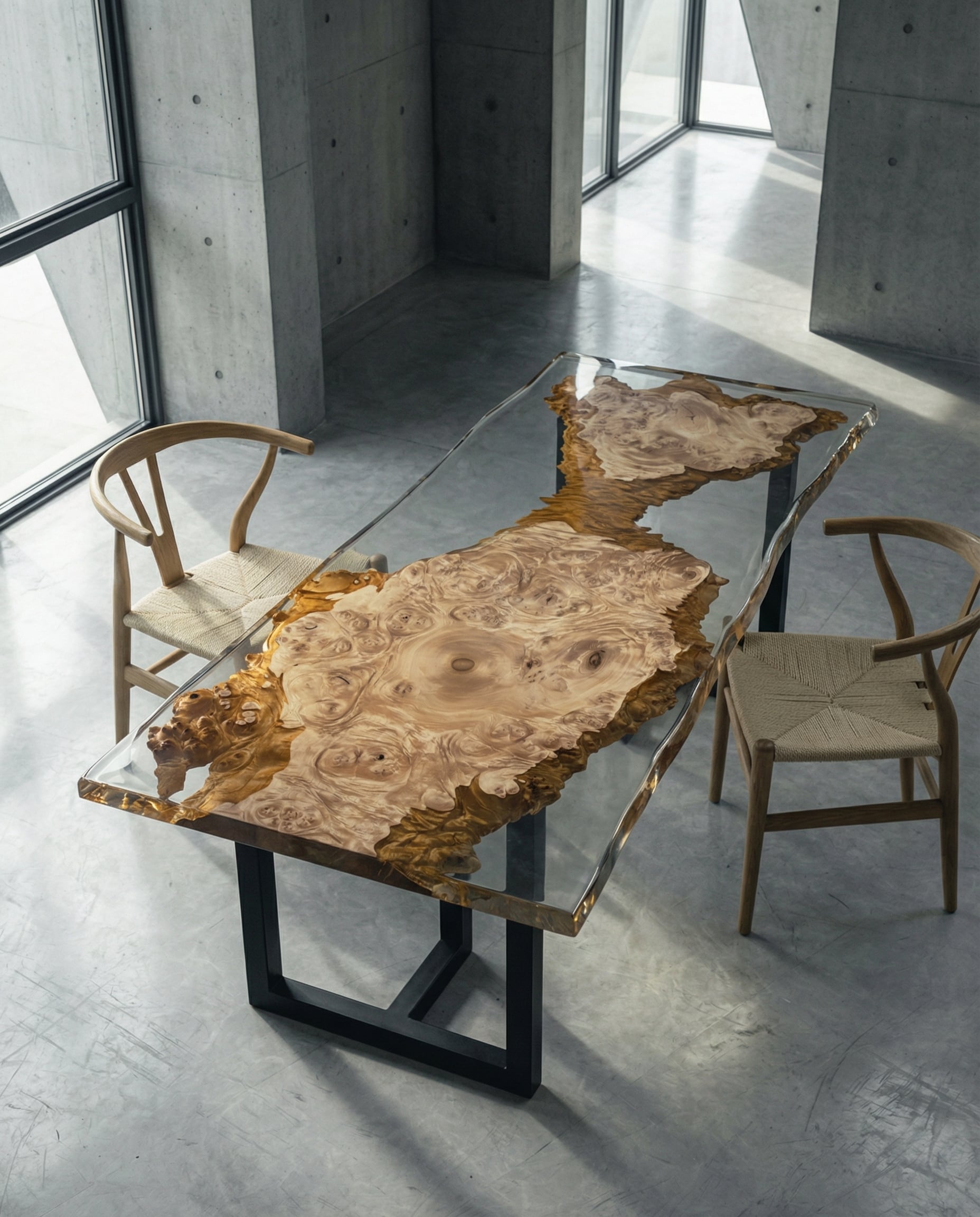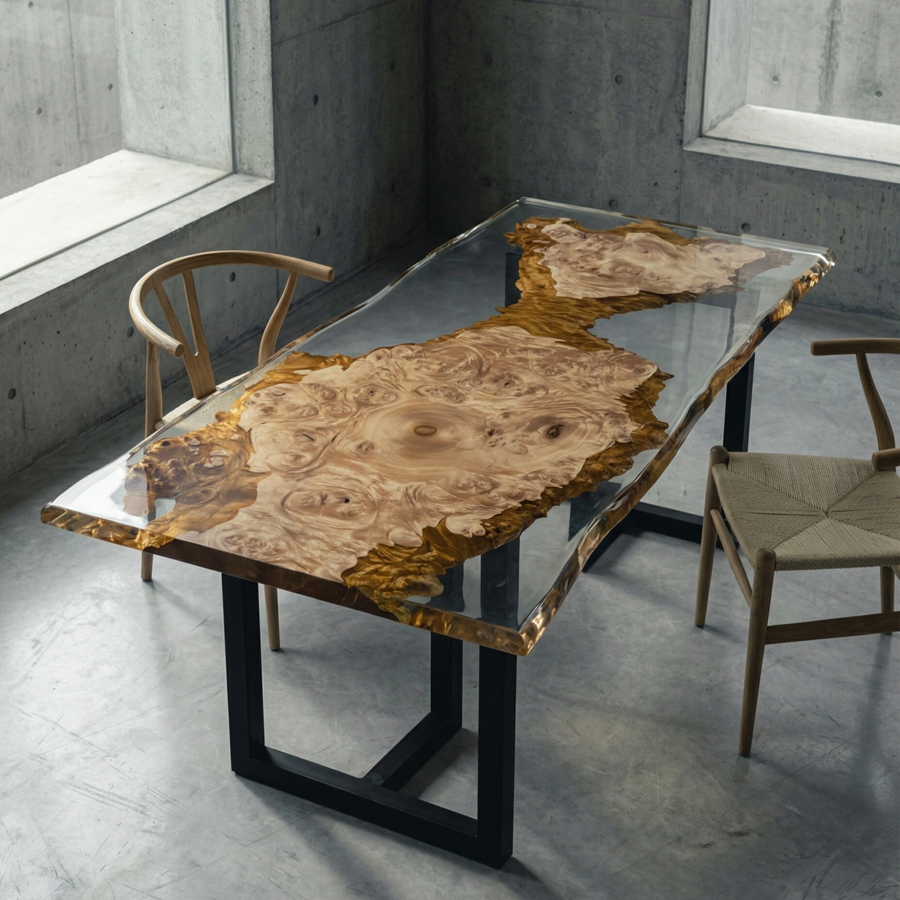 プレミアムモデルのトチ 瘤のレジンテーブル。