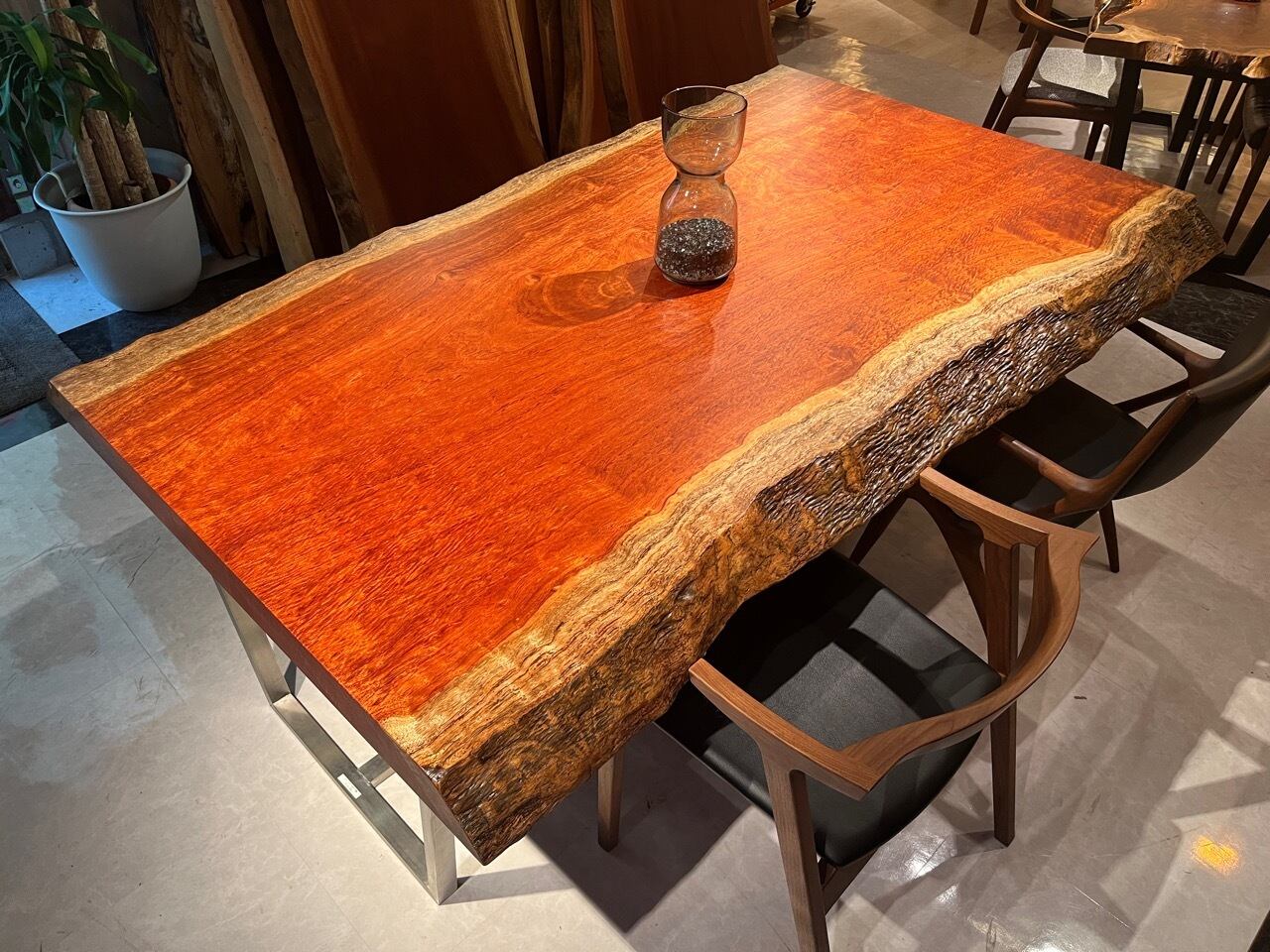 ≪無垢一枚板・赤褐色に光り輝くブビンガ・美しく派手な杢目が魅力≫