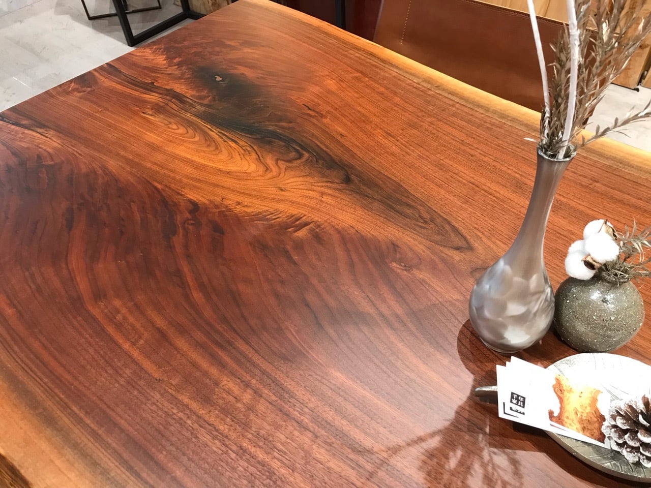 ウォールナットの一枚板は、厳重な乾燥管理が必要ですが、その後の狂いは非常に少なく、高級木材として世界中で愛されています。