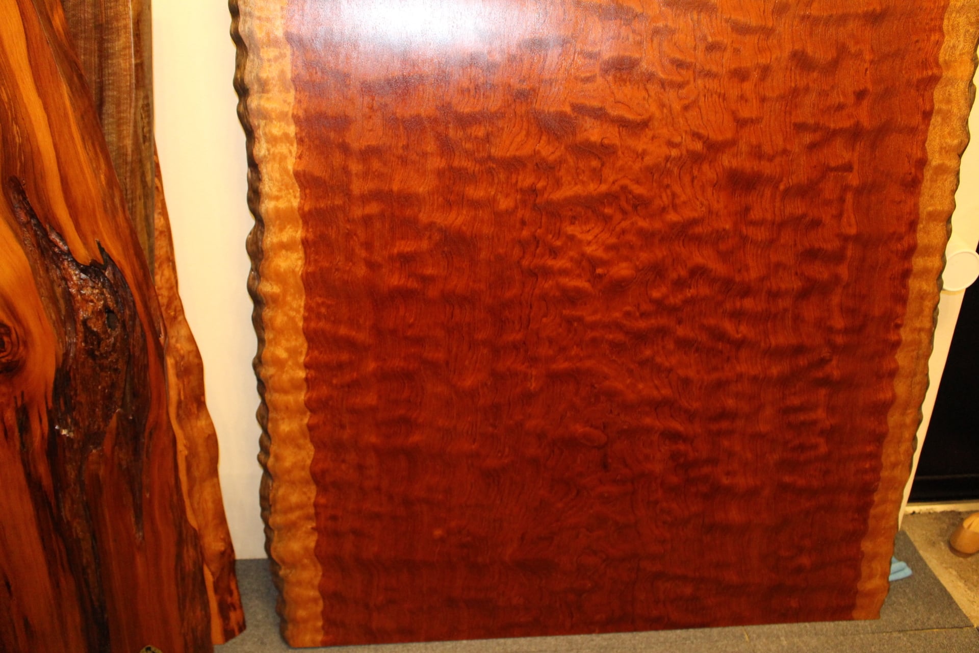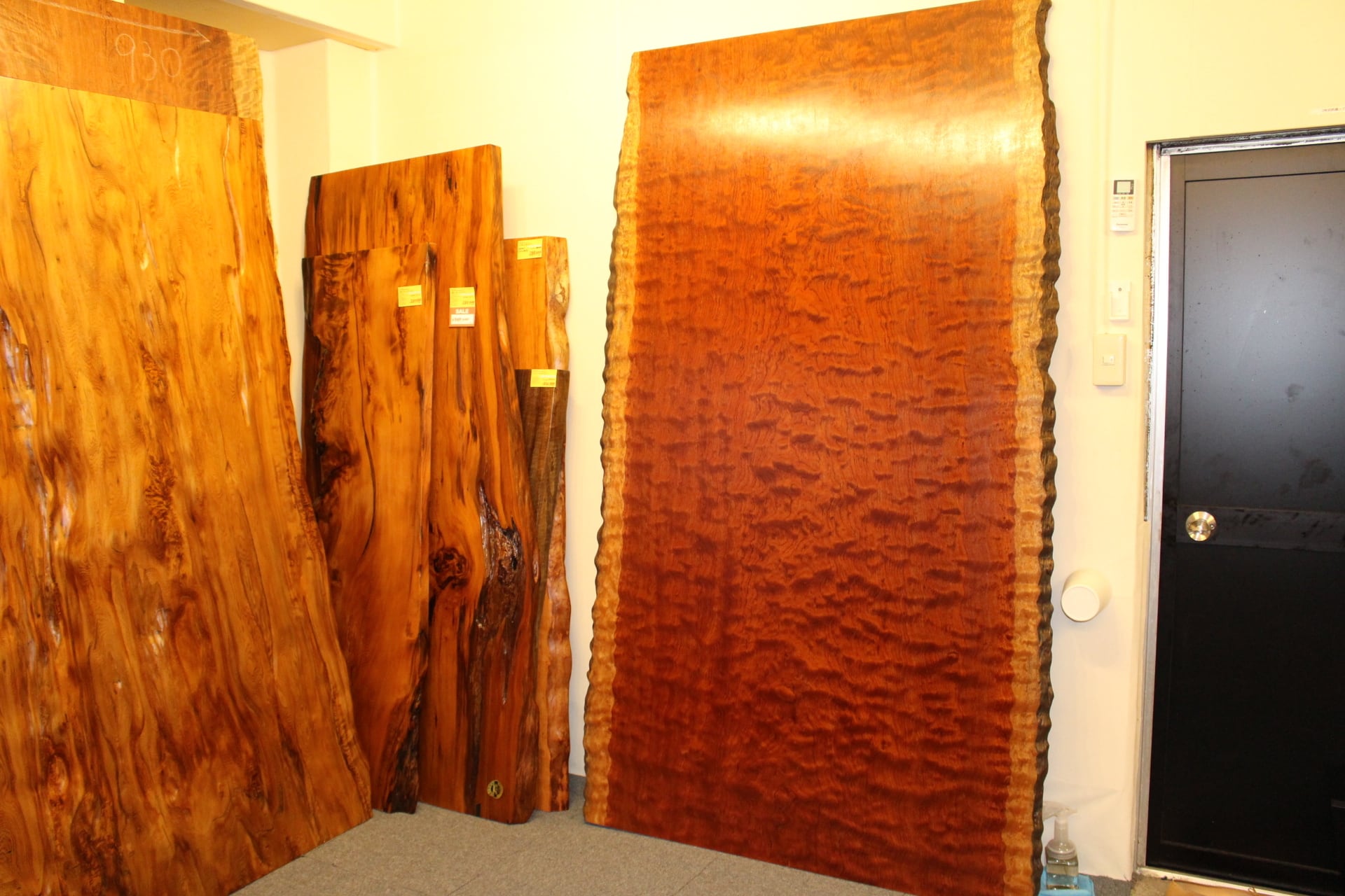 在庫がまだ沢山あった16年ほど前の仕入材ですので、他の材と変わらない価格で出品しております。ブビンガ材は「艶やかで重厚な赤褐色」が特徴の美しい材です。中でも玉杢は、製材1/2000枚程しか採れない大変に希少な材です。ここまでのブビンガ総玉杢は他も含めて国内にはもう無いと思われます。。