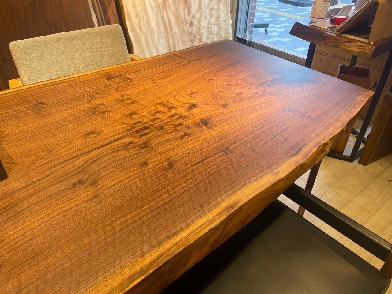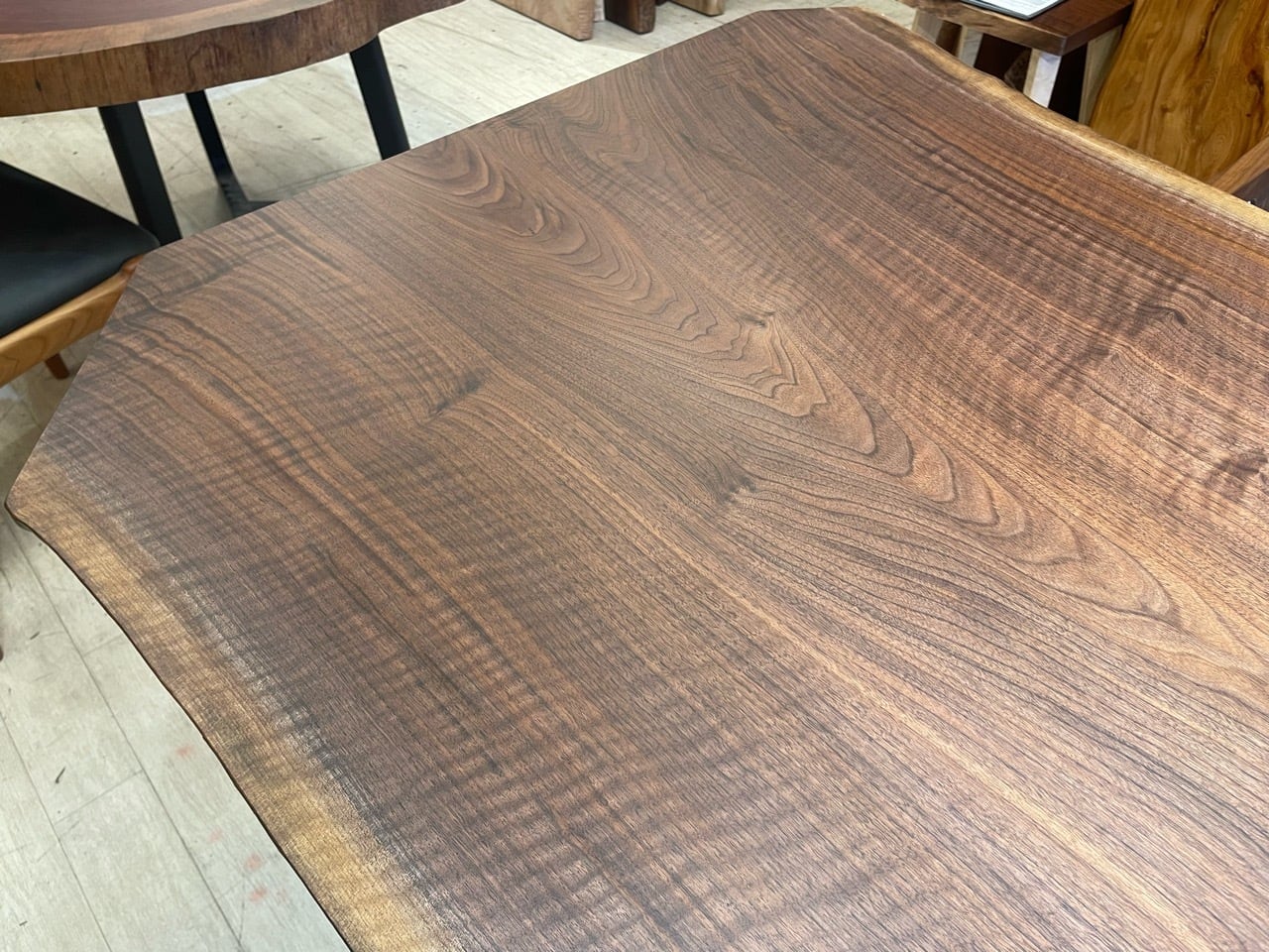 ウォールナットの一枚板は、厳重な乾燥管理が必要ですが、その後の狂いは非常に少なく、高級木材として世界中で愛されています。